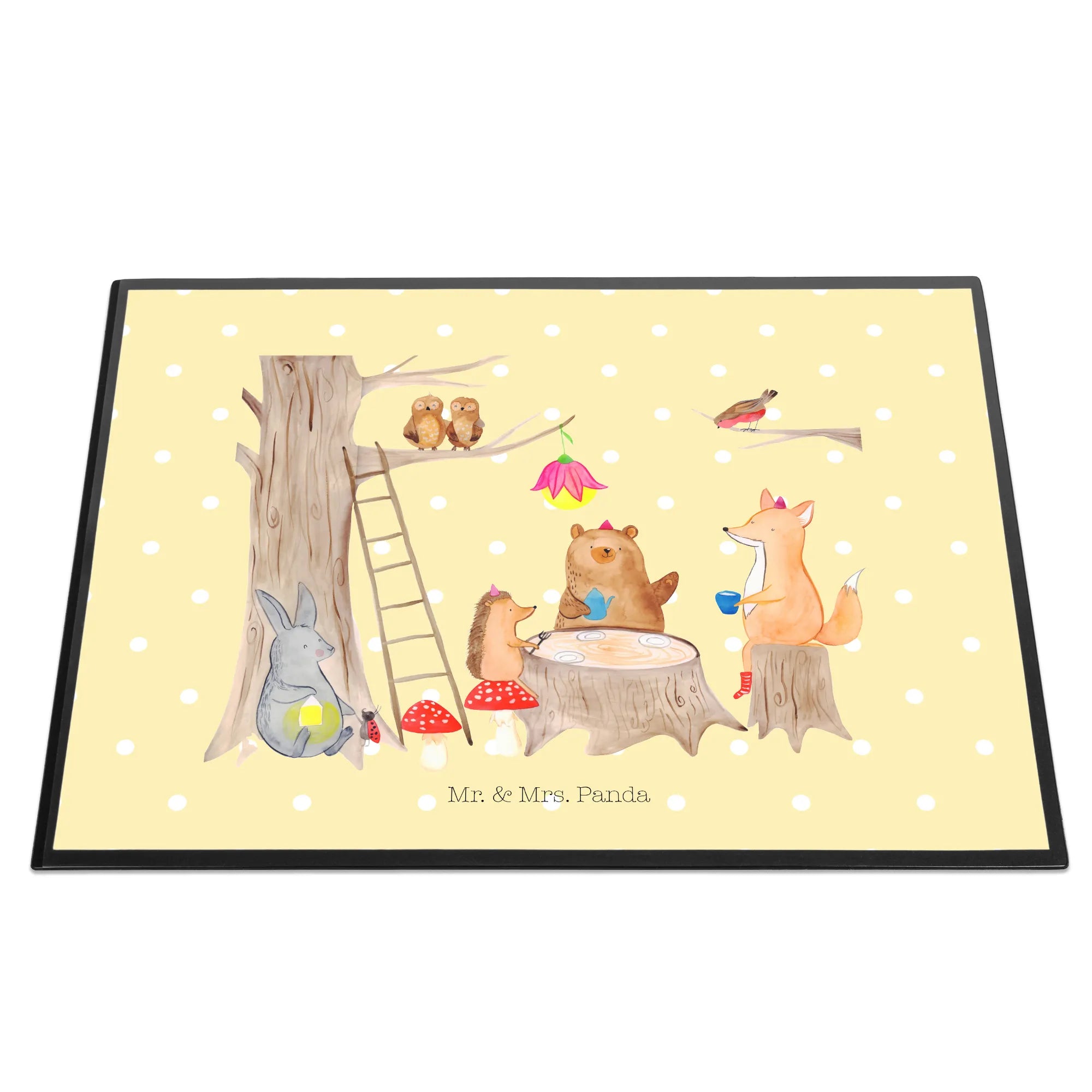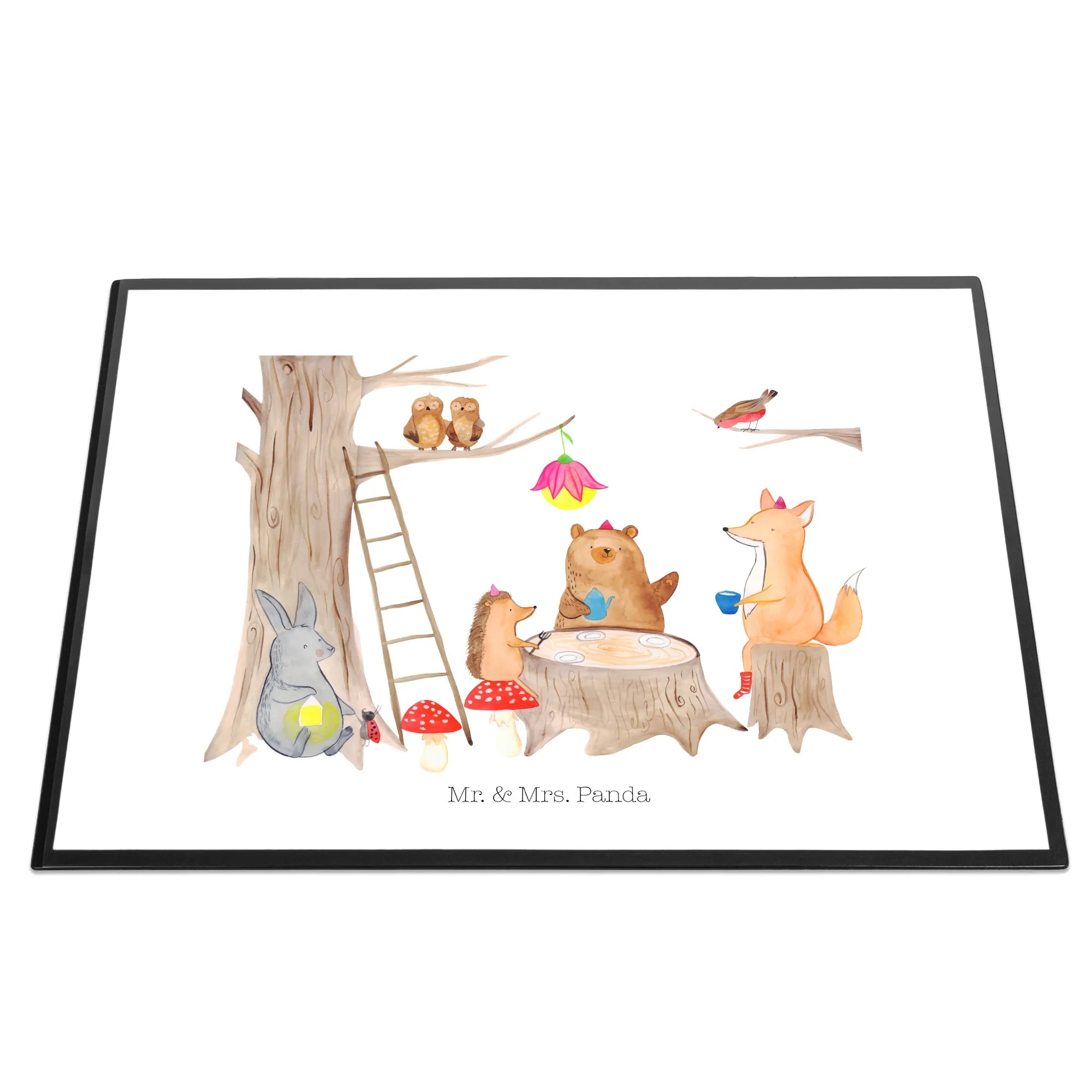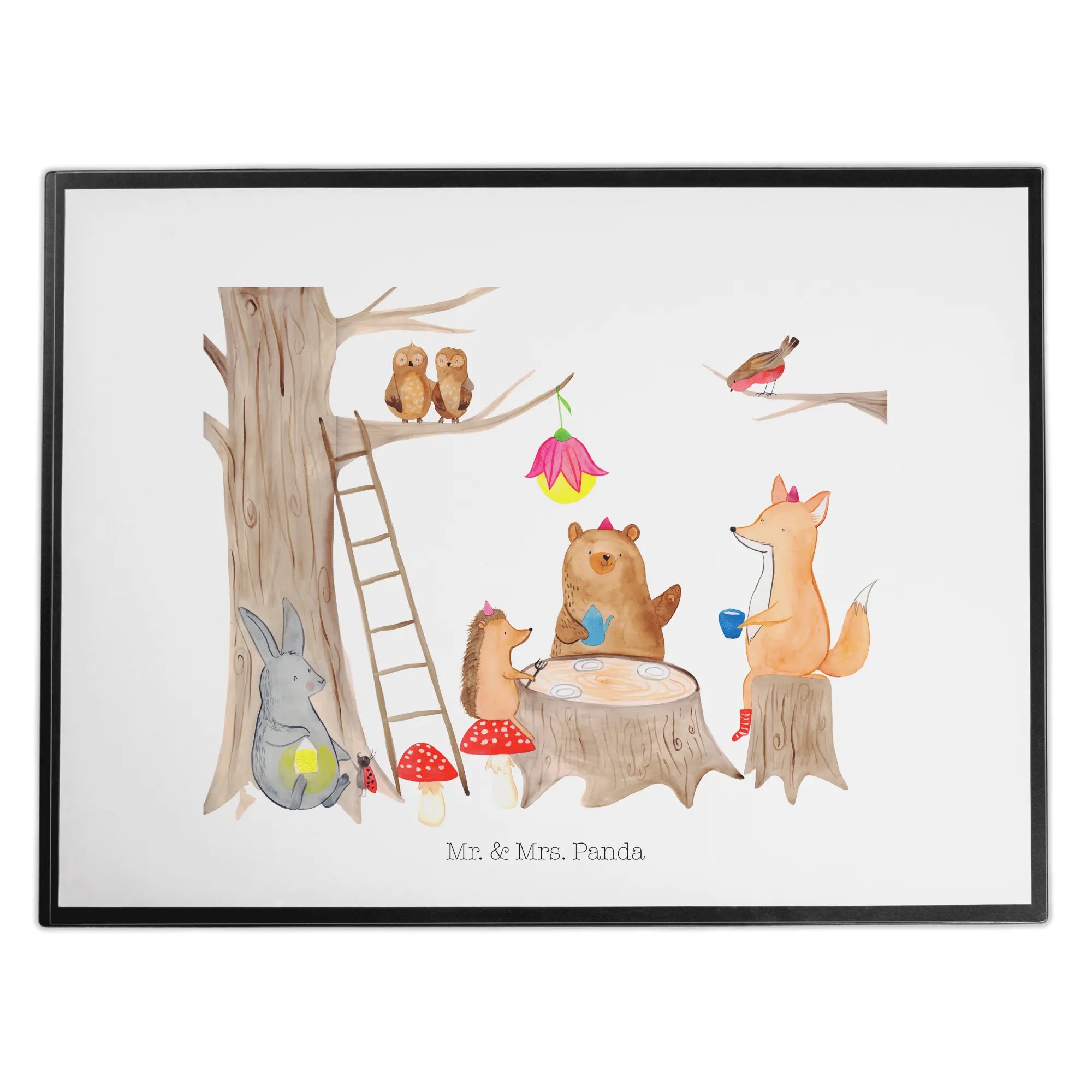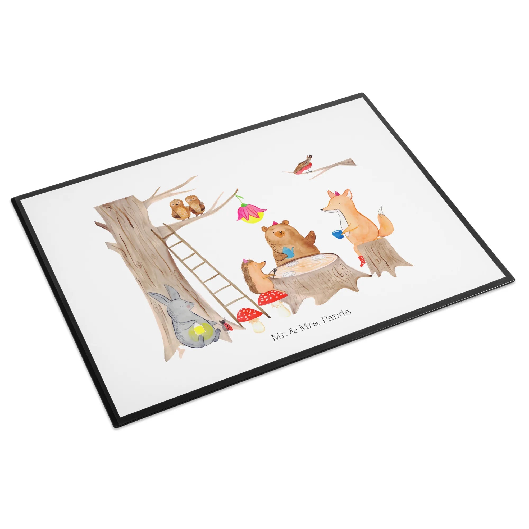 Schreibtischunterlage Waldtiere Picknick - mit Spruch - Weiß