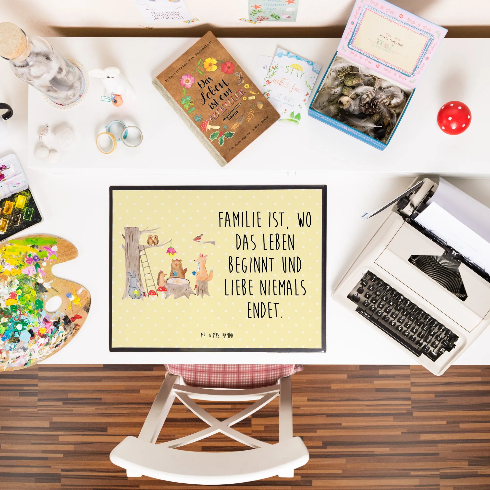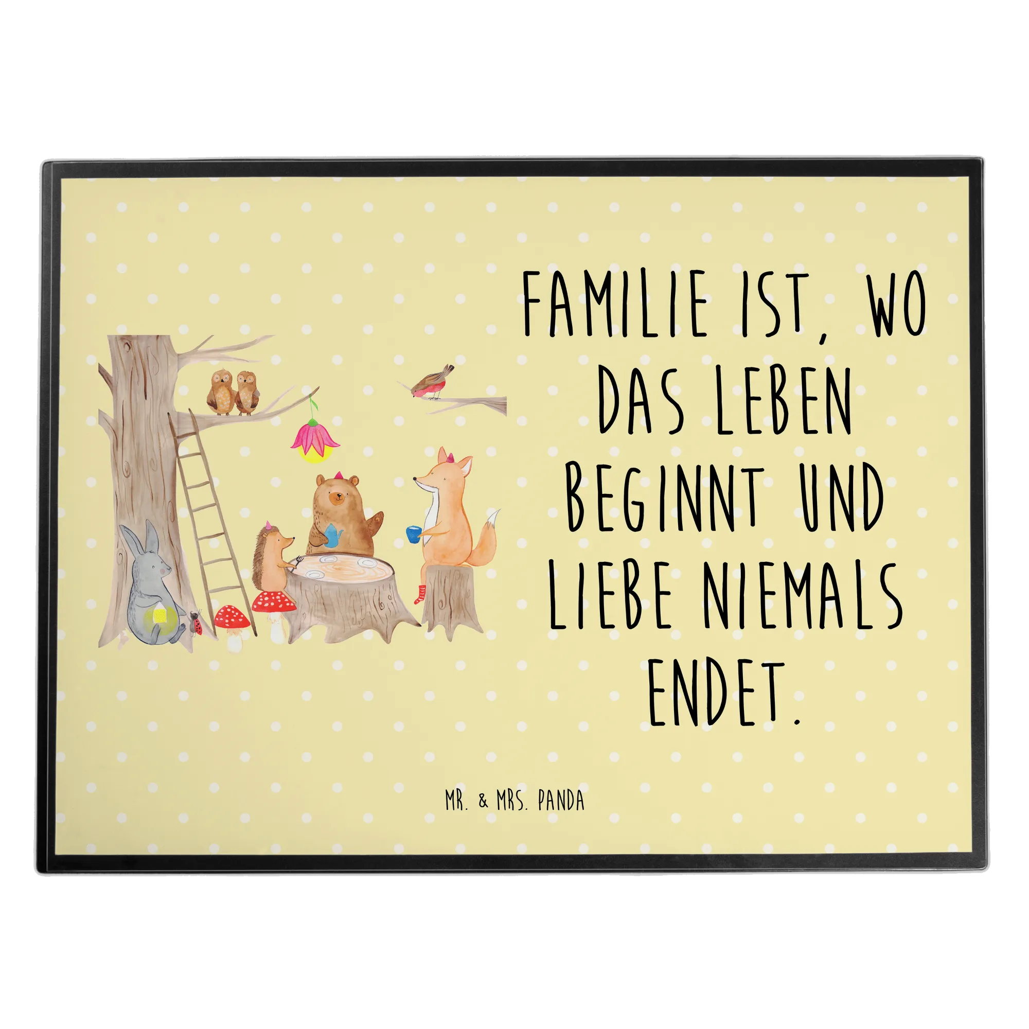 Die Pflege ist ebenfalls kinderleicht: Wische sie einfach mit lauwarmem Wasser ab und schon strahlt sie wieder wie neu! Finger weg von scharfen Reinigungsmitteln – die Schreibtischunterlage bleibt so lange schön, wie du gut auf sie achtgibst. Mit dem Slogan "Familie ist, wo das Leben beginnt und Liebe niemals endet." bringt sie zusätzlich eine Botschaft in dein Büro oder auf deinen Schreibtisch, die das Herz erwärmt! Hol dir dein Stück Natur nach Hause und mach deinen Arbeitsplatz zum Wohlfühlort. Ob im Homeoffice oder im klassischen Büro – die Schreibtischunterlage "Waldtiere Picknick" von Mr. & Mrs. Panda bringt Freude in jeden Arbeitstag!