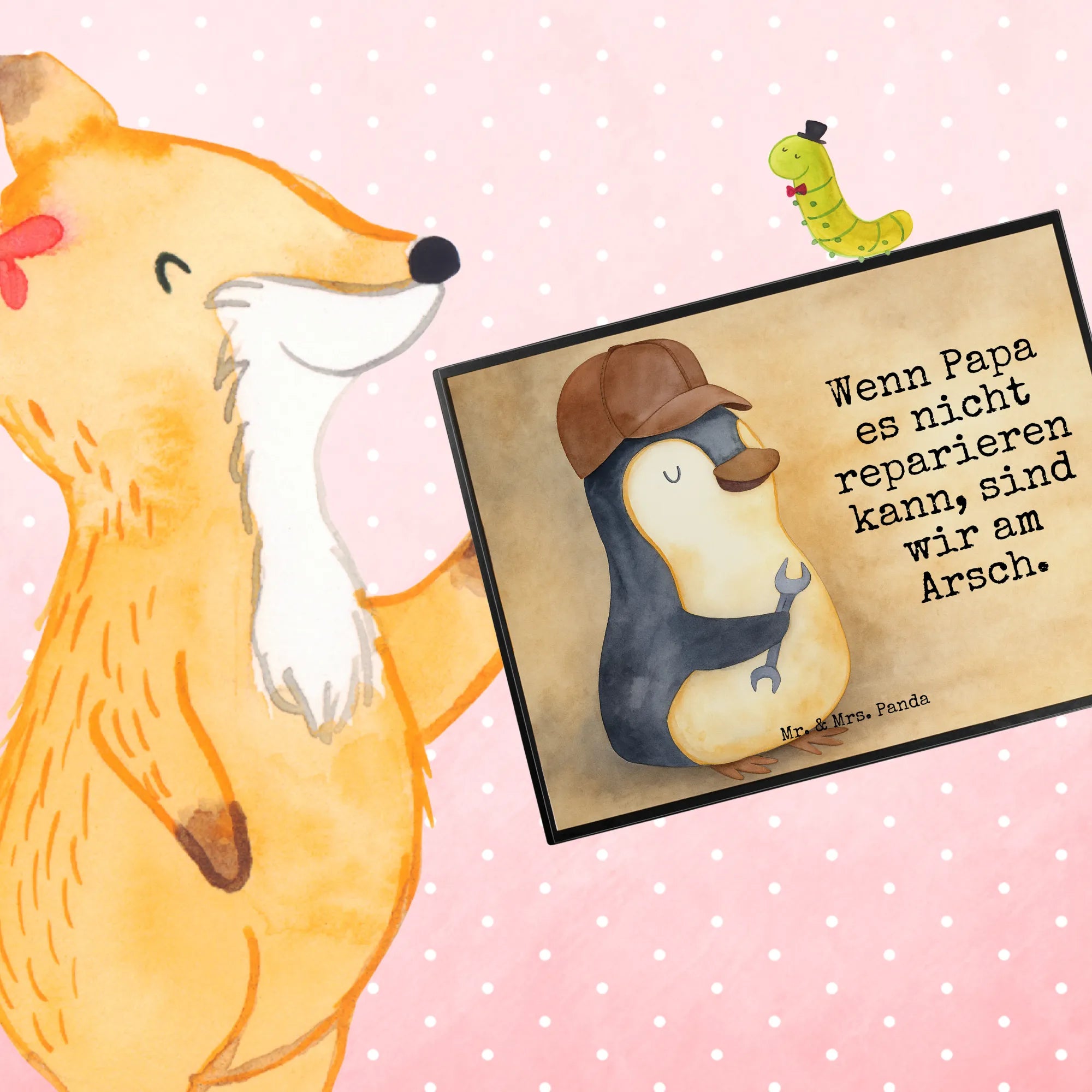 Es ist schwer, einen Pinguin so cool wie diesen zu finden! Mit seinem Verhältnis von Stil und Humor strahlt er die Fröhlichkeit eines Vaters aus, der bereit ist, den Tag zu retten – selbst mit einem Schraubenschlüssel in der Flügelhand! Dieses Motivrepräsentiert nicht nur das Handwerkertalent, das jeder Papa hat, sondern bringt auch den Spruch zum Leben: Wenn Papa es nicht reparieren kann, sind wir am Arsch. Ein tolle Botschaft für den Vatertag und als Geschenk für den besten Papa der Welt, um einfach Danke zu sagen, dass er unsere kleinen und großen Probleme immer im Griff hat.