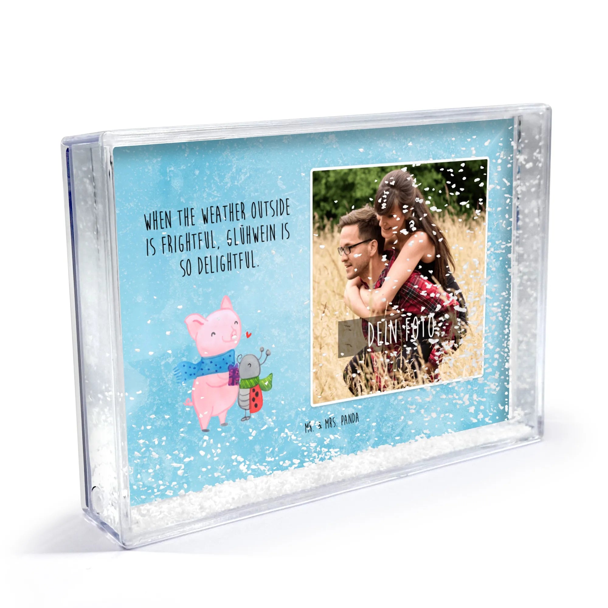 Der Schüttelrahmen mit Foto Glühschwein Smörle aus der Winter Kollektion von Mr. & Mrs. Panda ist das perfekte Geschenk für Glühweinliebhaber und alle, die die winterliche Zeit lieben! Diese bezaubernde Kreation verbindet ein handgezeichnetes Glühschwein und einen süßen Marienkäfer in winterlichen Outfits. Smörle, unser fröhlicher Marienkäfer, bringt dem Glühschwein ein Geschenk, und zusammen verkörpern sie bedingungslose Freundschaft und die Wärme einer schönen Winterzeit.