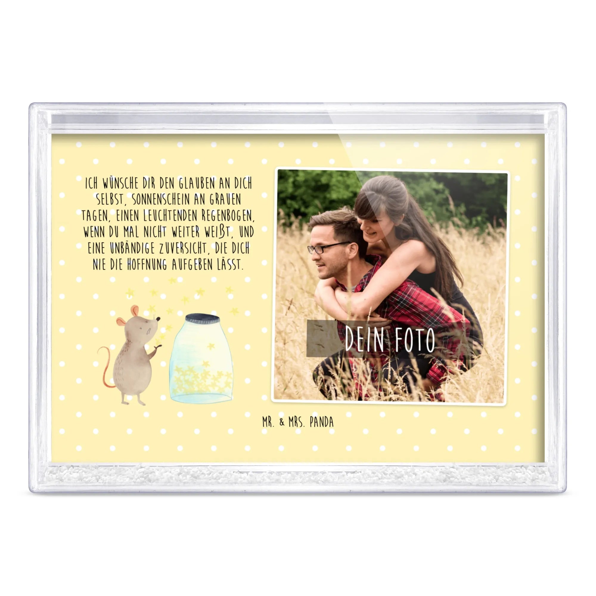 Der Schüttelrahmen mit Foto von Mr. & Mrs. Panda ist das perfekte Fotogeschenk für jede Feierlichkeit. Mit dem niedlichen Motiv der Maus, die vor einem funkelnden Sternenmeer sitzt, zaubert er jedem ein Lächeln ins Gesicht. Egal, ob zur Taufe, zur Geburt des ersten Kindes oder zum Kindergeburtstag – dieser Bilderrahmen wird nicht nur ein schöner Blickfang, sondern auch ein unvergessliches Erinnerungsstück.