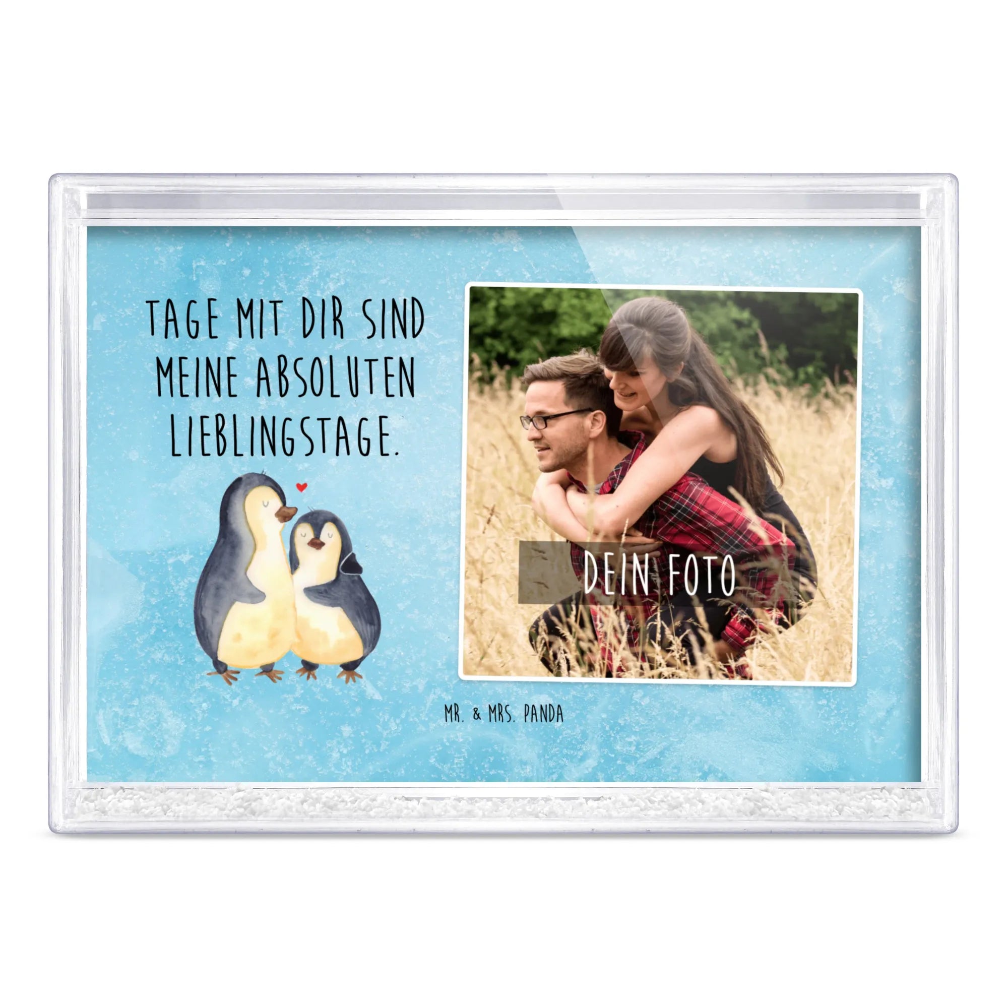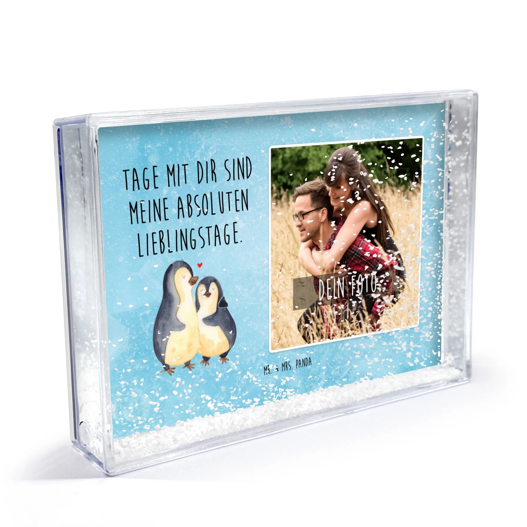 Der bezaubernde Schüttelrahmen mit Foto ist ein absoluter Blickfang und die ideale Möglichkeit, um deine besonderen Momente in Szene zu setzen. Mit seinen Maßen von 160 mm Breite, 110 mm Höhe und 28 mm Tiefe beeindruckt er durch seine tolle Verarbeitung und die Möglichkeit, dein Lieblingsfoto zu personalisieren. Der Rahmen überzeugt mit einer Schnee-Füllung, die ein fasziniertes Spiel aus Bewegung und Tiefe erzeugt. Der brilliante Farbdruck bringt dein Bild lebendig zur Geltung. Sein hochwertiges Acrylglas schützt das Foto und sorgt dafür, dass du lange Freude daran hast. Ob als Geschenk oder zur eigenen Dekoration, dieser Schüttelrahmen ist ein Muss für jeden Haushalt und verwandelt Wände in persönliche Kunstwerke. Lass deiner Kreativität freien Lauf und gestalte deinen Raum einzigartig mit einem individuellen Schüttelrahmen von Mr. & Mrs. Panda.