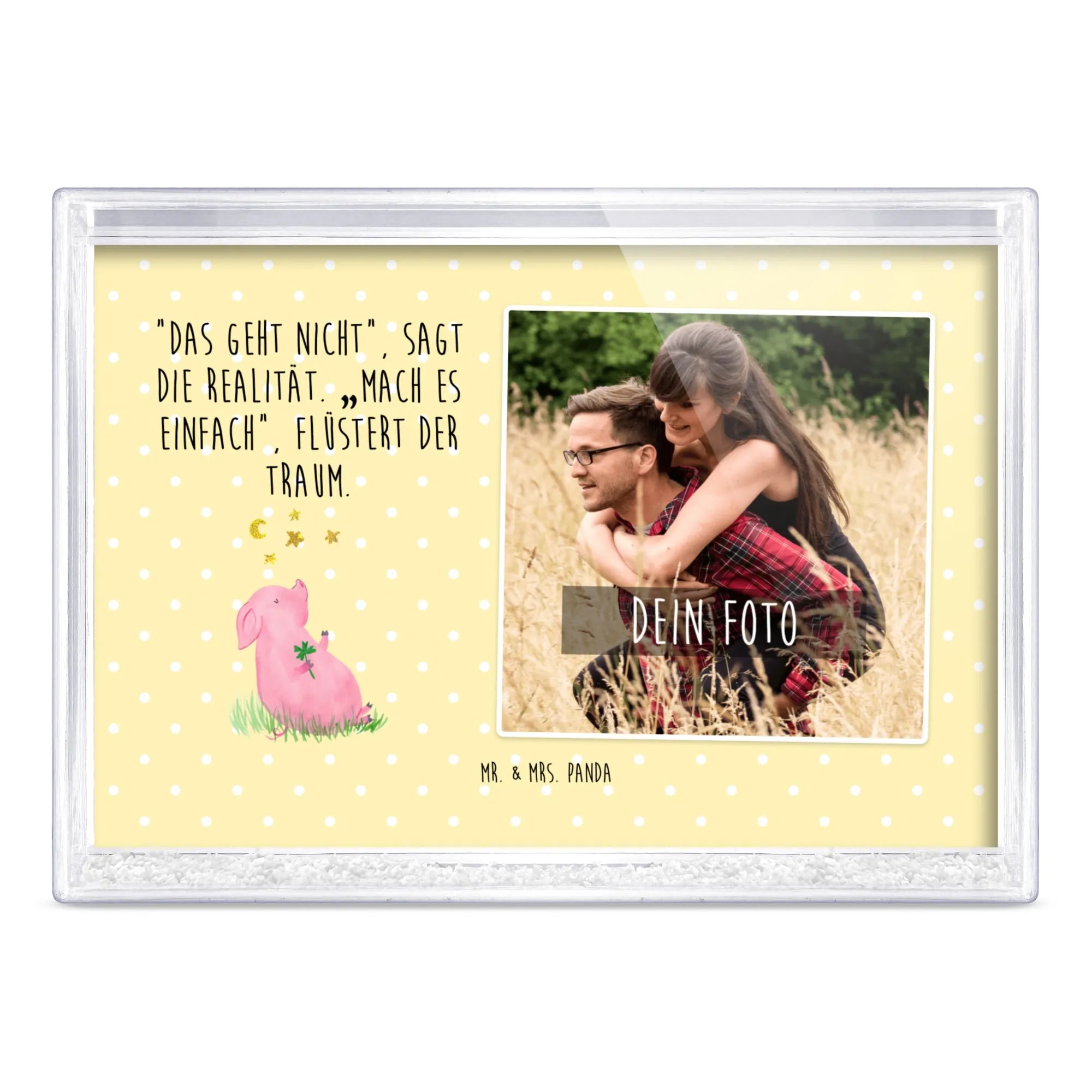 Mach es dir gemütlich und verliebe dich in diesen schönen Schüttelrahmen mit Foto - Glücksschwein. Lass deine Träume Wirklichkeit werden und bring mit diesem tollen Geschenk zugleich Glück und Freude in dein Leben. Es gibt keinen besseren Weg, um deine schönsten Erinnerungen stilvoll zu präsentieren und gleichzeitig einen Hauch von Magie in deinen Alltag zu bringen. Trau dich, dein Glück zu gestalten!