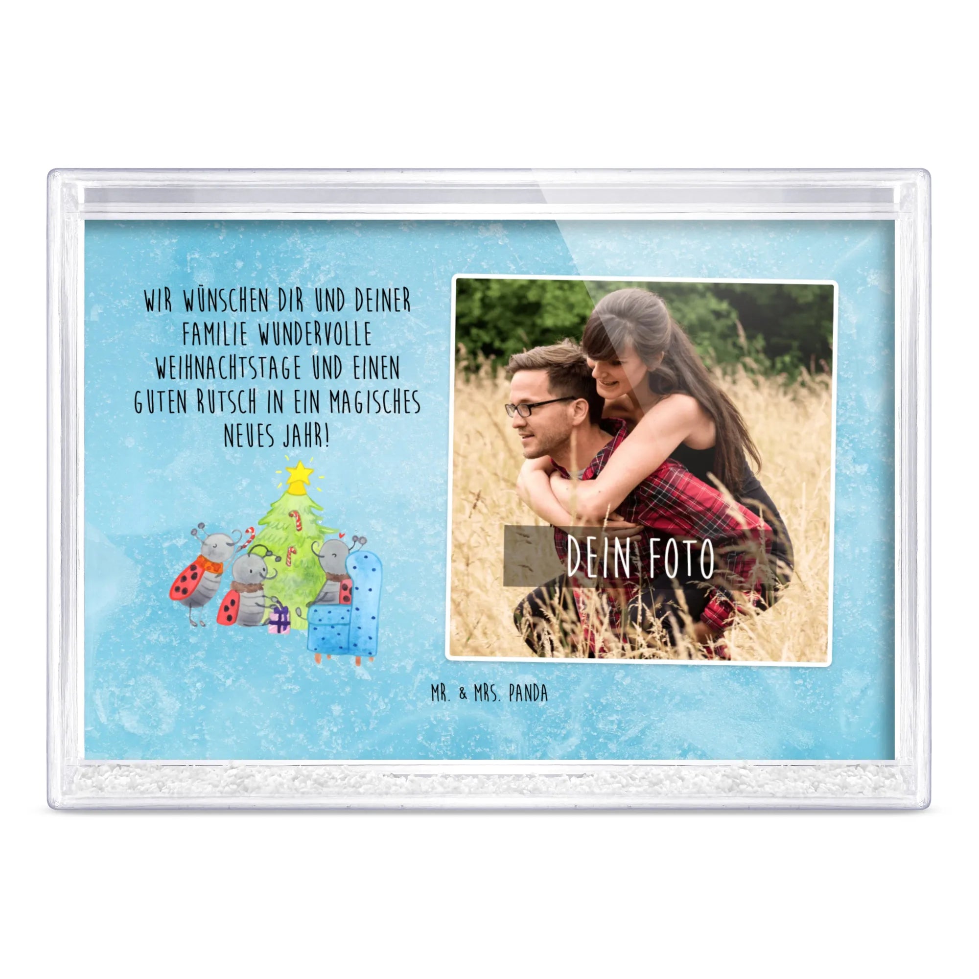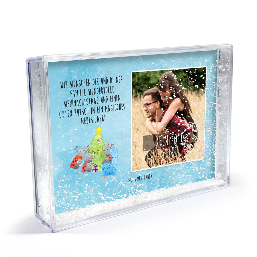 Der Schüttelrahmen mit Foto Weihnachten Smörle von Mr. & Mrs. Panda ist das perfekte Geschenk für die winterlichen Feiertage! Wenn Du die warme Atmosphäre der Weihnachtszeit liebst und gerne besondere Momente festhalten möchtest, dann ist dieser Bilderrahmen genau das Richtige für Dich. Er zeigt eine märchenhafte Szene mit drei fröhlichen Marienkäfern, die einen von Tannennadeln umgebenen Weihnachtsbaum dekorieren. Die detailreiche Illustration weckt nicht nur Kindheitserinnerungen, sondern sorgt auch für eine gemütliche Stimmung in Deinem Zuhause.