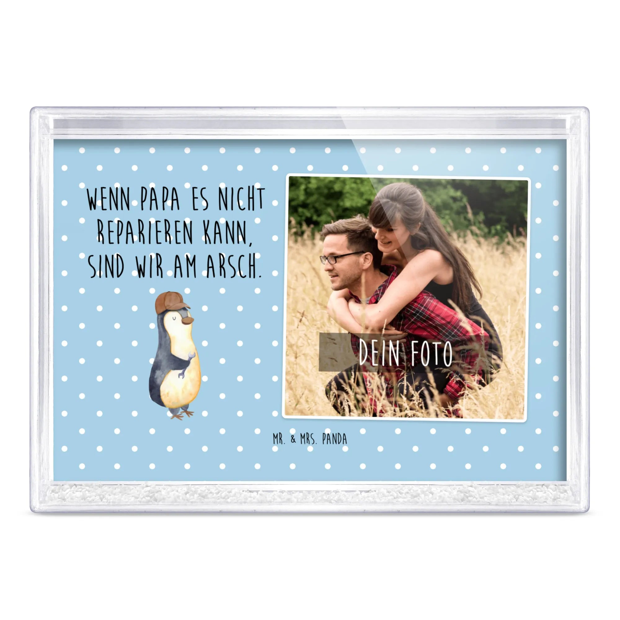 Bist du auf der Suche nach dem perfekten Geschenk für deinen Papa? Dann ist der Schüttelrahmen mit dem motivierenden Spruch "Wenn Papa es nicht reparieren kann, sind wir am Arsch" von Mr. & Mrs. Panda genau das Richtige! Dieser bezaubernde Bilderrahmen bringt nicht nur ein Lächeln auf Papas Gesicht, sondern auch eine persönliche Note in jeden Raum. Mit einem wunderschönen Bild von dir oder der ganzen Familie wird er zum Hingucker.