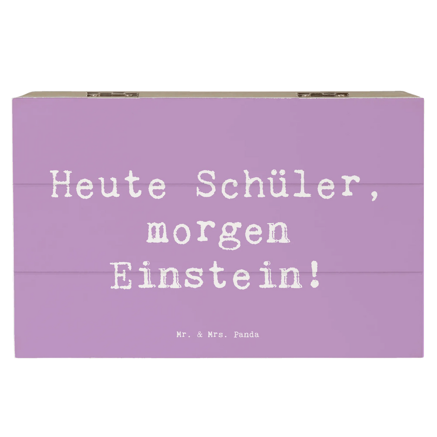 Die wunderschöne Holzkiste von Mr. & Mrs. Panda ist das perfekte Geschenk zur Einschulung und für besondere Erinnerungen! Diese spezielle Erinnerungskiste aus robuster Premium Hartfaser kommt in einem zarten Lavendeltraum und ist mit dem inspirierenden Spruch 'Heute Schüler, morgen Einstein!' verziert.