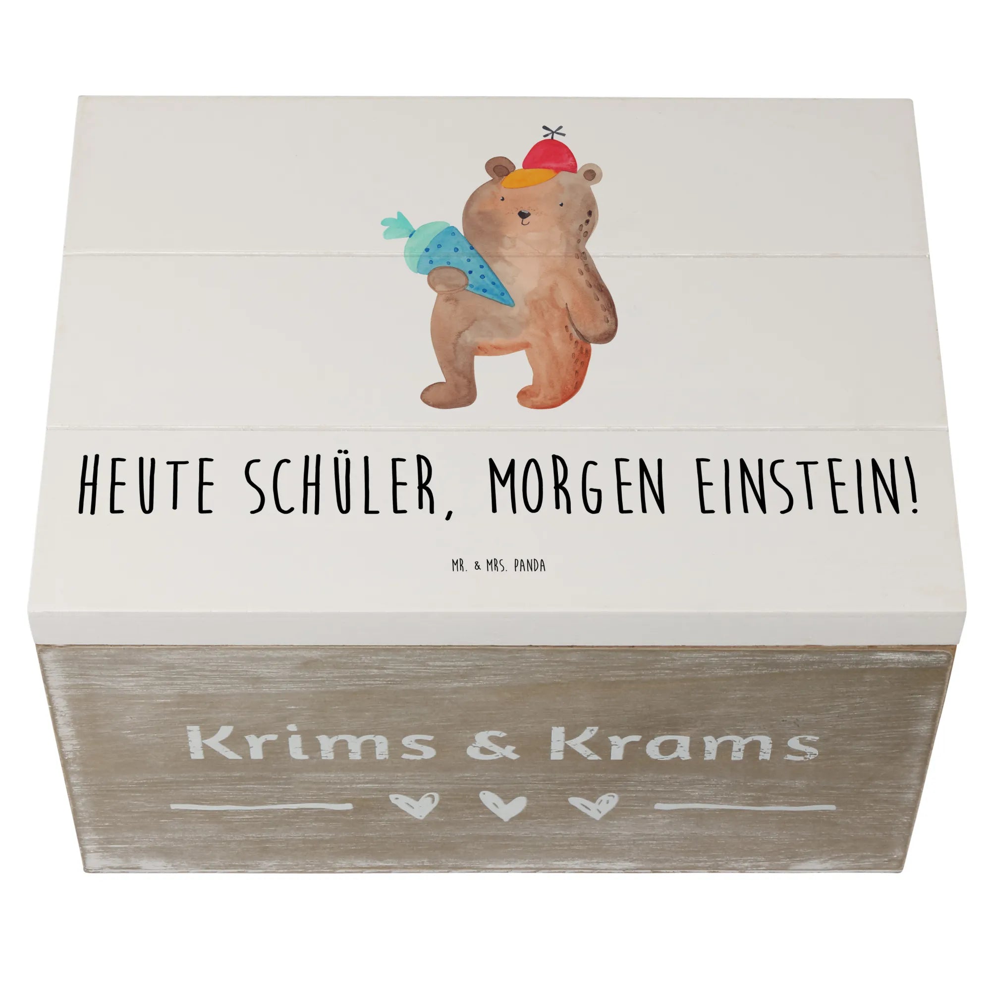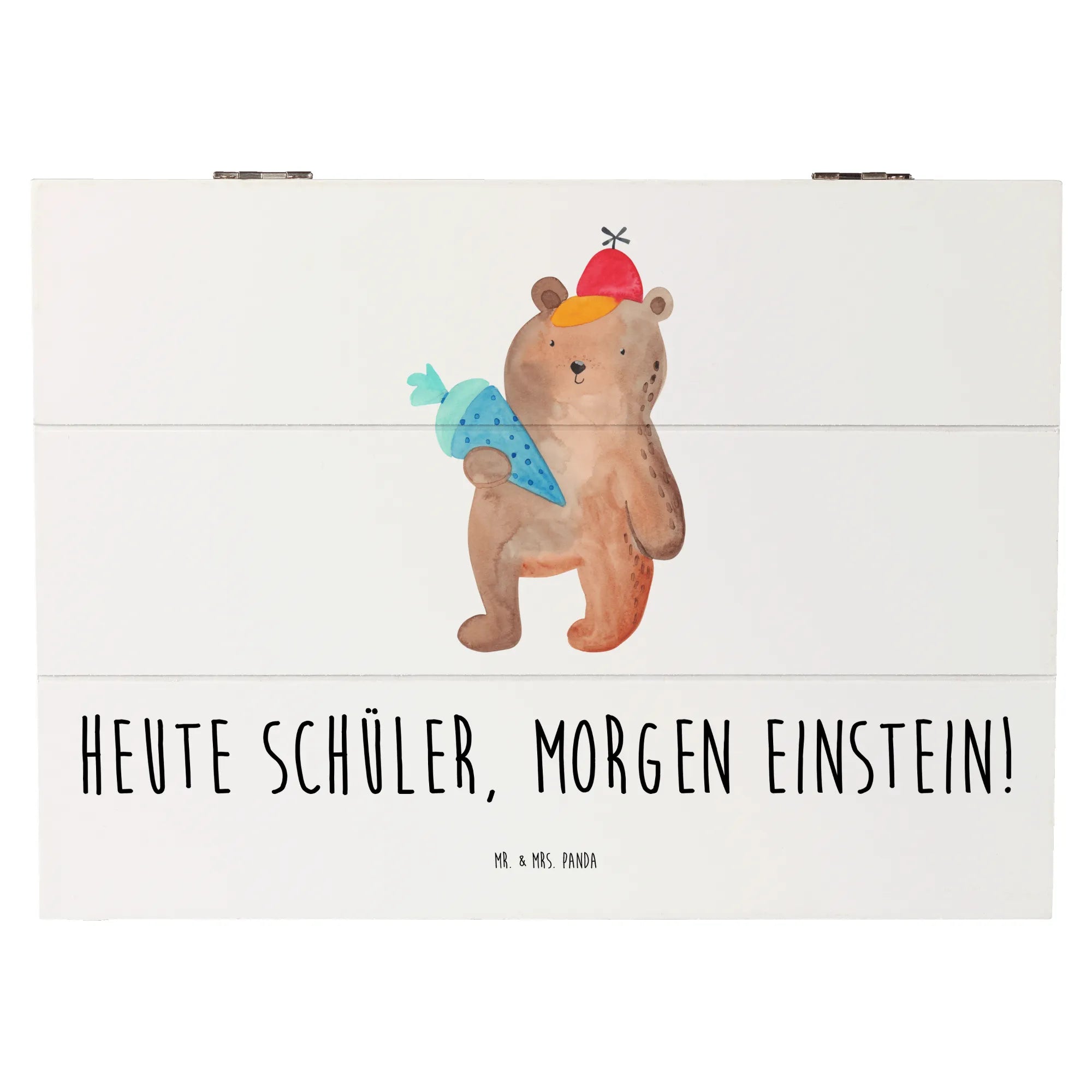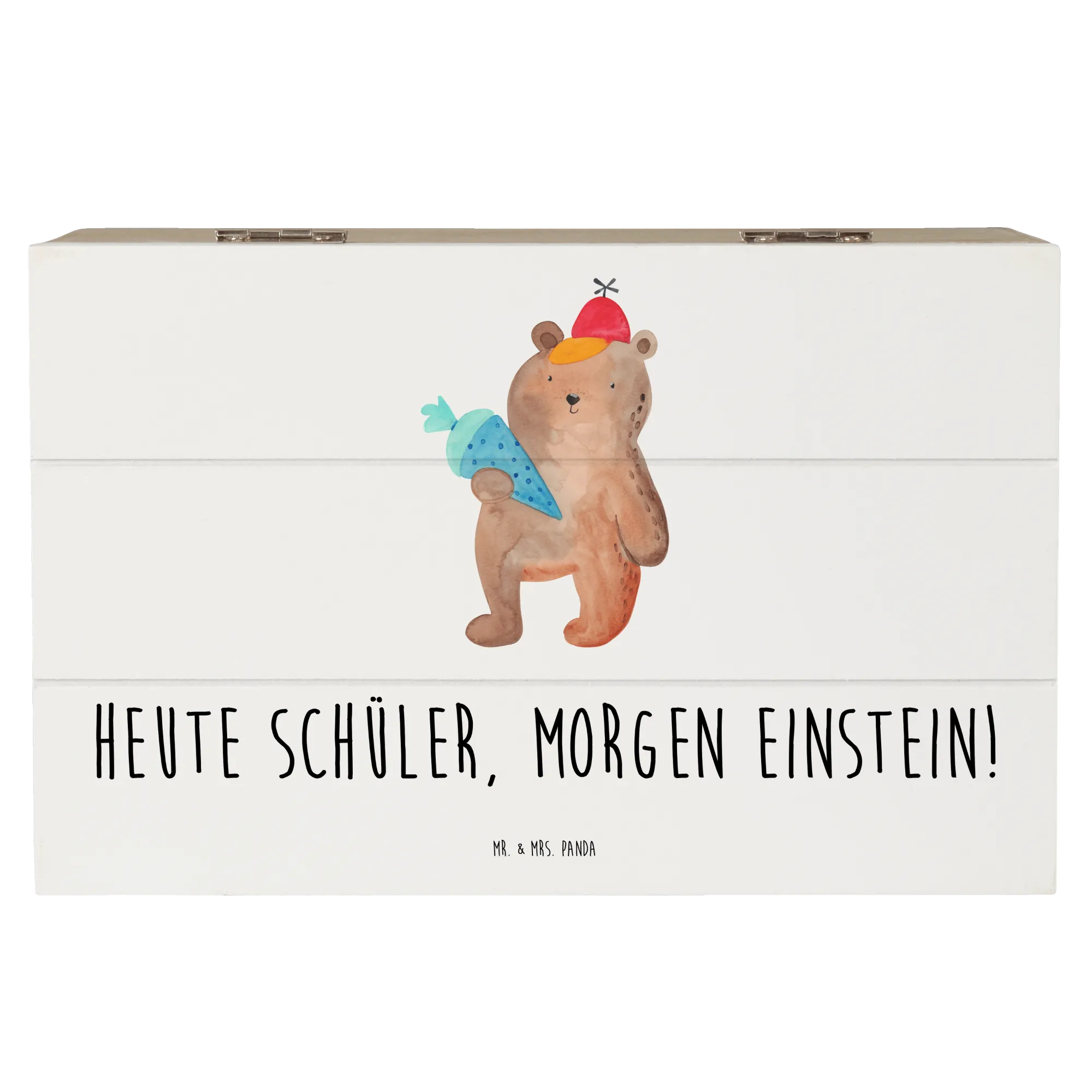 Die wunderschöne Holzkiste von Mr. & Mrs. Panda ist das perfekte Geschenk zur Begründung eines neuen Lebensabschnitts: dem Schulanfang! Mit ihrem liebevollen Motiv 'Heute Schüler, morgen Einstein!' aus der Mutmacher-Kollektion schaffst du nicht nur eine Aufbewahrungsbox, sondern ein wertvolles Erinnerungsstück.