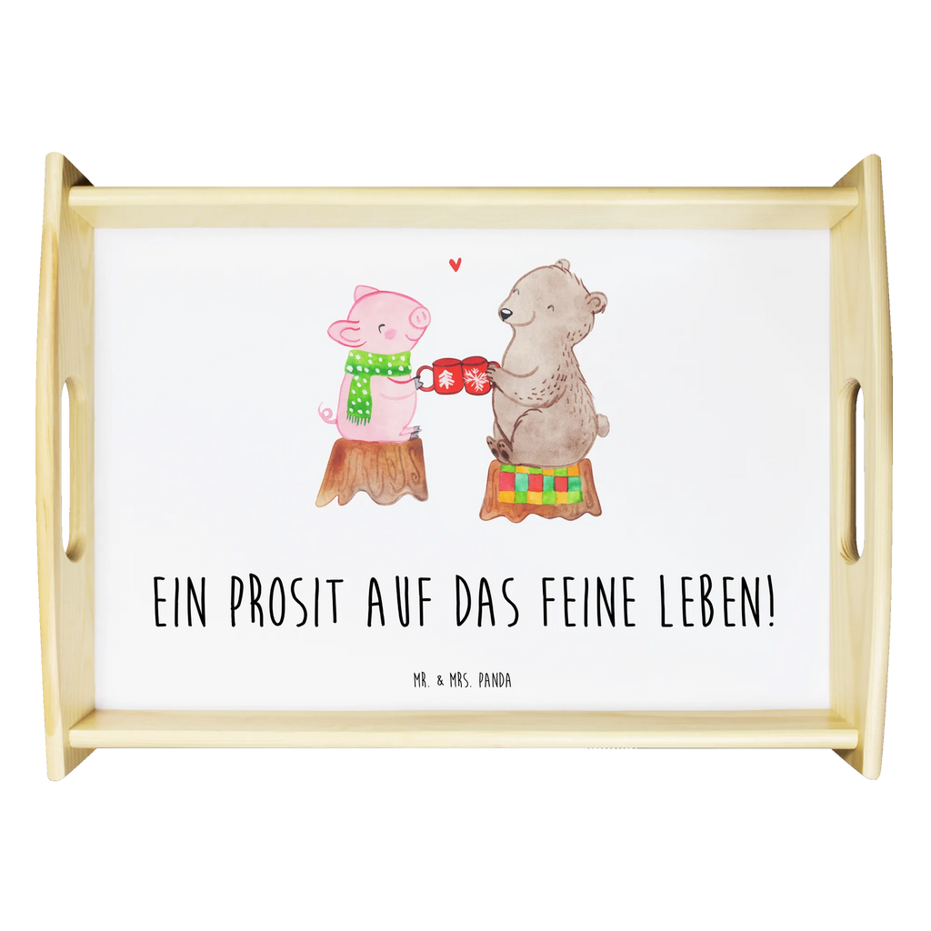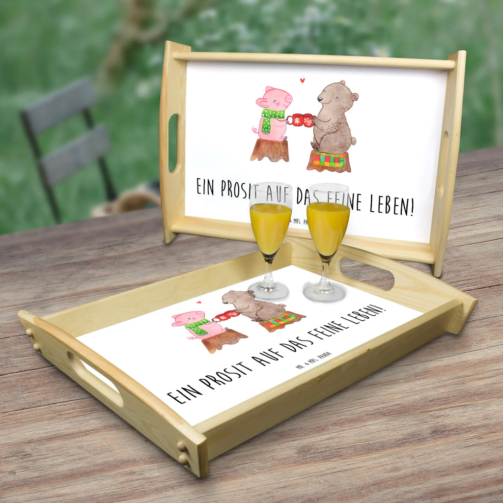 Mr. & Mrs. Panda Serviertablett Holz - Dekotablett mit Motiven und Sprüchen für Frühstück und mehr