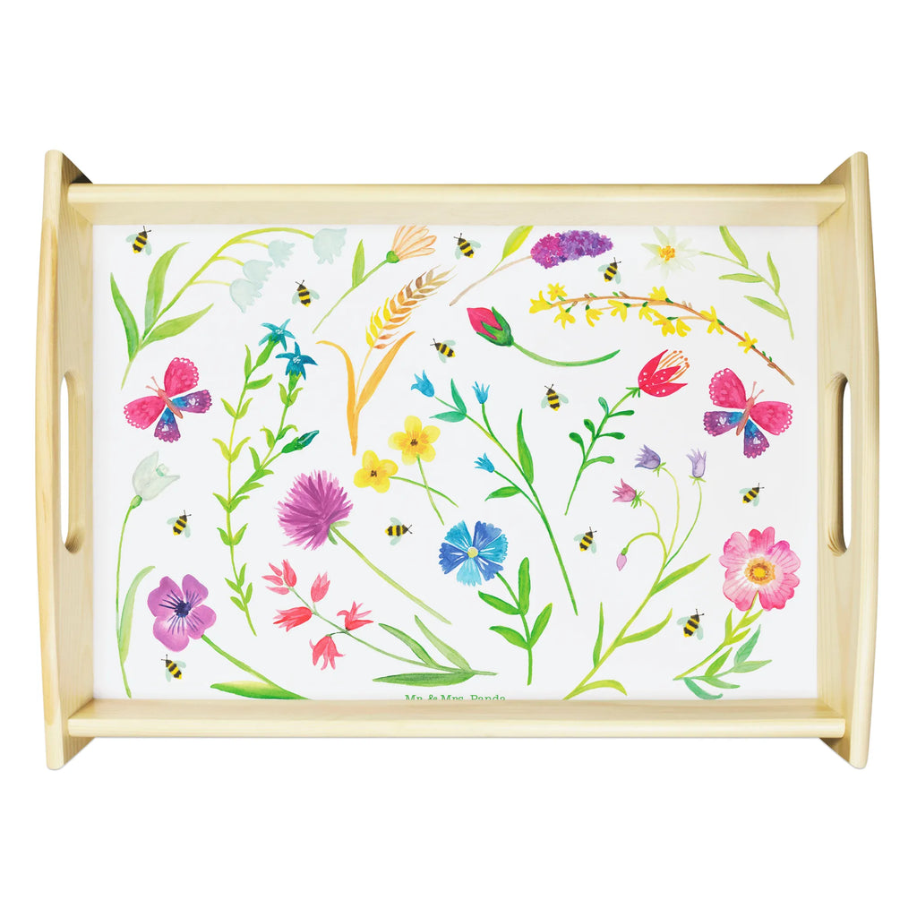 Entdecke unser einzigartiges Serviertablett von Mr. & Mrs. Panda – ein wahres Highlight für jedes Frühstück! Mit den Maßen von 480 mm x 480 mm x 65 mm und einem Gewicht von 925 g ist dieses Holztablett nicht nur praktisch, sondern auch wunderschön. Hergestellt aus lasiertem Echtholz mit einem brillanten Druck, bringt es Farbe in dein Zuhause. Ob für ein gemütliches Frühstück im Bett oder beim Entspannen auf dem Sofa – die seitlichen Griffmulden sorgen für eine einfache Handhabung. Vielen lieben Dank für deine Unterstützung, die Anti-Rutsch Pads auf der Unterseite machen das Servieren noch einfacher. Die kratzfeste und robuste Oberfläche garantiert Langlebigkeit. Pflegeleicht wird es einfach mit einem feuchten Tuch und etwas Spülmittel gereinigt. Bitte nicht einweichen! Hinweis: Aufgrund der aufwändigen Herstellung kann die Anfertigungszeit etwas länger sein.