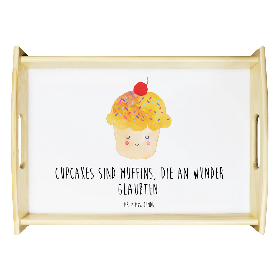 Du möchtest jemanden überraschen oder deine Küche mit einem fröhlichen Hingucker verschönern? Das Serviertablett Cupcake aus der Small World Kollektion von Mr. & Mrs. Panda ist genau das Richtige: ein liebevoll gestaltetes Holztablett mit dem zauberhaften Spruch „Cupcakes sind Muffins, die an Wunder glaubten.“ Das süße Cupcake-Motiv mit bunten Streuseln bringt sofort gute Laune und passt perfekt in jede gemütliche Küche.