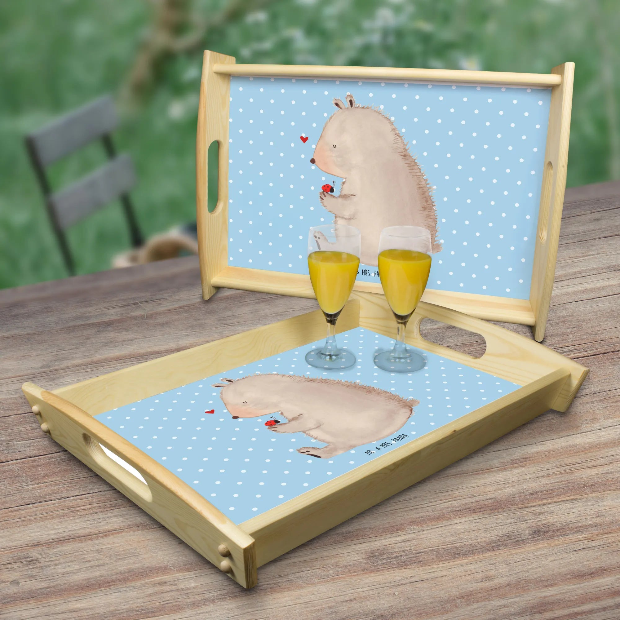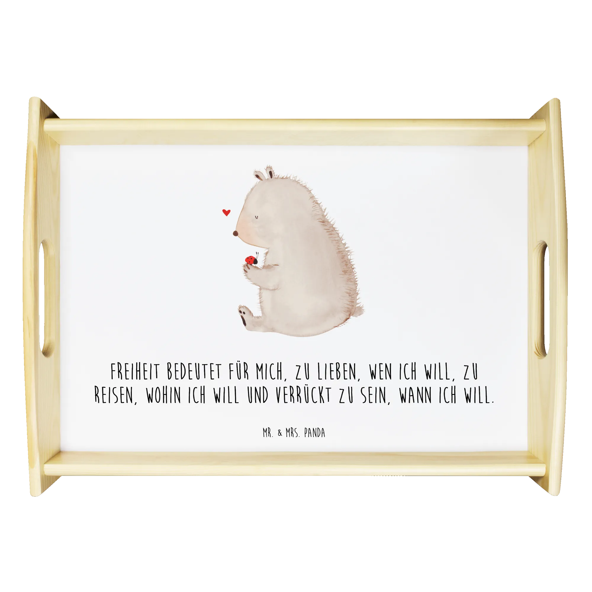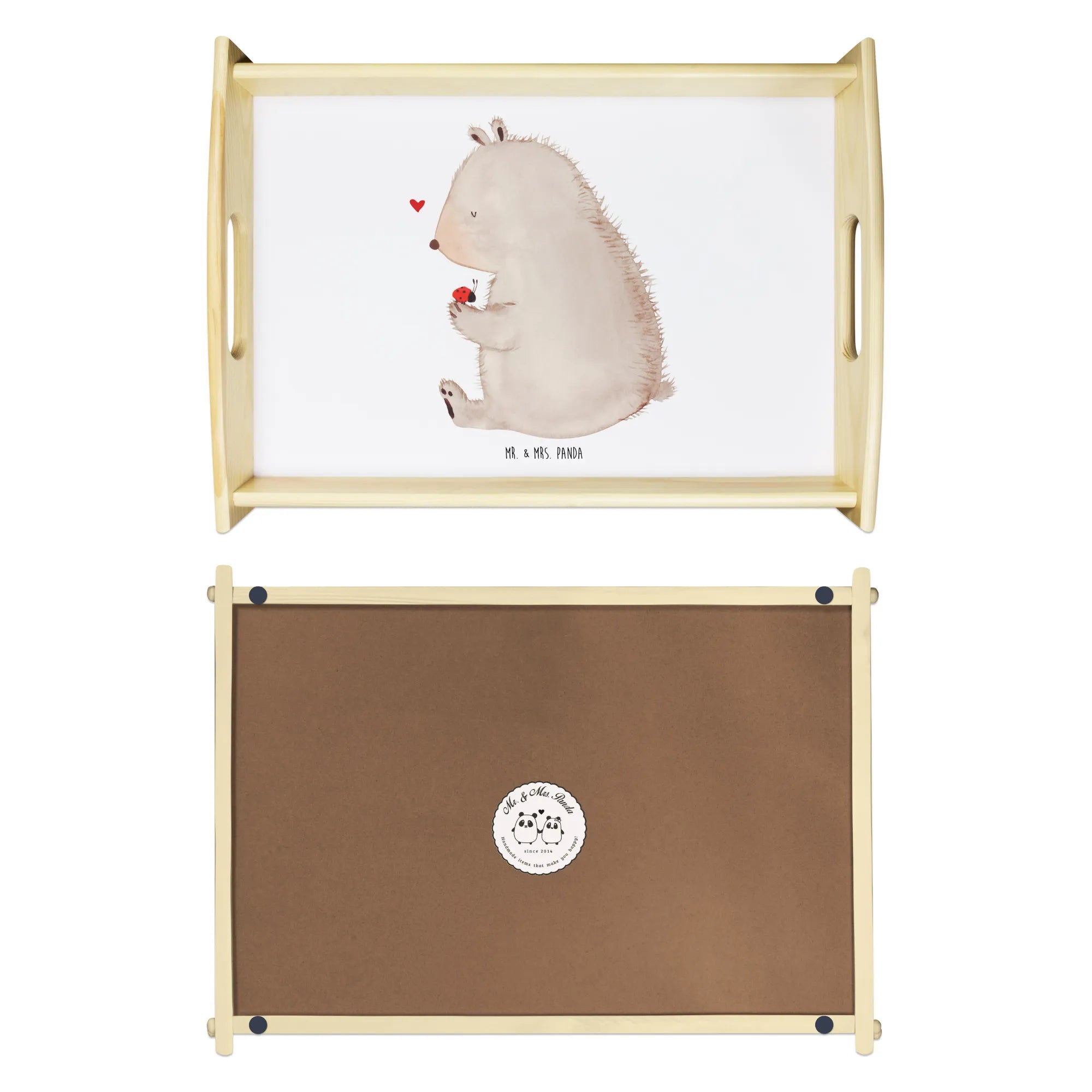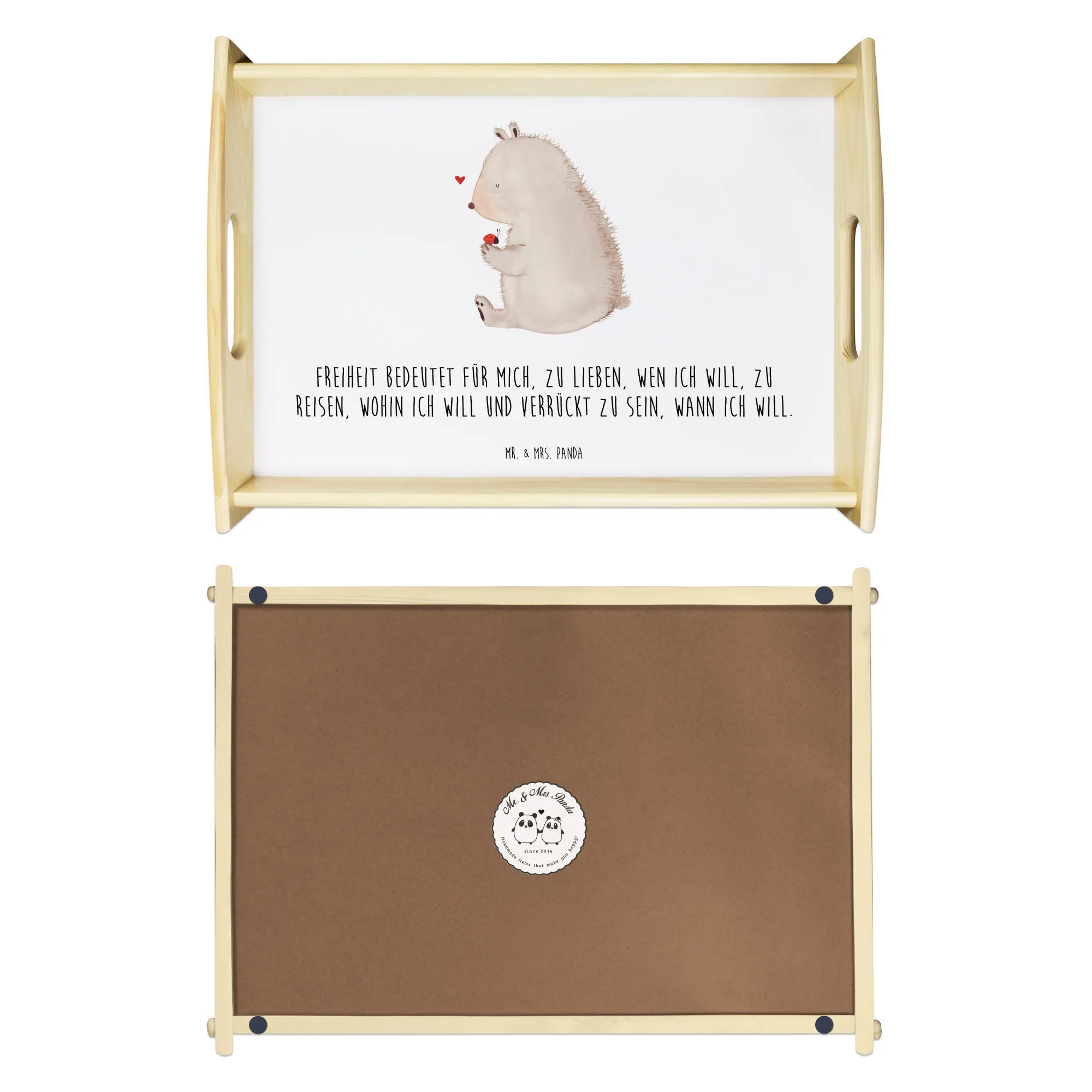 Serviertablett Bär mit Marienkäfer - mit Spruch - Weiß