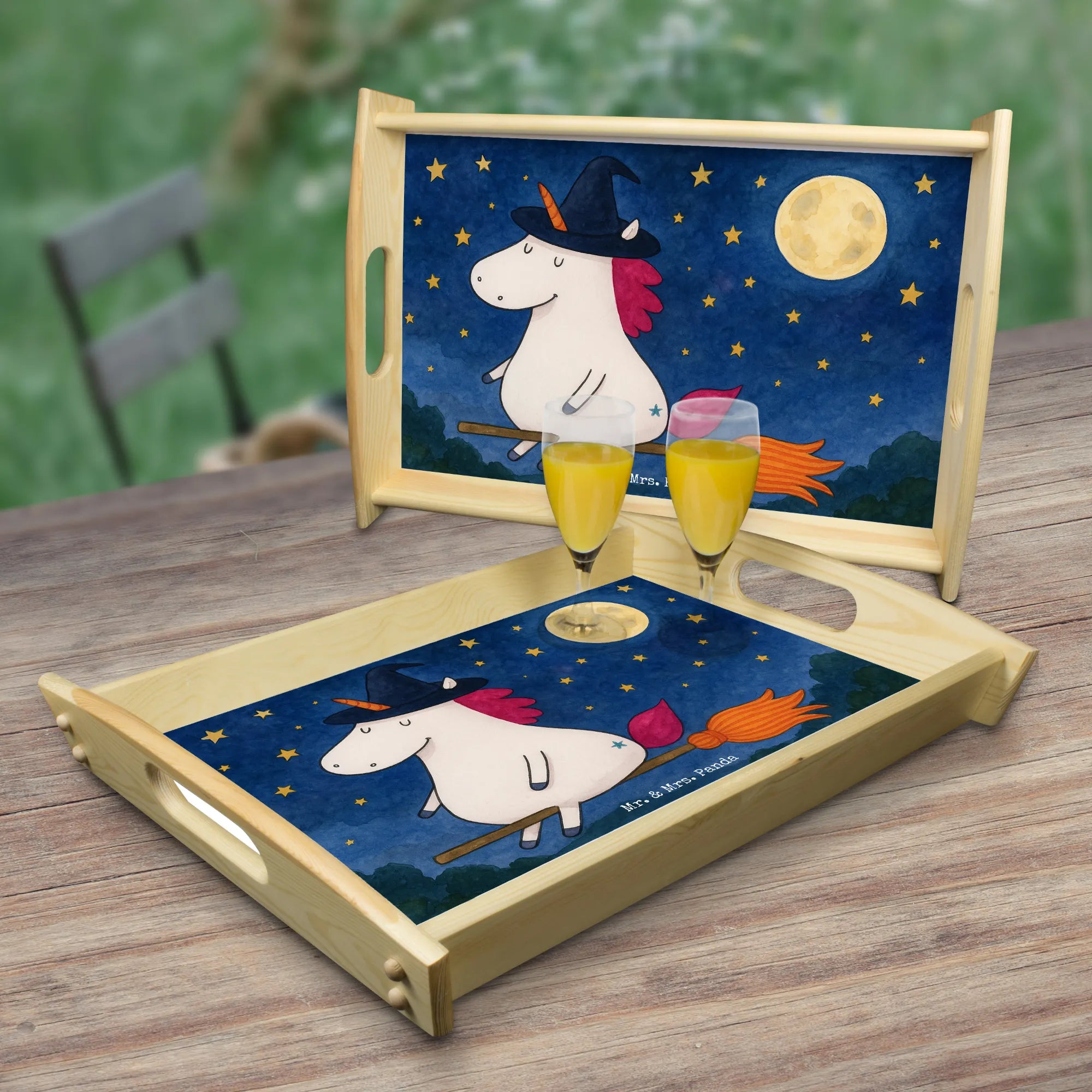 Das einzigartige Serviertablett von Mr. & Mrs. Panda wird dein Frühstücksbuffet zum Erlebnis machen! Mit seinen großzügigen Maßen von 480 mm x 480 mm x 65 mm und einem Gewicht von 925 g ist es die perfekte Kombination aus Funktionalität und Stil. Aus hochwertigem, lasiertem Echtholz gefertigt, verzückt das Tablett mit einem strahlenden Druck, der für gute Laune sorgt. Ob im Bett oder auf dem Sofa, die seitlichen Griffmulden garantieren ein angenehmes Handling. Die spezielle Anti-Rutsch Beschichtung sorgt dafür, dass alles sicher an seinem Platz bleibt. Dank der kratzfesten Oberfläche ist das Tablett sehr pflegeleicht – einfach mit einem feuchten Tuch und etwas Spülmittel abwischen. Bitte nicht einweichen! Denke daran, dass die Anfertigung wegen der hohen Qualität etwas Zeit in Anspruch nimmt.