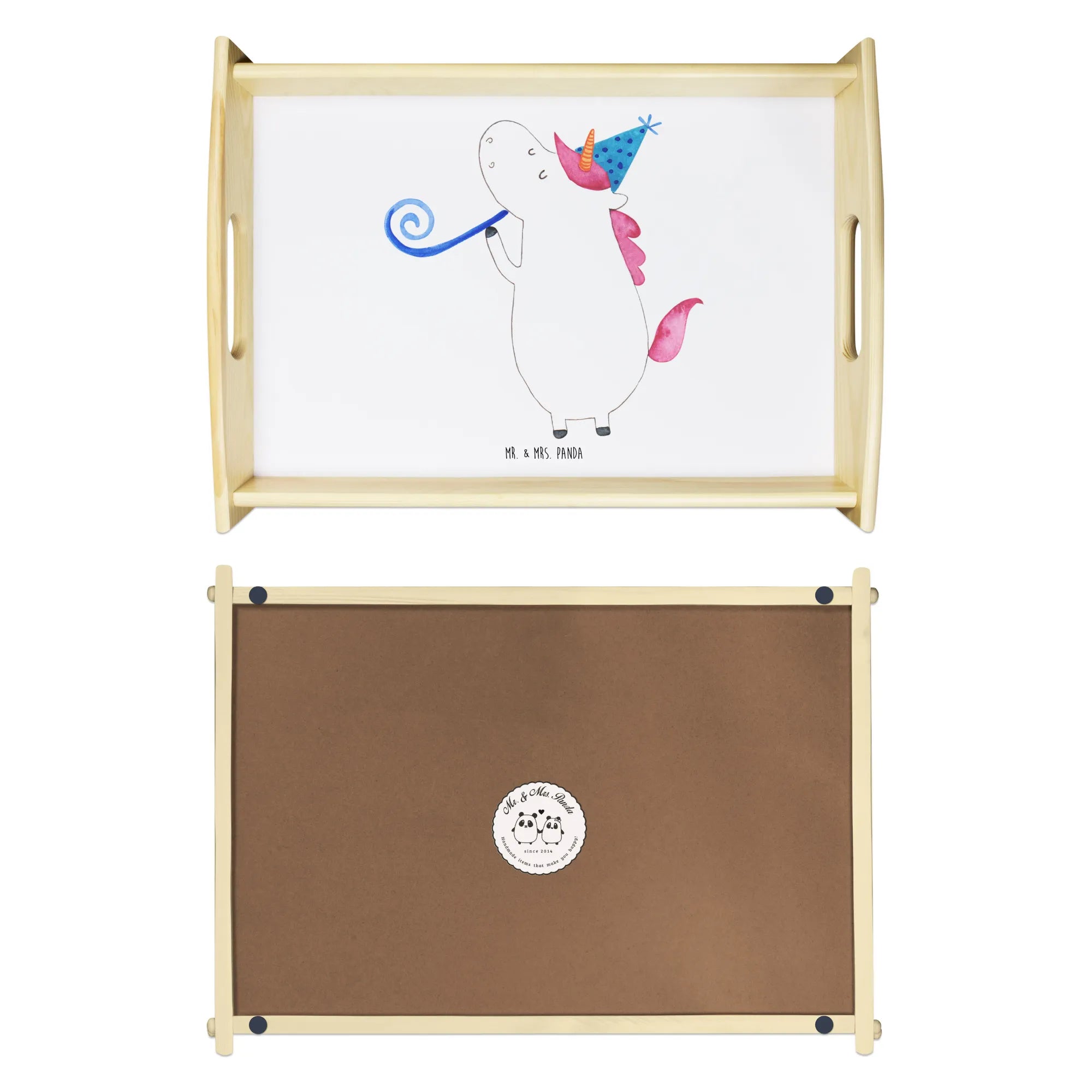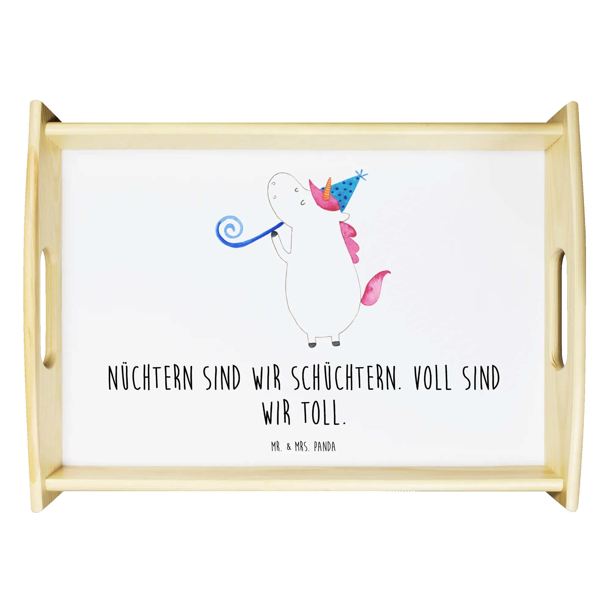 Das einzigartige Serviertablett von Mr. & Mrs. Panda wird dein Frühstücksbuffet zum Erlebnis machen! Mit seinen großzügigen Maßen von 480 mm x 480 mm x 65 mm und einem Gewicht von 925 g ist es die perfekte Kombination aus Funktionalität und Stil. Aus hochwertigem, lasiertem Echtholz gefertigt, verzückt das Tablett mit einem strahlenden Druck, der für gute Laune sorgt. Ob im Bett oder auf dem Sofa, die seitlichen Griffmulden garantieren ein angenehmes Handling. Die spezielle Anti-Rutsch Beschichtung sorgt dafür, dass alles sicher an seinem Platz bleibt. Dank der kratzfesten Oberfläche ist das Tablett sehr pflegeleicht – einfach mit einem feuchten Tuch und etwas Spülmittel abwischen. Bitte nicht einweichen! Denke daran, dass die Anfertigung wegen der hohen Qualität etwas Zeit in Anspruch nimmt.