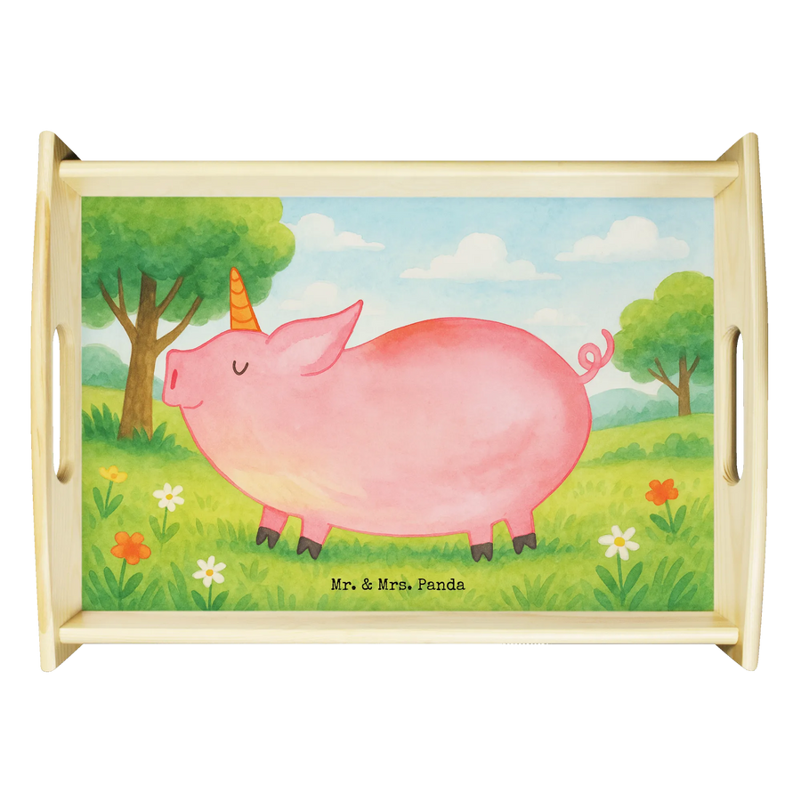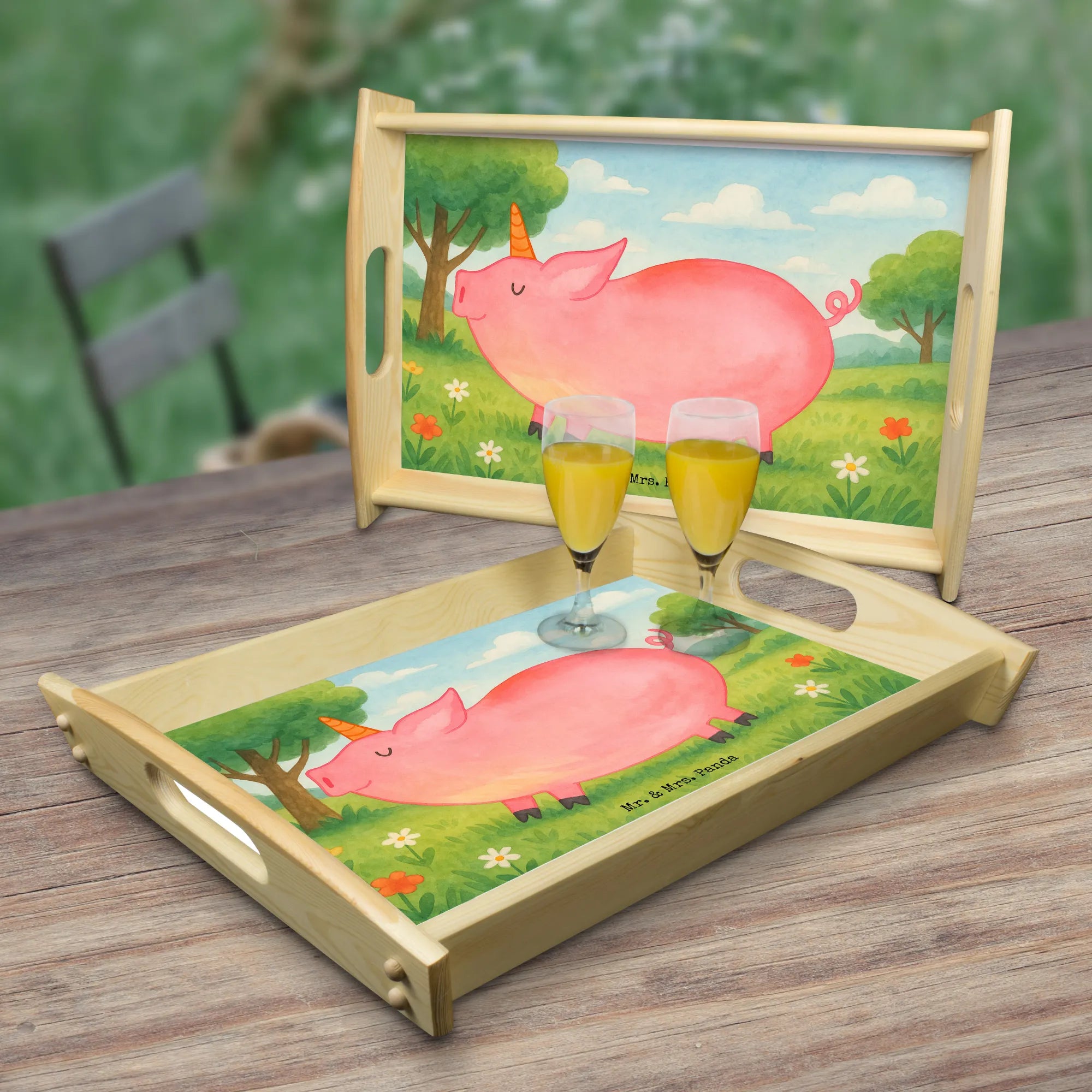 Entdecke unser einzigartiges Serviertablett von Mr. & Mrs. Panda – ein wahres Highlight für jedes Frühstück! Mit den Maßen von 480 mm x 480 mm x 65 mm und einem Gewicht von 925 g ist dieses Holztablett nicht nur praktisch, sondern auch wunderschön. Hergestellt aus lasiertem Echtholz mit einem brillanten Druck, bringt es Farbe in dein Zuhause. Ob für ein gemütliches Frühstück im Bett oder beim Entspannen auf dem Sofa – die seitlichen Griffmulden sorgen für eine einfache Handhabung. Vielen lieben Dank für deine Unterstützung, die Anti-Rutsch Pads auf der Unterseite machen das Servieren noch einfacher. Die kratzfeste und robuste Oberfläche garantiert Langlebigkeit. Pflegeleicht wird es einfach mit einem feuchten Tuch und etwas Spülmittel gereinigt. Bitte nicht einweichen! Hinweis: Aufgrund der aufwändigen Herstellung kann die Anfertigungszeit etwas länger sein.