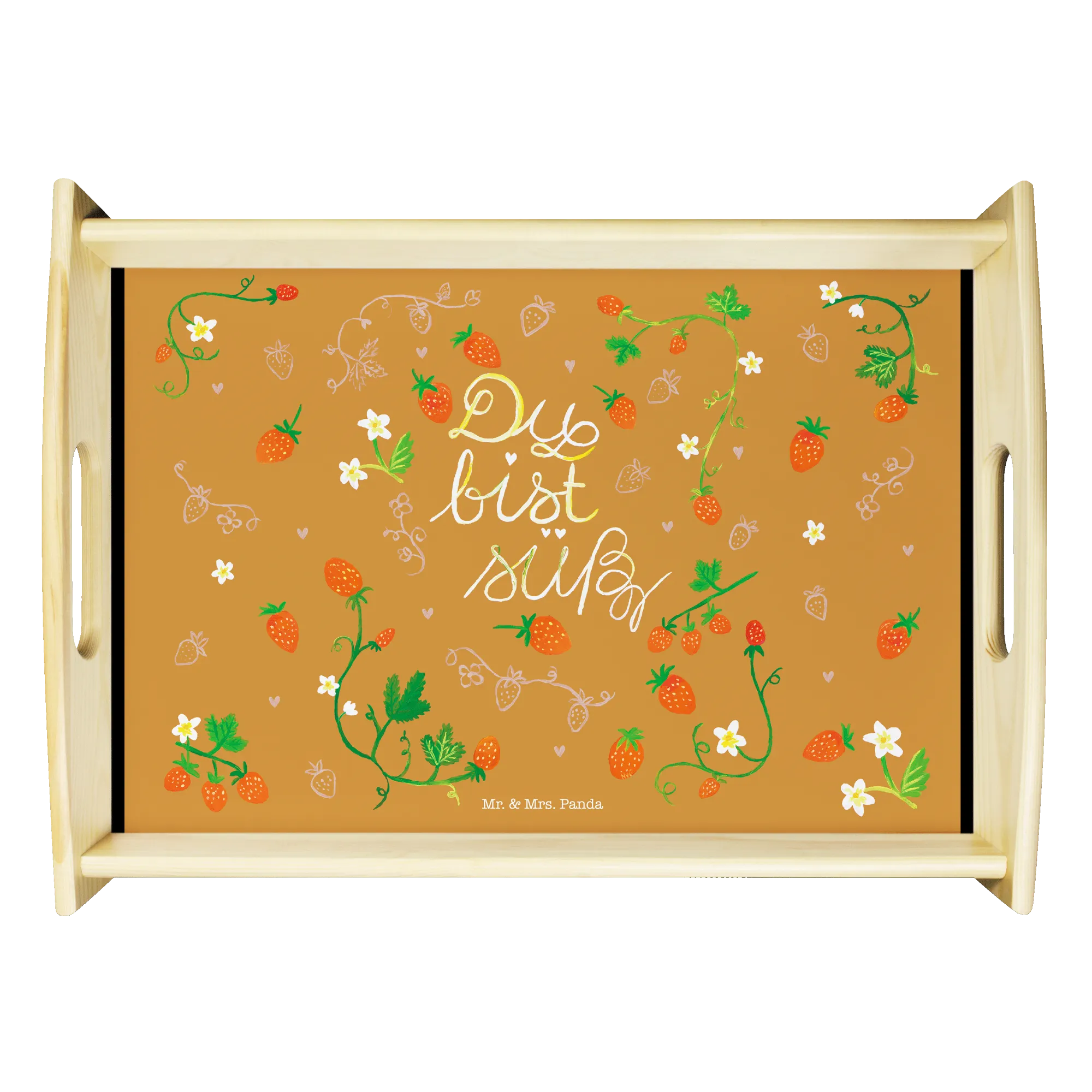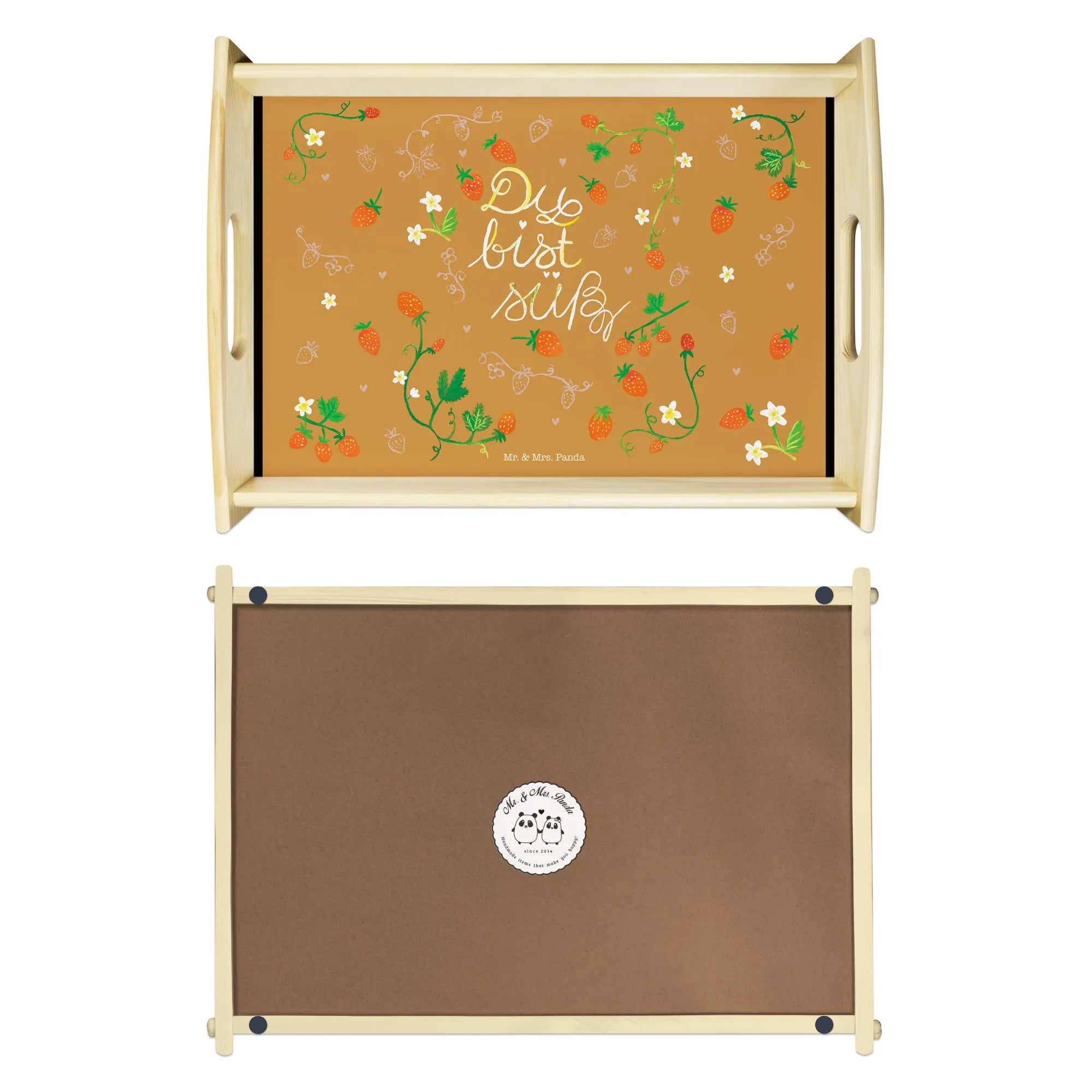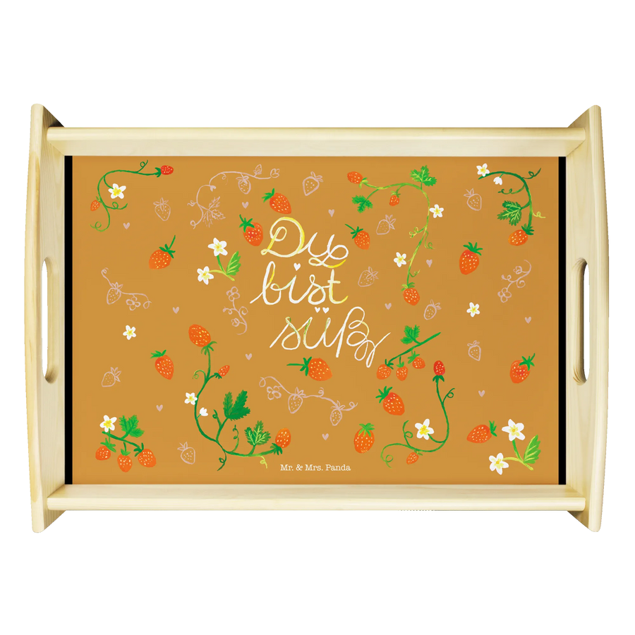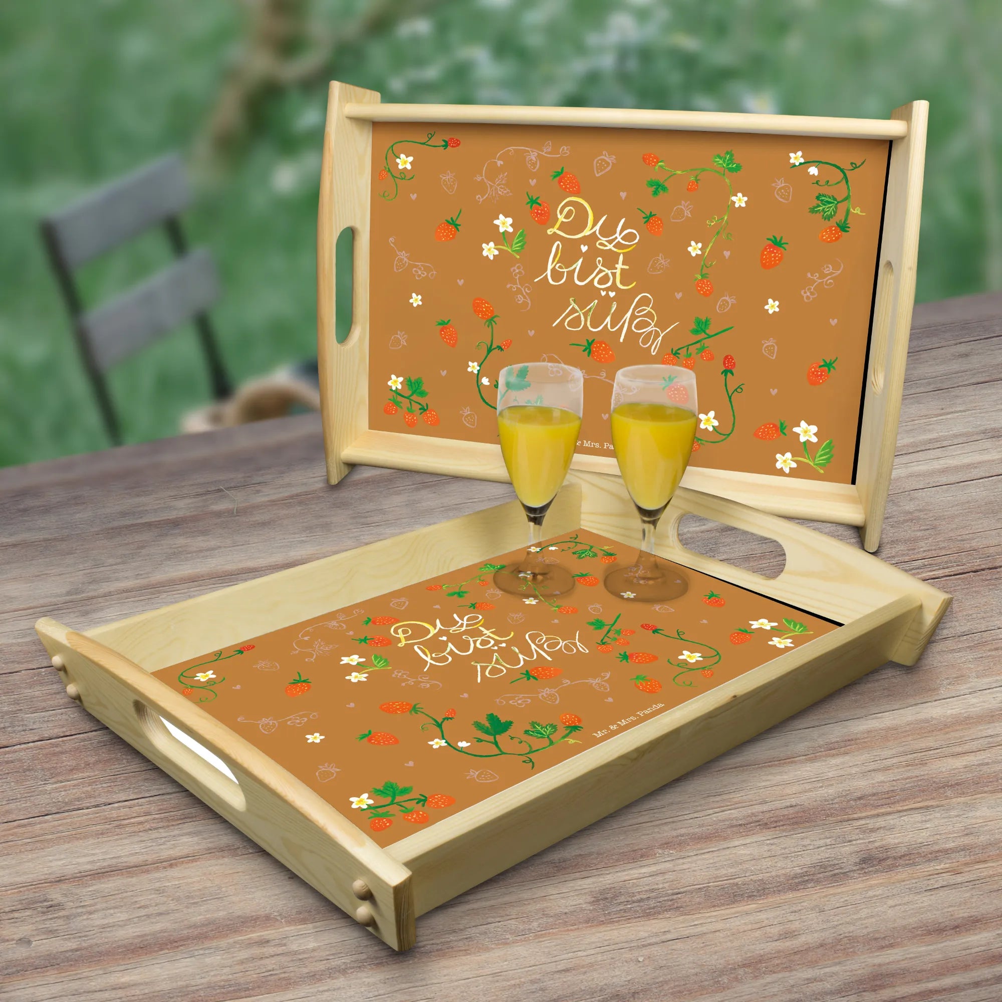 Entdecke unser einzigartiges Serviertablett von Mr. & Mrs. Panda – ein wahres Highlight für jedes Frühstück! Mit den Maßen von 480 mm x 480 mm x 65 mm und einem Gewicht von 925 g ist dieses Holztablett nicht nur praktisch, sondern auch wunderschön. Hergestellt aus lasiertem Echtholz mit einem brillanten Druck, bringt es Farbe in dein Zuhause. Ob für ein gemütliches Frühstück im Bett oder beim Entspannen auf dem Sofa – die seitlichen Griffmulden sorgen für eine einfache Handhabung. Vielen lieben Dank für deine Unterstützung, die Anti-Rutsch Pads auf der Unterseite machen das Servieren noch einfacher. Die kratzfeste und robuste Oberfläche garantiert Langlebigkeit. Pflegeleicht wird es einfach mit einem feuchten Tuch und etwas Spülmittel gereinigt. Bitte nicht einweichen! Hinweis: Aufgrund der aufwändigen Herstellung kann die Anfertigungszeit etwas länger sein.