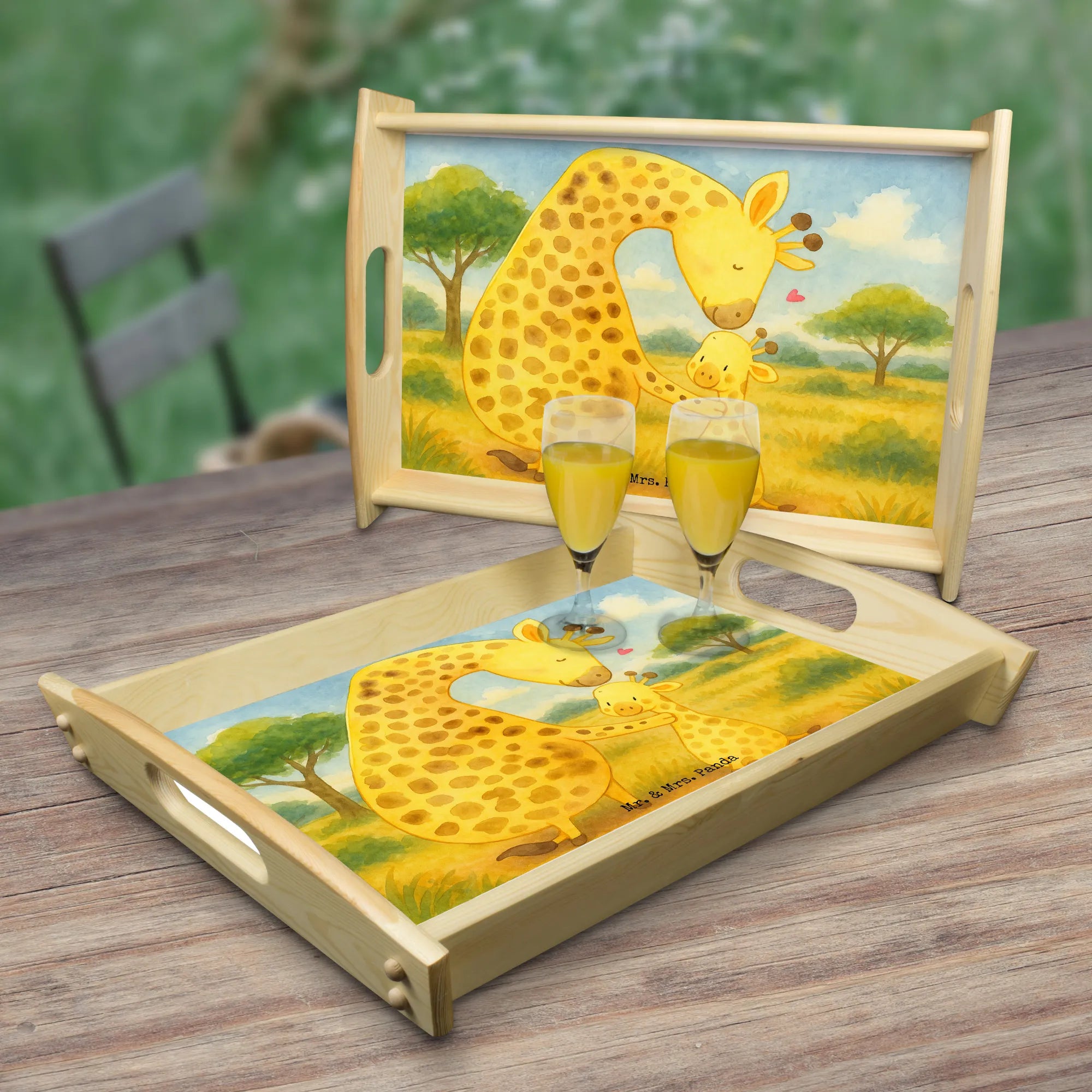 Das einzigartige Serviertablett von Mr. & Mrs. Panda wird dein Frühstücksbuffet zum Erlebnis machen! Mit seinen großzügigen Maßen von 480 mm x 480 mm x 65 mm und einem Gewicht von 925 g ist es die perfekte Kombination aus Funktionalität und Stil. Aus hochwertigem, lasiertem Echtholz gefertigt, verzückt das Tablett mit einem strahlenden Druck, der für gute Laune sorgt. Ob im Bett oder auf dem Sofa, die seitlichen Griffmulden garantieren ein angenehmes Handling. Die spezielle Anti-Rutsch Beschichtung sorgt dafür, dass alles sicher an seinem Platz bleibt. Dank der kratzfesten Oberfläche ist das Tablett sehr pflegeleicht – einfach mit einem feuchten Tuch und etwas Spülmittel abwischen. Bitte nicht einweichen! Denke daran, dass die Anfertigung wegen der hohen Qualität etwas Zeit in Anspruch nimmt.