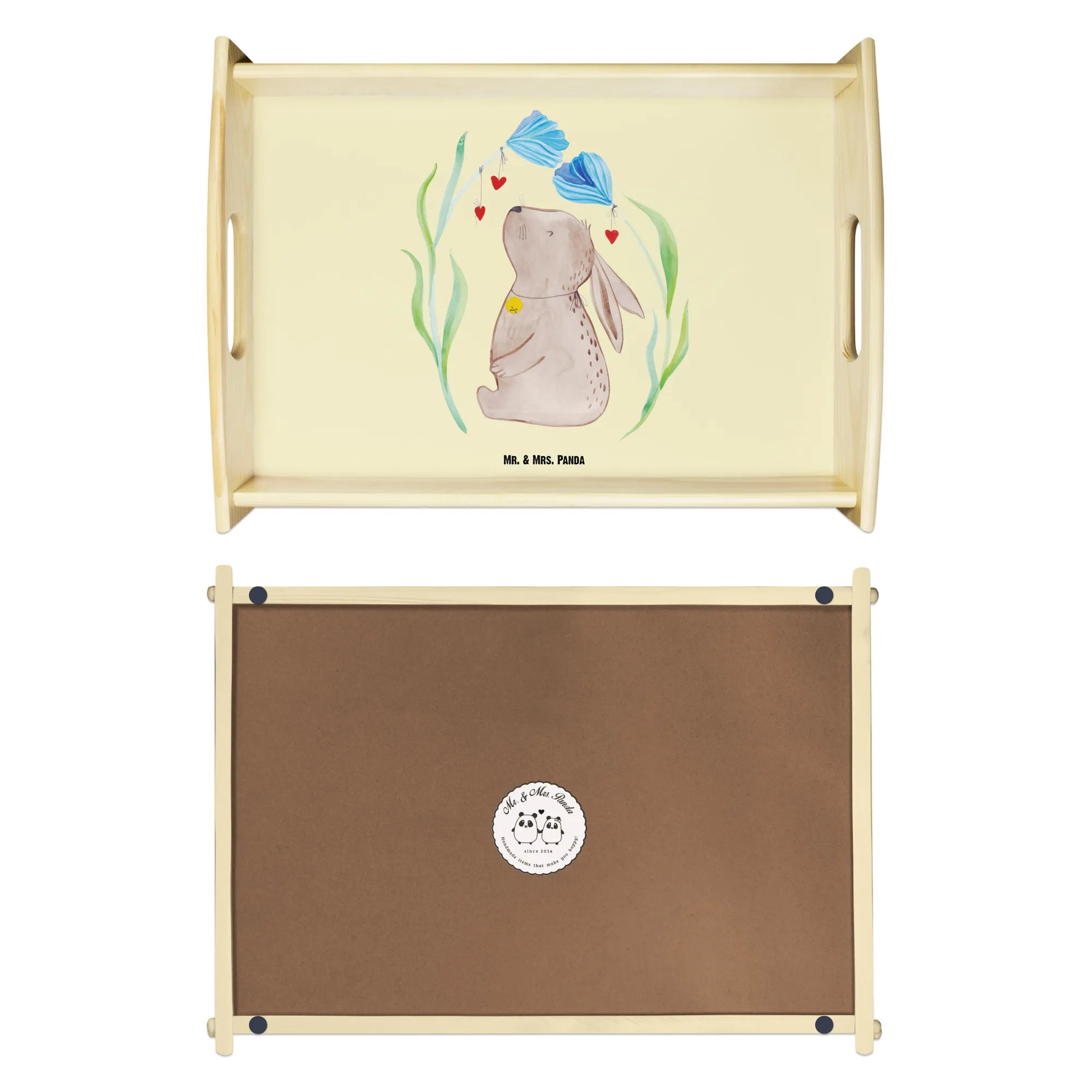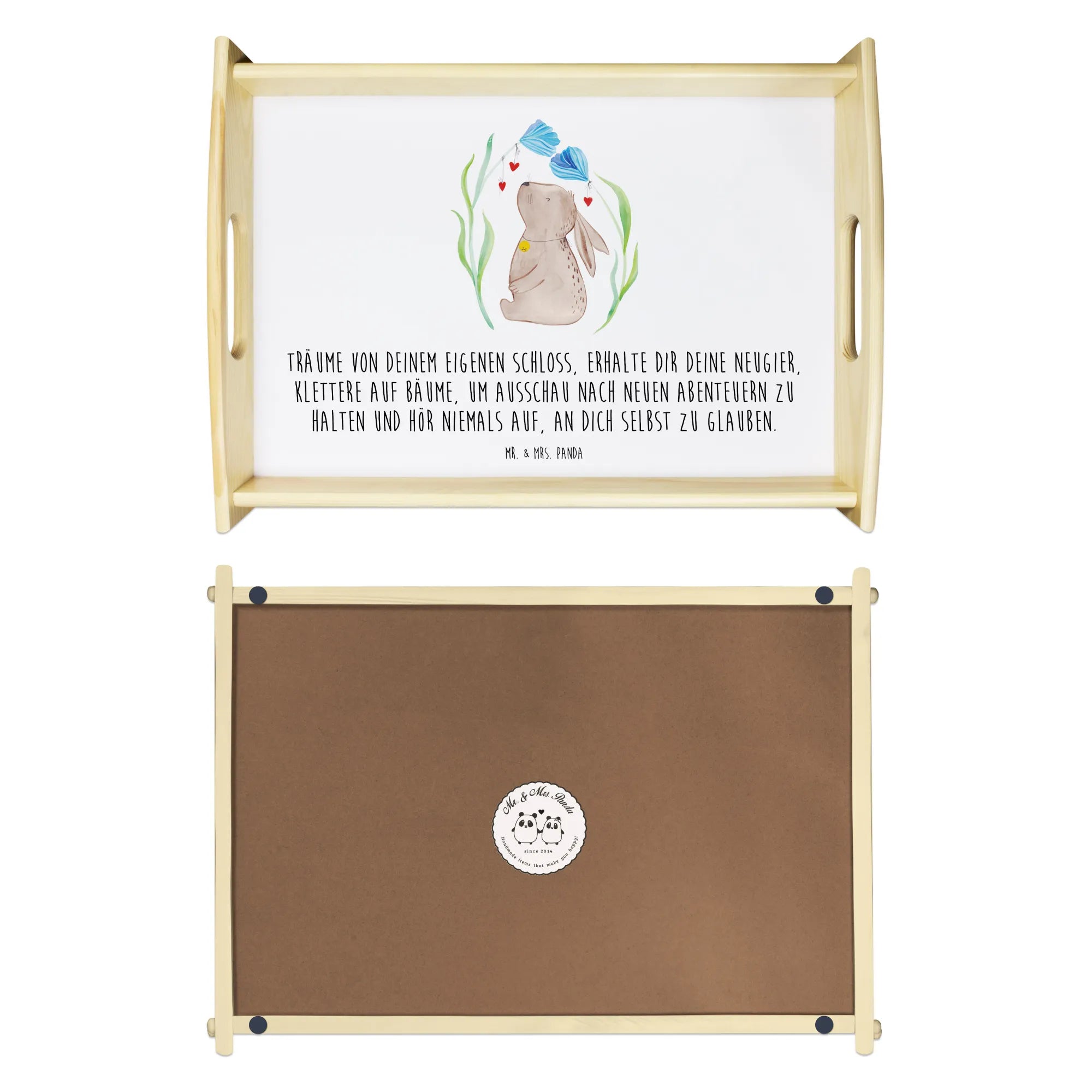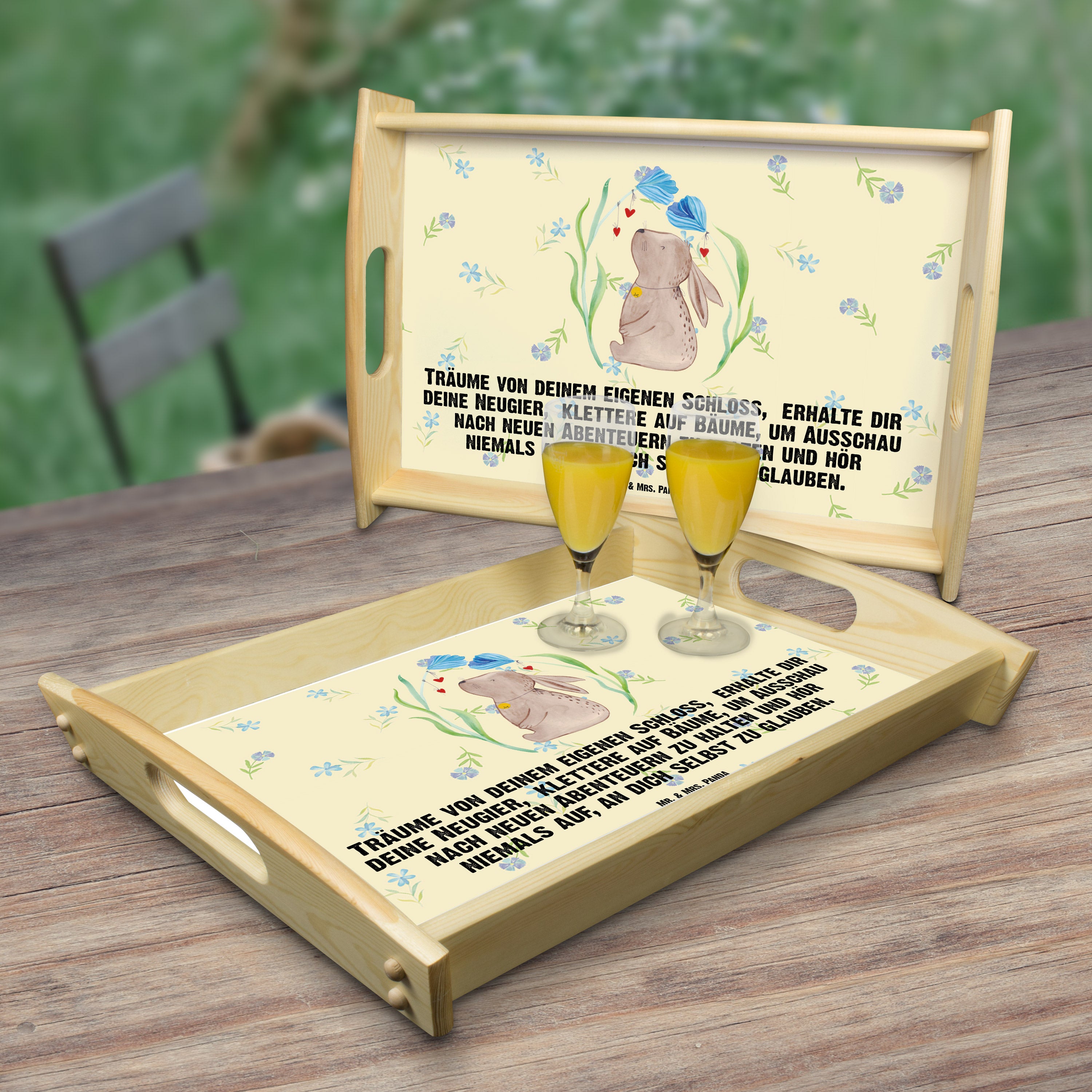 Das wunderschöne Serviertablett "Hase Blume" aus der Ostern-Kollektion von Mr. & Mrs. Panda ist der perfekte Begleiter für deine gemütlichen Osterfrühstücke oder als fröhliches Dekorationselement für dein Zuhause. Die Liebhaber des Osterfestes werden begeistert sein von dem liebevoll gestalteten Motiv, das einen süßen kleinen Hasen zeigt, der zwischen bunten Blumen hopsend zu sehen ist. Mit dem beeindruckenden Aufdruck wird jede Einladung zum Brunch oder jedes Frühstück im Bett zu etwas ganz Besonderem.
