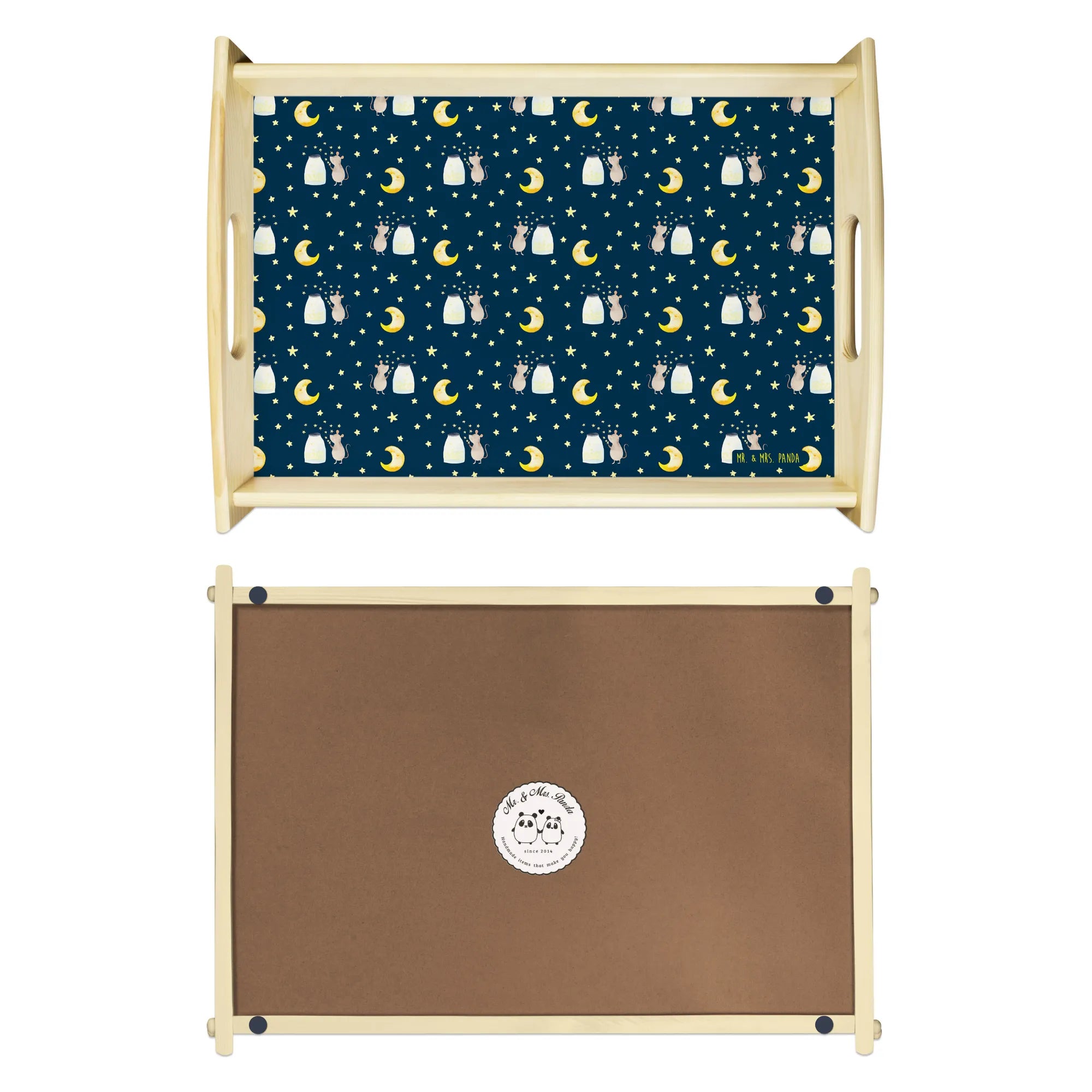 Ideal für ein ausgiebiges Frühstück im Bett oder als stilvolles Dekotablett für dein Sofa. Ob als Geschenk zur Geburt, zur Taufe oder zum Kindergeburtstag – dieses Tablett sorgt für strahlende Augen! Der brillant strahlende Aufdruck und das lasierte Echtholz machen das Tablett zu einem langlebigen Begleiter.