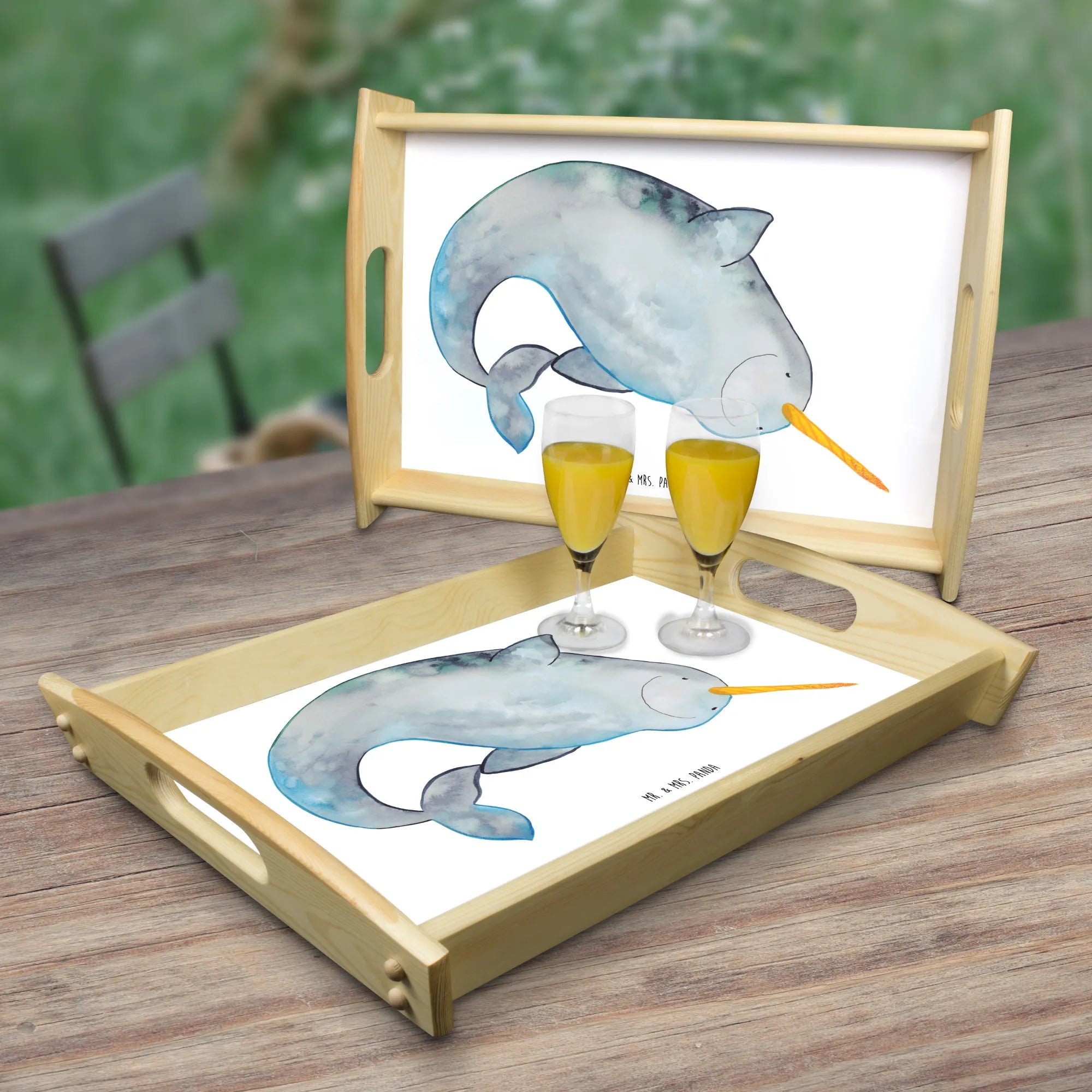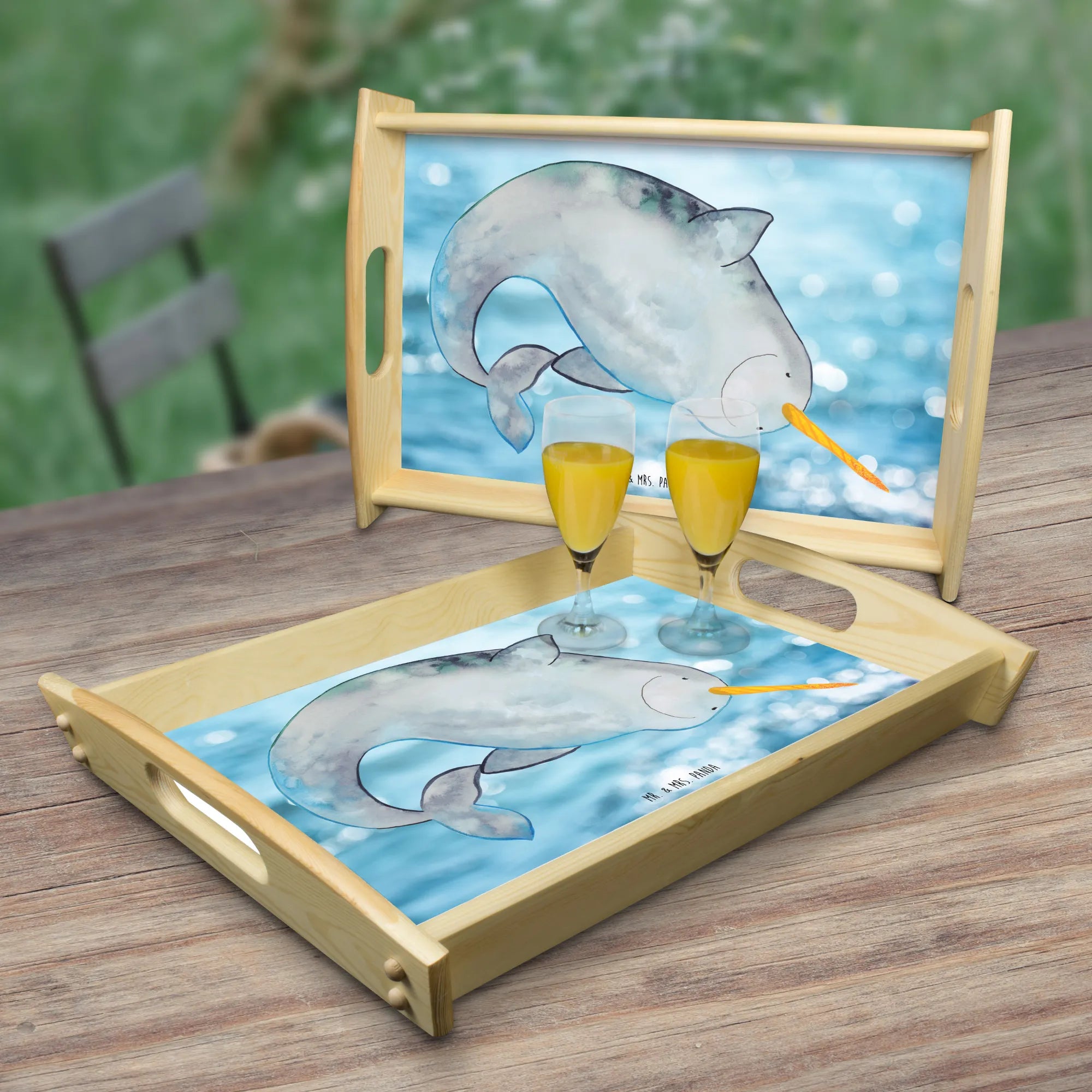 Verwöhne Deine Liebsten mit unserem bezaubernden Serviertablett von Mr. & Mrs. Panda! Mit den Maßen von 480 mm x 480 mm x 65 mm und einem gewicht von 925 g ist es nicht nur hübsch, sondern auch praktisch. Aus lasiertem Echtholz gefertigt, begeistert es mit einem lebendigen Druck, der gute Stimmung verbreitet. Egal ob beim Frühstück im Bett oder beim gemütlichen Abendessen auf dem Sofa – die seitlichen Griffmulden ermöglichen ein einfaches Tragen. Die Anti-Rutsch Pads auf der Unterseite sorgen dafür, dass alles sicher an seinem Platz bleibt. Dank der kratzfesten Oberfläche bleibt dein Tablett nach jeder Benutzung in bestem Zustand – einfach mit einem feuchten Tuch und Spülmittel abwischen, aber nicht einweichen! Beachte bitte die längere Anfertigungszeit aufgrund der besonderen Verarbeitung.