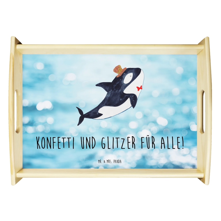 Serviertablett Orca Zylinder Frühstückstablett, Küchentablett, Holztablett, Dekotablett, Tablett, Serviertablett, Meerestiere, Meer, Urlaub, Fest, Geburtstag, Glückwunsch, Konfetti, Orca, Feier, Fete, Glitzer, Glitter, Narwal
