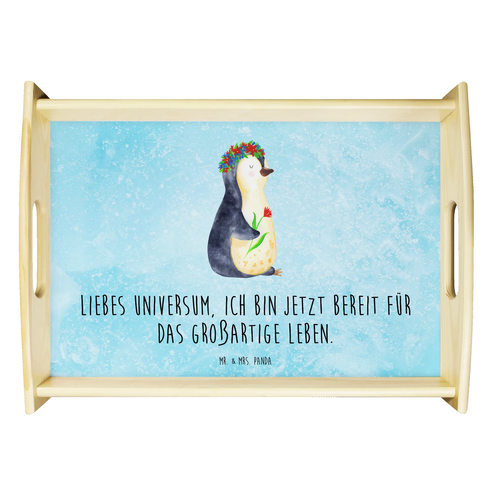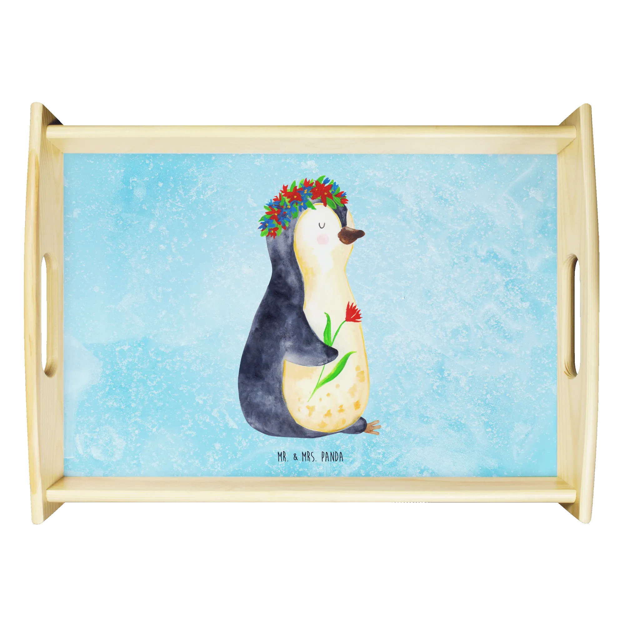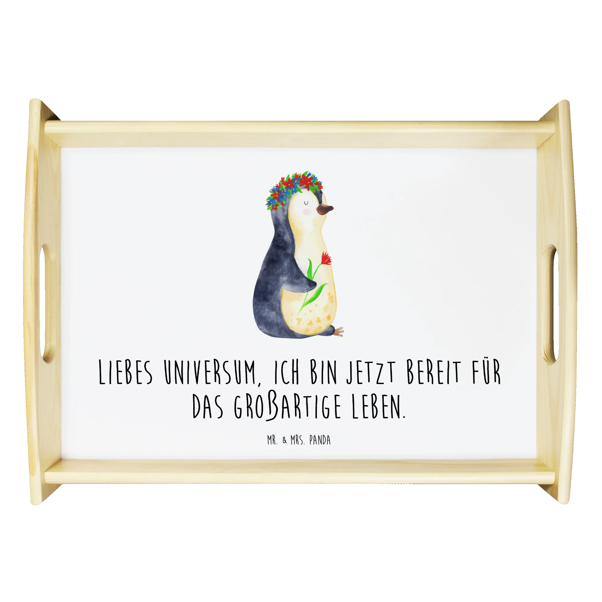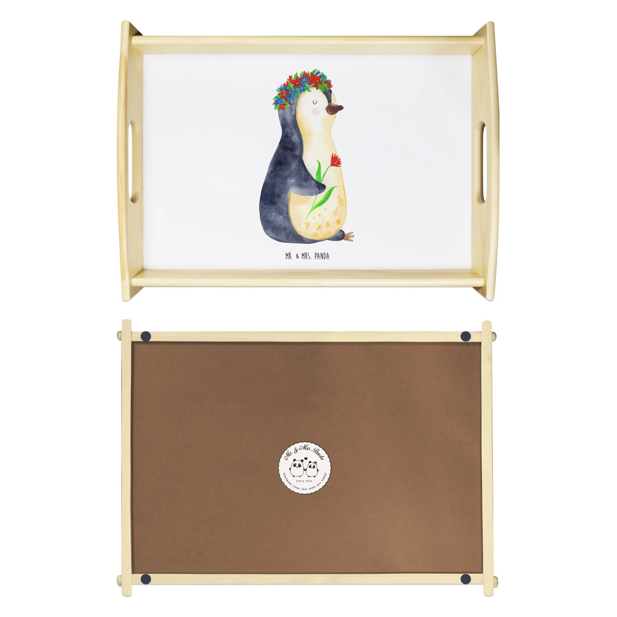 Serviertablett Pinguin Blumenkranz - mit Spruch - Weiß