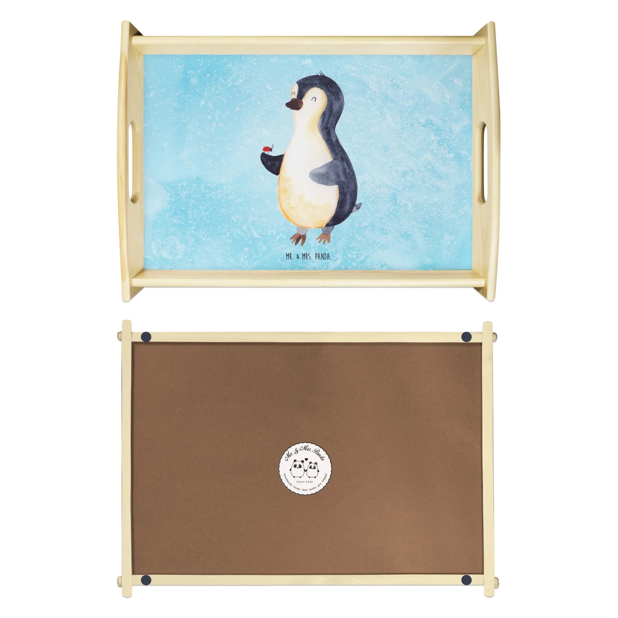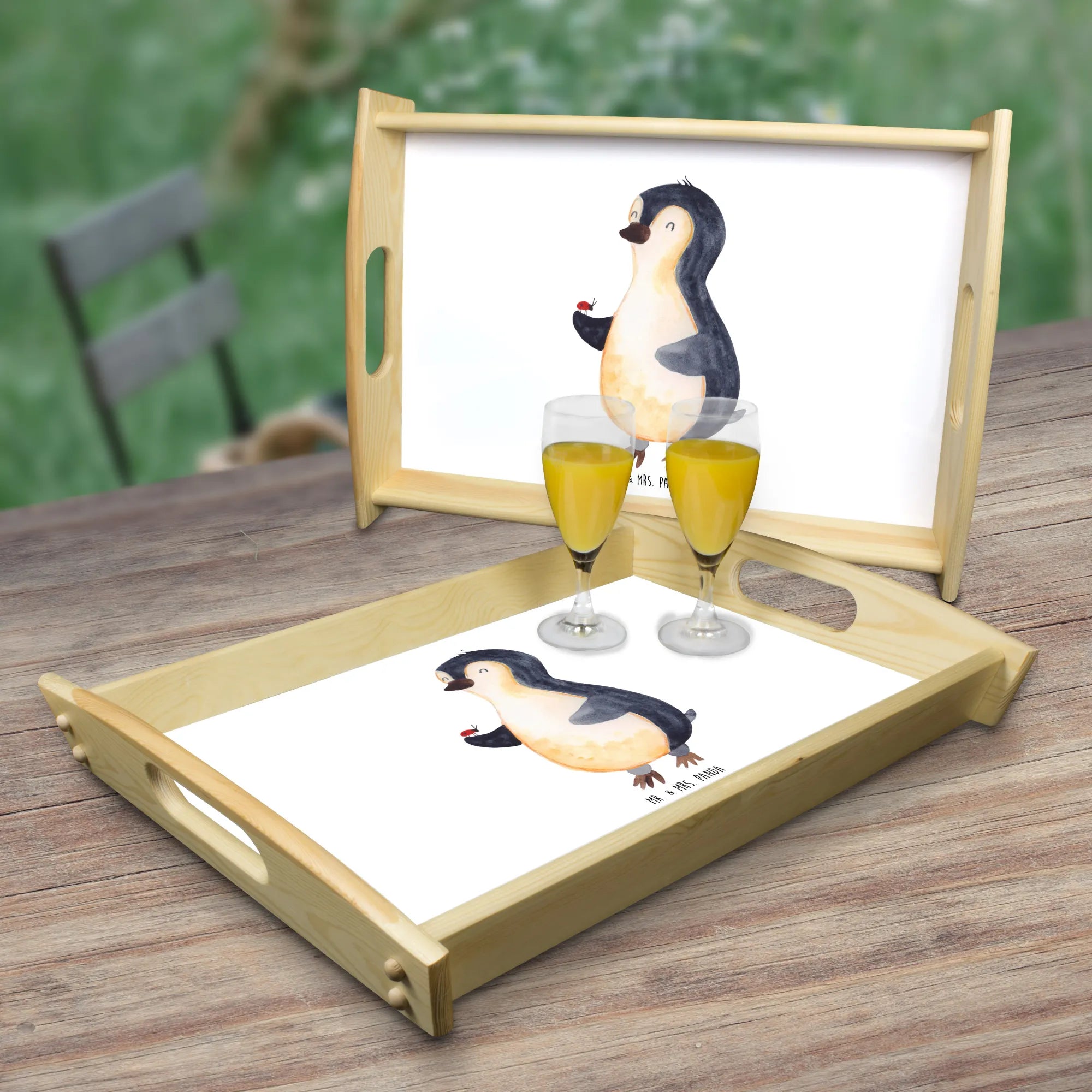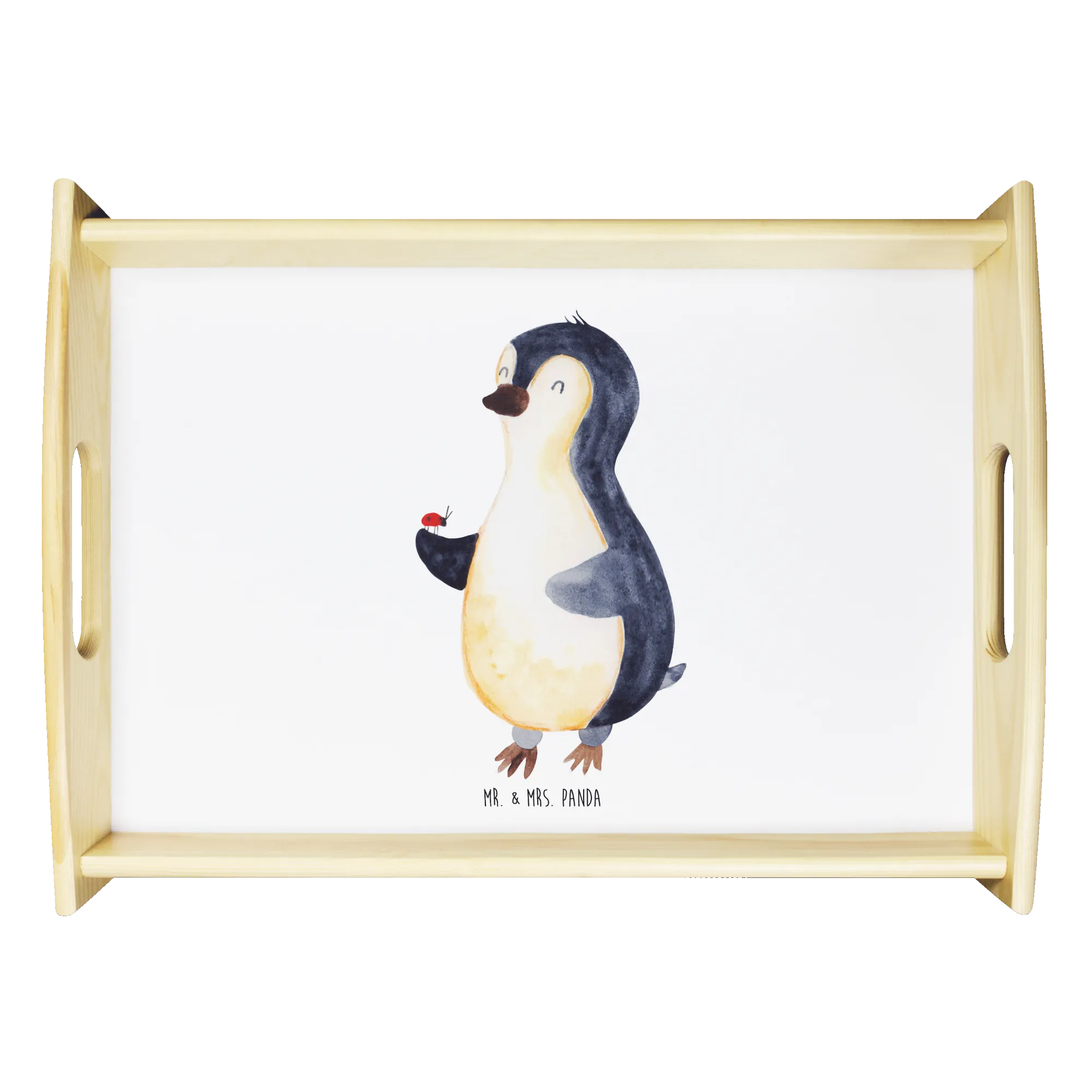 Entdecke das einzigartige Serviertablett Pinguin Marienkäfer aus der Pinguin-Kollektion von Mr. & Mrs. Panda! Dieses bezaubernde Holztablett bringt frischen Wind in dein Zuhause und sorgt mit seinem liebevollen Design für Freude und Lebensfreude. Mit dem süßen Pinguin, der einen fröhlichen Marienkäfer auf seiner Flosse hält, wird jede Mahlzeit zu einem kleinen Erlebnis. Ob für ein ausgiebiges Frühstück im Bett oder als dekoratives Element in deiner Küche – dieses Tablett ist einfach perfekt!