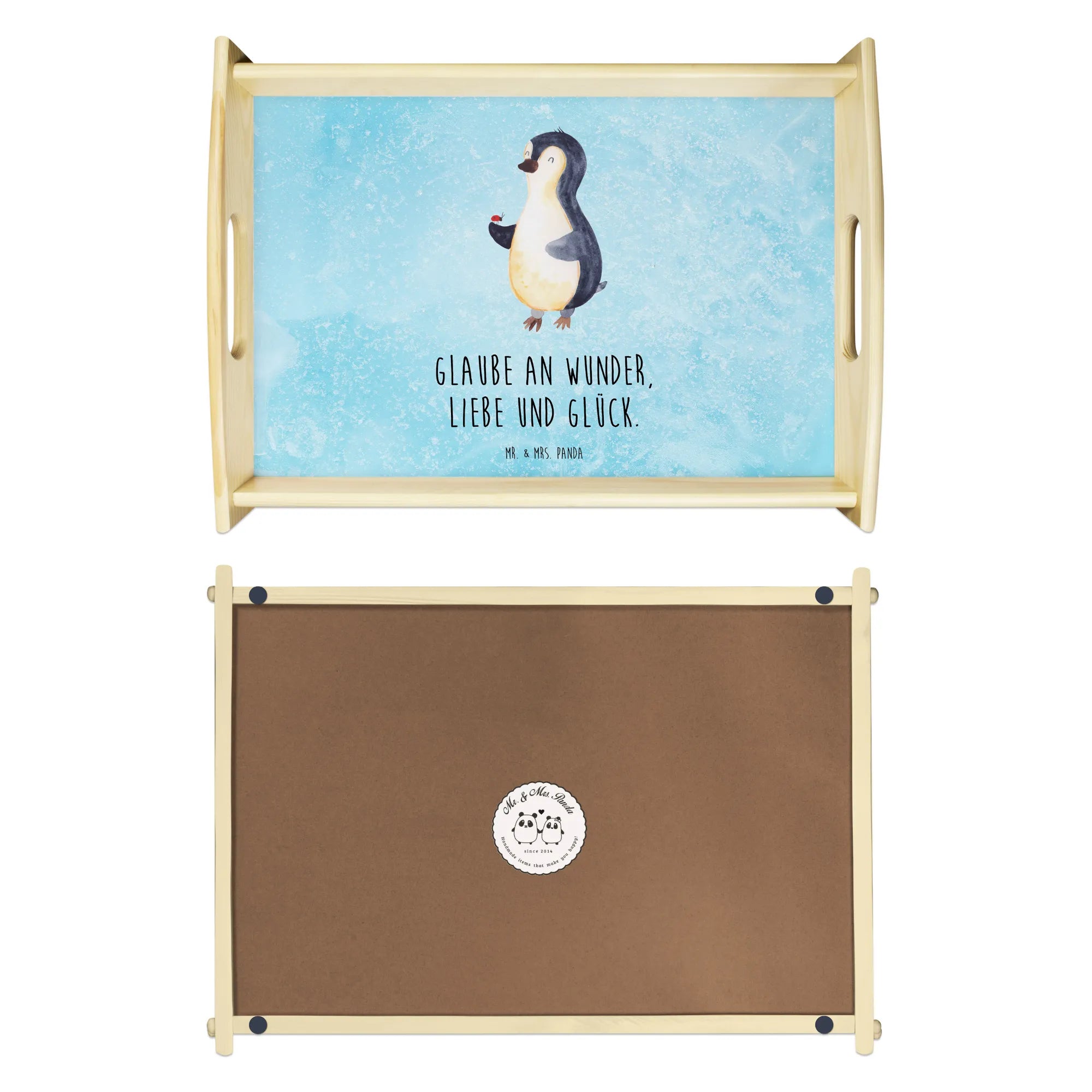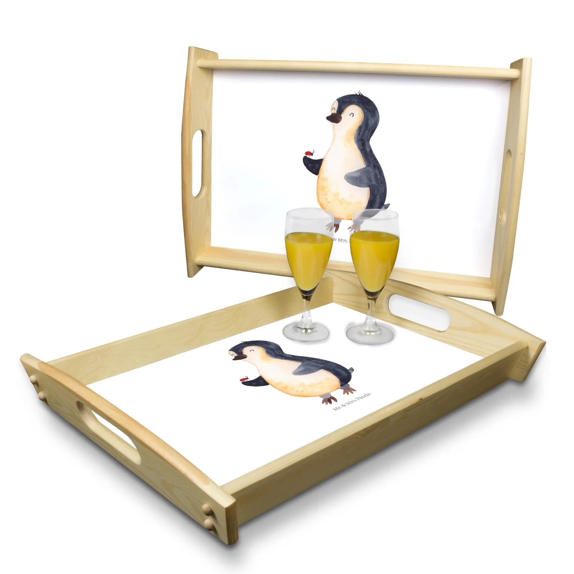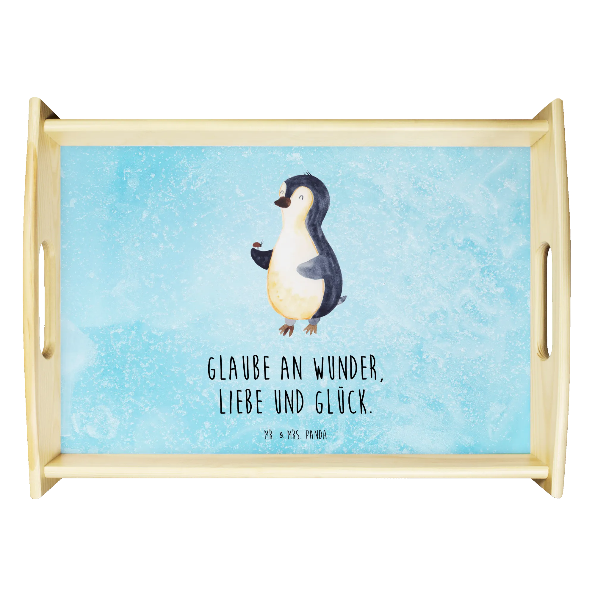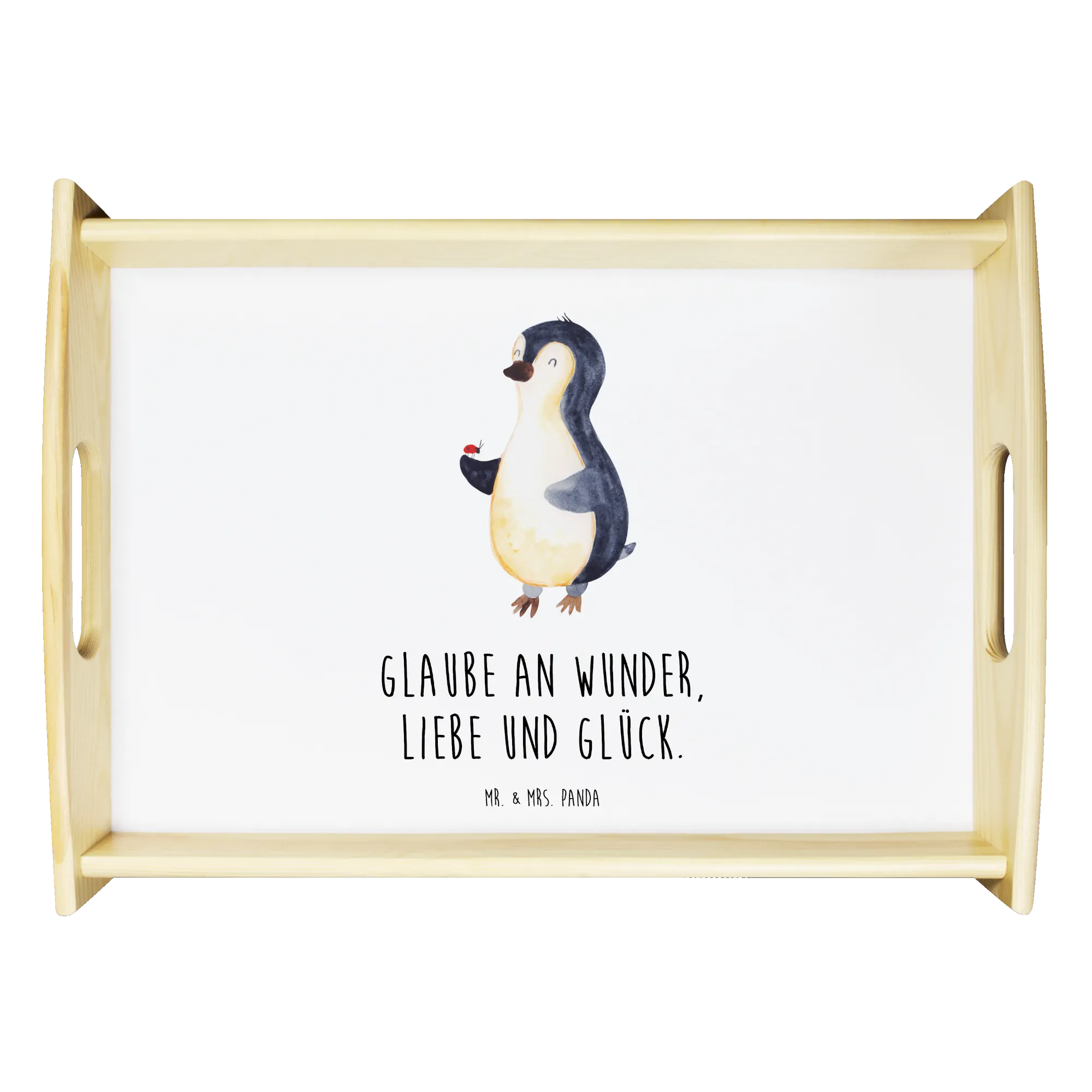 Entdecke das einzigartige Serviertablett Pinguin Marienkäfer aus der Pinguin-Kollektion von Mr. & Mrs. Panda! Dieses bezaubernde Holztablett bringt frischen Wind in dein Zuhause und sorgt mit seinem liebevollen Design für Freude und Lebensfreude. Mit dem süßen Pinguin, der einen fröhlichen Marienkäfer auf seiner Flosse hält, wird jede Mahlzeit zu einem kleinen Erlebnis. Ob für ein ausgiebiges Frühstück im Bett oder als dekoratives Element in deiner Küche – dieses Tablett ist einfach perfekt!
