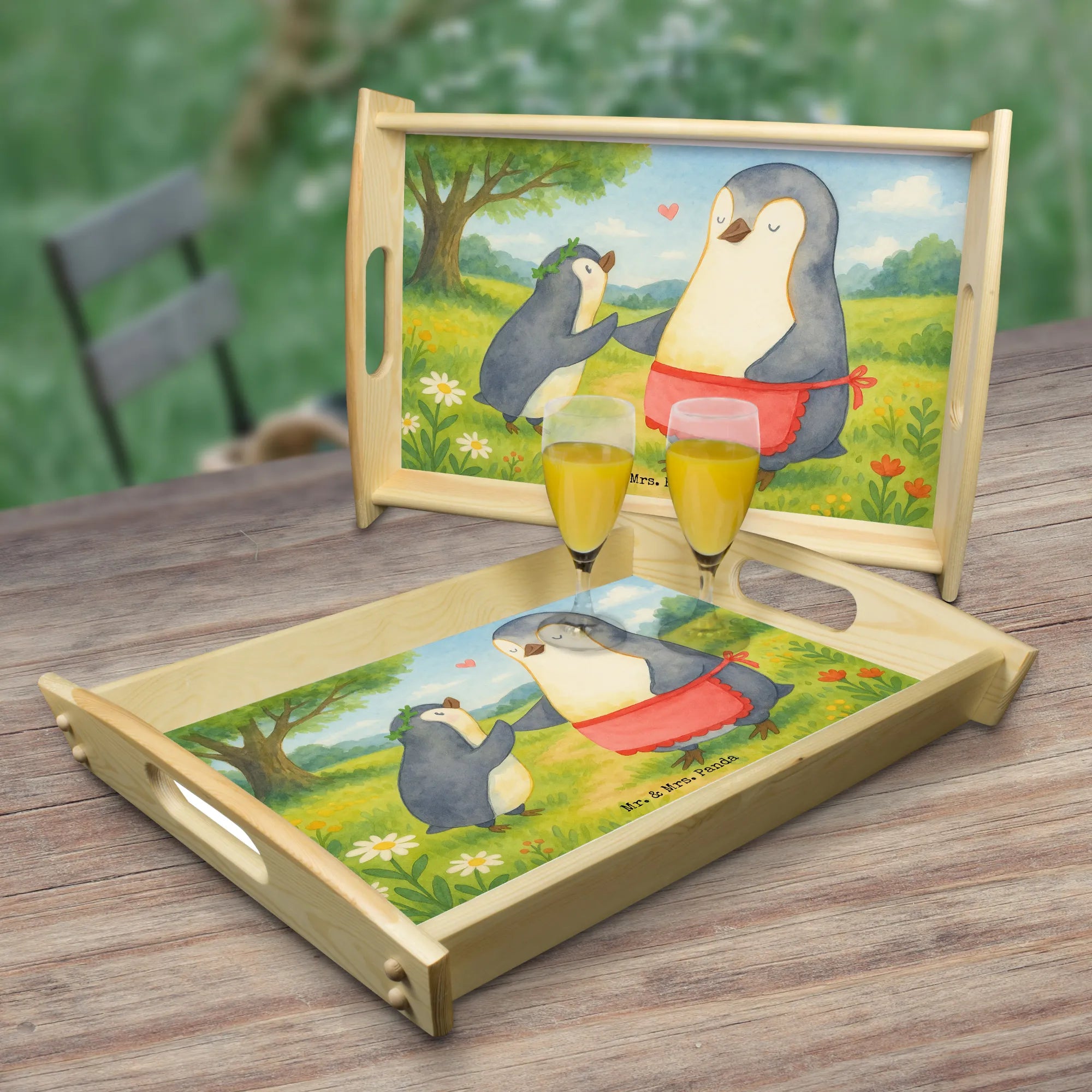 Das wunderschöne Serviertablett von Mr. & Mrs. Panda ist perfekt für jeden Anlass! Mit seinen großzügigen Maßen von 480 mm x 480 mm x 65 mm und einem Gewicht von 925 g, ist es ein echter Hingucker in Deiner Küche und bringt Freude beim Servieren. Eingerahmt von einem attraktiven Design aus lasiertem Echtholz, wird jedes Frühstück zum Genuss. Die praktische Anwendung wird durch die seitlichen Griffmulden unterstützt, die für einen sicheren Halt sorgen. Das brillante Motiv macht das Tablett zu einem echten Dekoobjekt. Und dank der Anti-Rutsch Pads auf der Unterseite bleibt alles an seinem Platz. Die robuste und kratzfeste Oberfläche ist zudem pflegeleicht – einfach feucht abwischen – aber nicht einweichen! Beachte bitte, dass die Herstellung etwas Zeit in Anspruch nehmen kann, um die einzigartige Qualität zu gewährleisten.