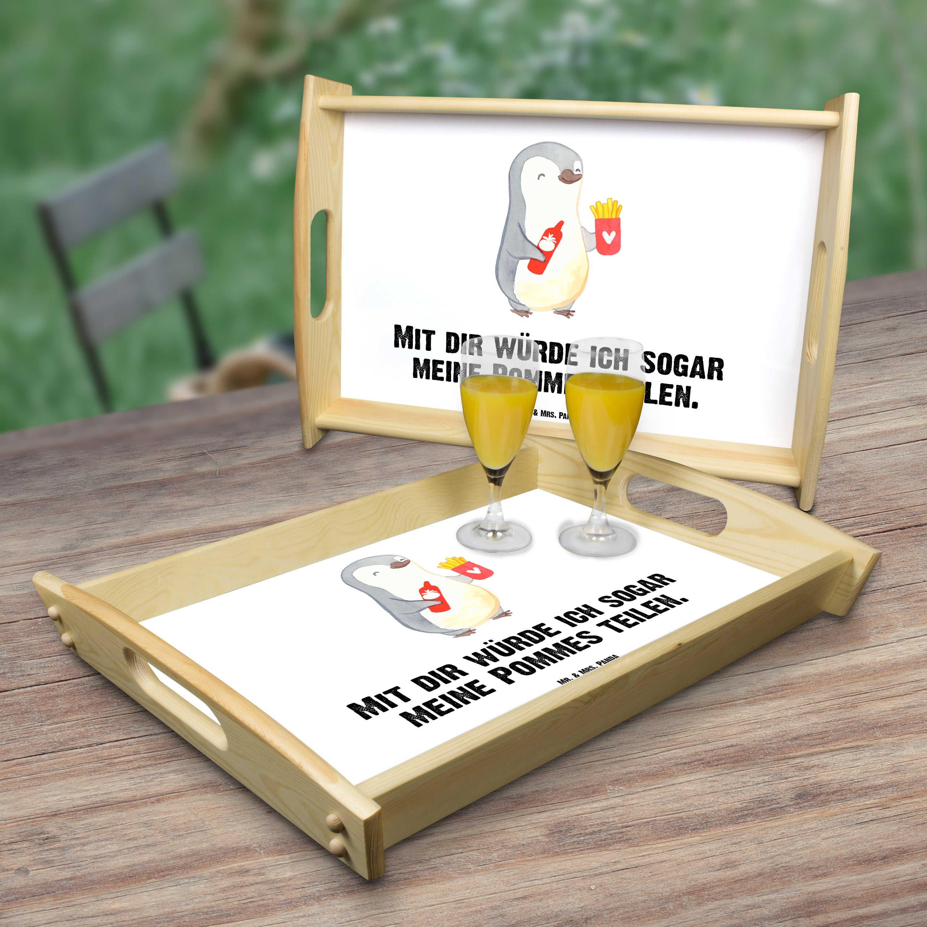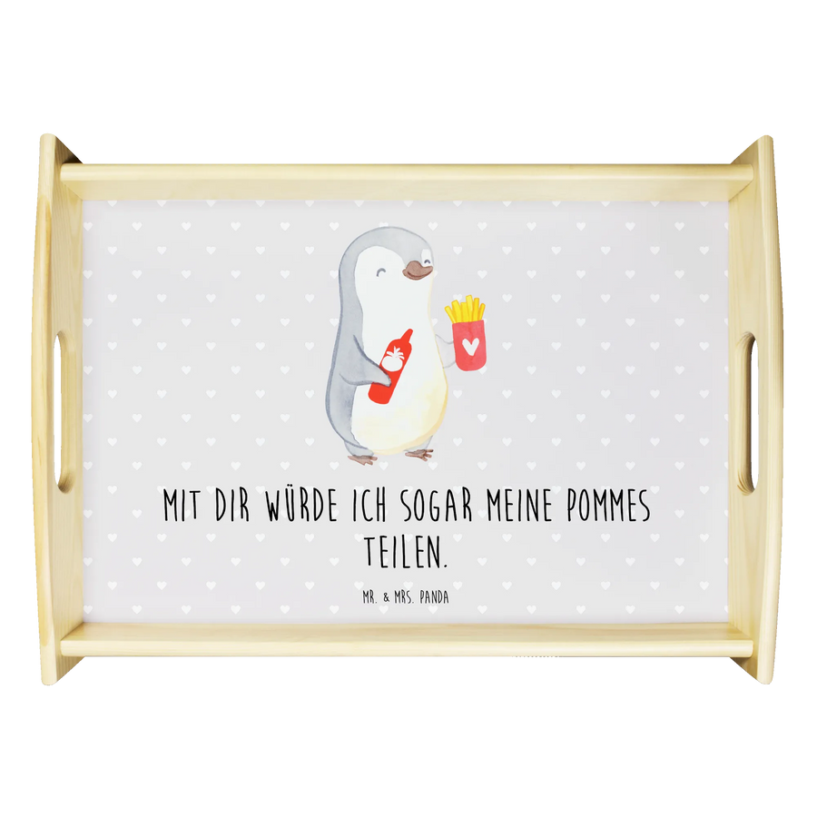 Du suchst nach dem perfekten Geschenk für deine Liebsten? Dann ist das wunderschöne Serviertablett Pinguin Pommes aus der Liebe Kollektion von Mr. & Mrs. Panda genau das Richtige für dich!