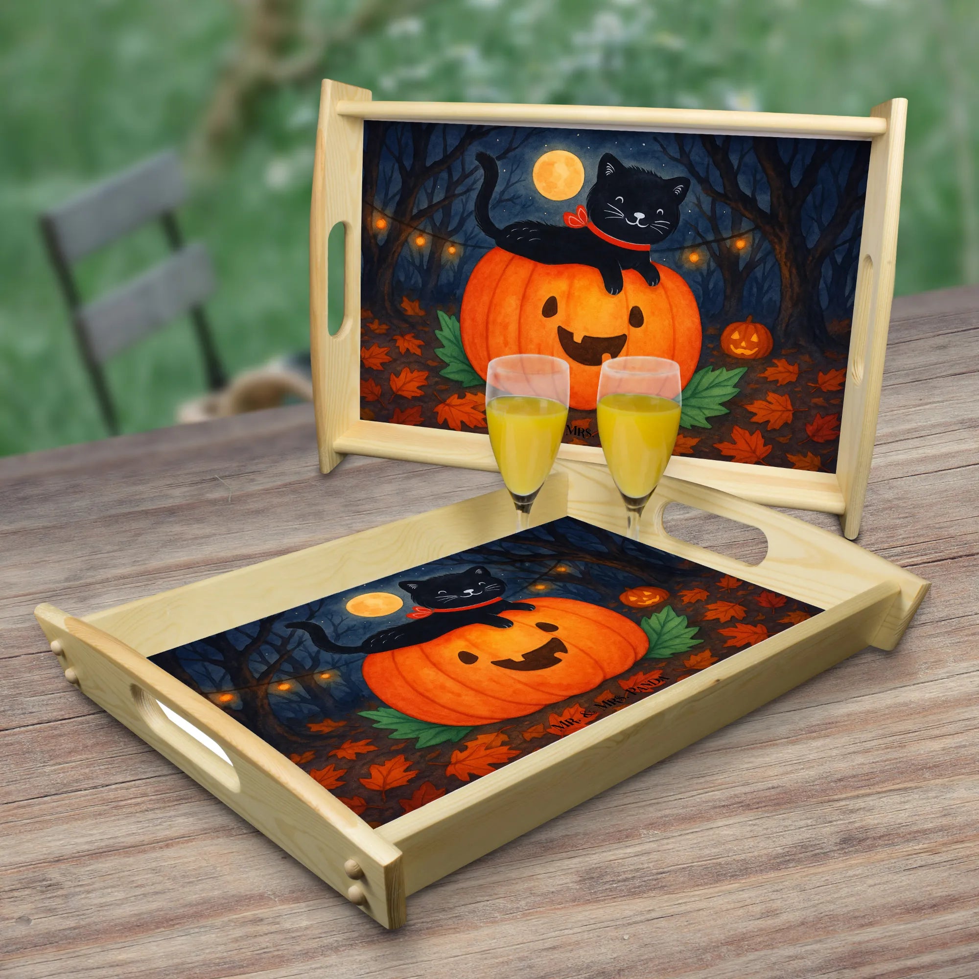 Serviertablett Schwarze Katze Design Dekotablett, Küchentablett, Frühstückstablett, Serviertablett, Holztablett, Tablett, Halloween, Deko, Martinssingen, Dekoration, Geschenke, Schenken