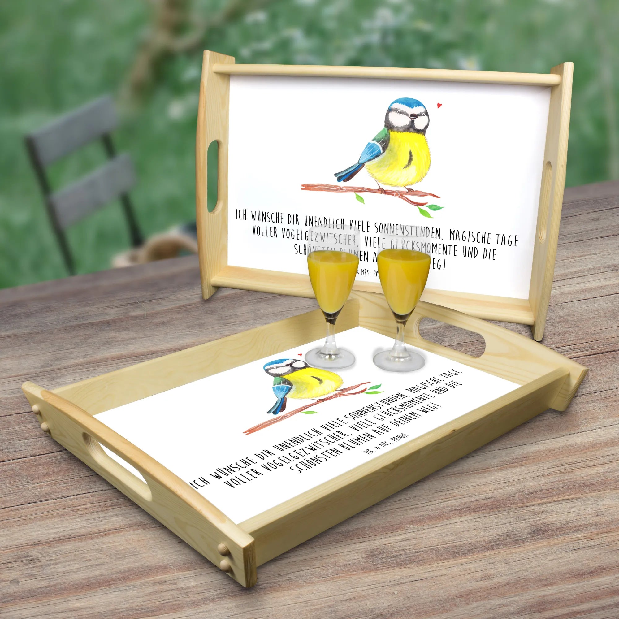 Stell dir vor, du startest deinen Morgen mit einem ausgiebigen Frühstück im Bett, serviert auf einem wunderschön bedruckten Serviertablett von Mr. & Mrs. Panda! Dieses einzigartige Holztablett, mit den Maßen 480 mm x 480 mm x 65 mm und einem Gewicht von 925 g, ist nicht nur ein Hingucker auf deinem Tisch, sondern auch äußerst praktisch. Die seitlichen Griffmulden erleichtern die Handhabung und dank der Anti-Rutsch Pads auf der Unterseite bleibt es sicher an seinem Platz. Der brillant strahlende Aufdruck zeigt bezaubernde Motive und Sprüche, die jeden Tag verschönern. Gefertigt aus lasiertem Echtholz, bietet es eine kratzfeste und robuste Oberfläche, die du einfach mit einem feuchten Tuch und etwas Spülmittel reinigen kannst. Ideal für dein Frühstück im Bett oder als stylisches Dekotablett!