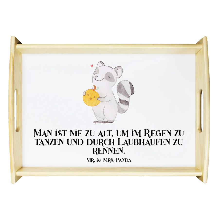 Das einzigartige Serviertablett von Mr. & Mrs. Panda wird dein Frühstücksbuffet zum Erlebnis machen! Mit seinen großzügigen Maßen von 480 mm x 480 mm x 65 mm und einem Gewicht von 925 g ist es die perfekte Kombination aus Funktionalität und Stil. Aus hochwertigem, lasiertem Echtholz gefertigt, verzückt das Tablett mit einem strahlenden Druck, der für gute Laune sorgt. Ob im Bett oder auf dem Sofa, die seitlichen Griffmulden garantieren ein angenehmes Handling. Die spezielle Anti-Rutsch Beschichtung sorgt dafür, dass alles sicher an seinem Platz bleibt. Dank der kratzfesten Oberfläche ist das Tablett sehr pflegeleicht – einfach mit einem feuchten Tuch und etwas Spülmittel abwischen. Bitte nicht einweichen! Denke daran, dass die Anfertigung wegen der hohen Qualität etwas Zeit in Anspruch nimmt.