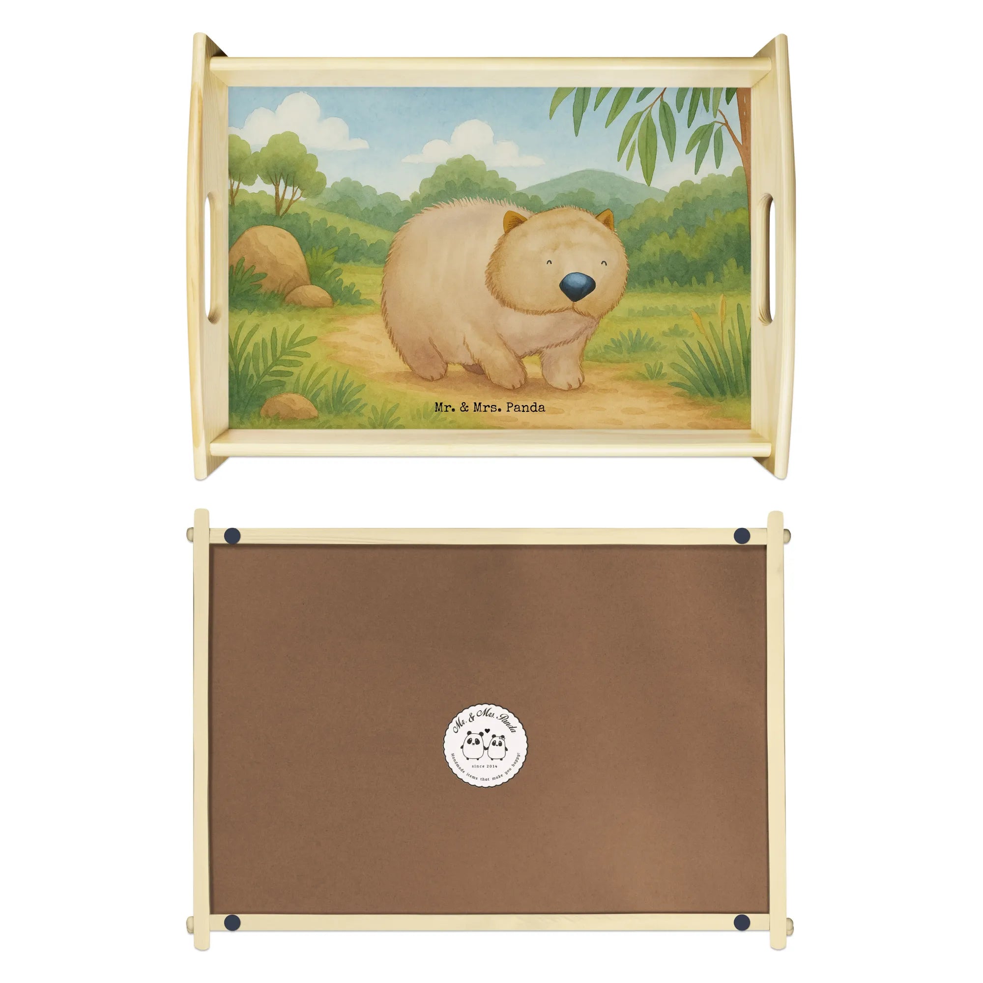 Verwöhne Deine Liebsten mit unserem bezaubernden Serviertablett von Mr. & Mrs. Panda! Mit den Maßen von 480 mm x 480 mm x 65 mm und einem gewicht von 925 g ist es nicht nur hübsch, sondern auch praktisch. Aus lasiertem Echtholz gefertigt, begeistert es mit einem lebendigen Druck, der gute Stimmung verbreitet. Egal ob beim Frühstück im Bett oder beim gemütlichen Abendessen auf dem Sofa – die seitlichen Griffmulden ermöglichen ein einfaches Tragen. Die Anti-Rutsch Pads auf der Unterseite sorgen dafür, dass alles sicher an seinem Platz bleibt. Dank der kratzfesten Oberfläche bleibt dein Tablett nach jeder Benutzung in bestem Zustand – einfach mit einem feuchten Tuch und Spülmittel abwischen, aber nicht einweichen! Beachte bitte die längere Anfertigungszeit aufgrund der besonderen Verarbeitung.
