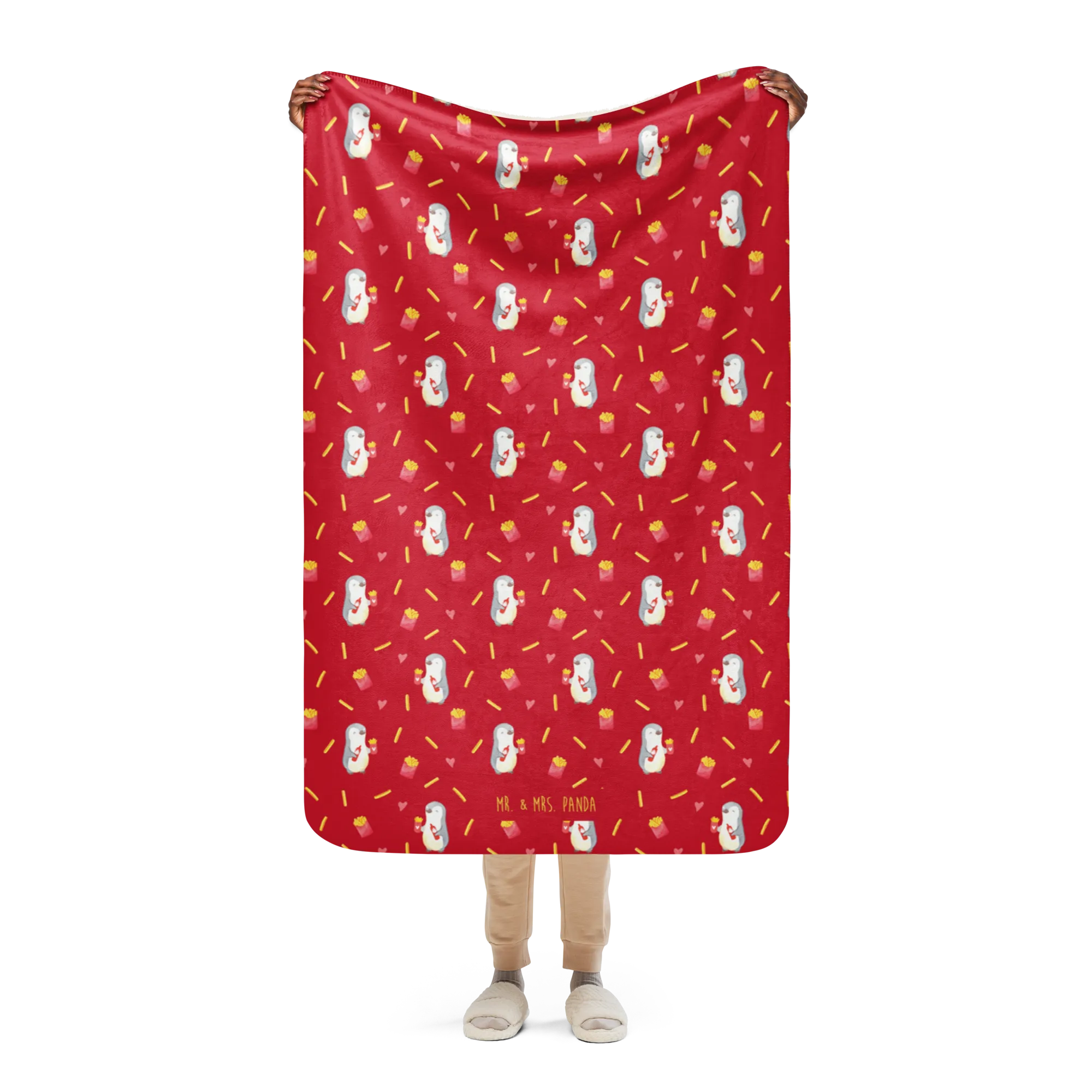 Sherpa Kuscheldecke Pinguin Pommes Muster - 130 x 155 cm