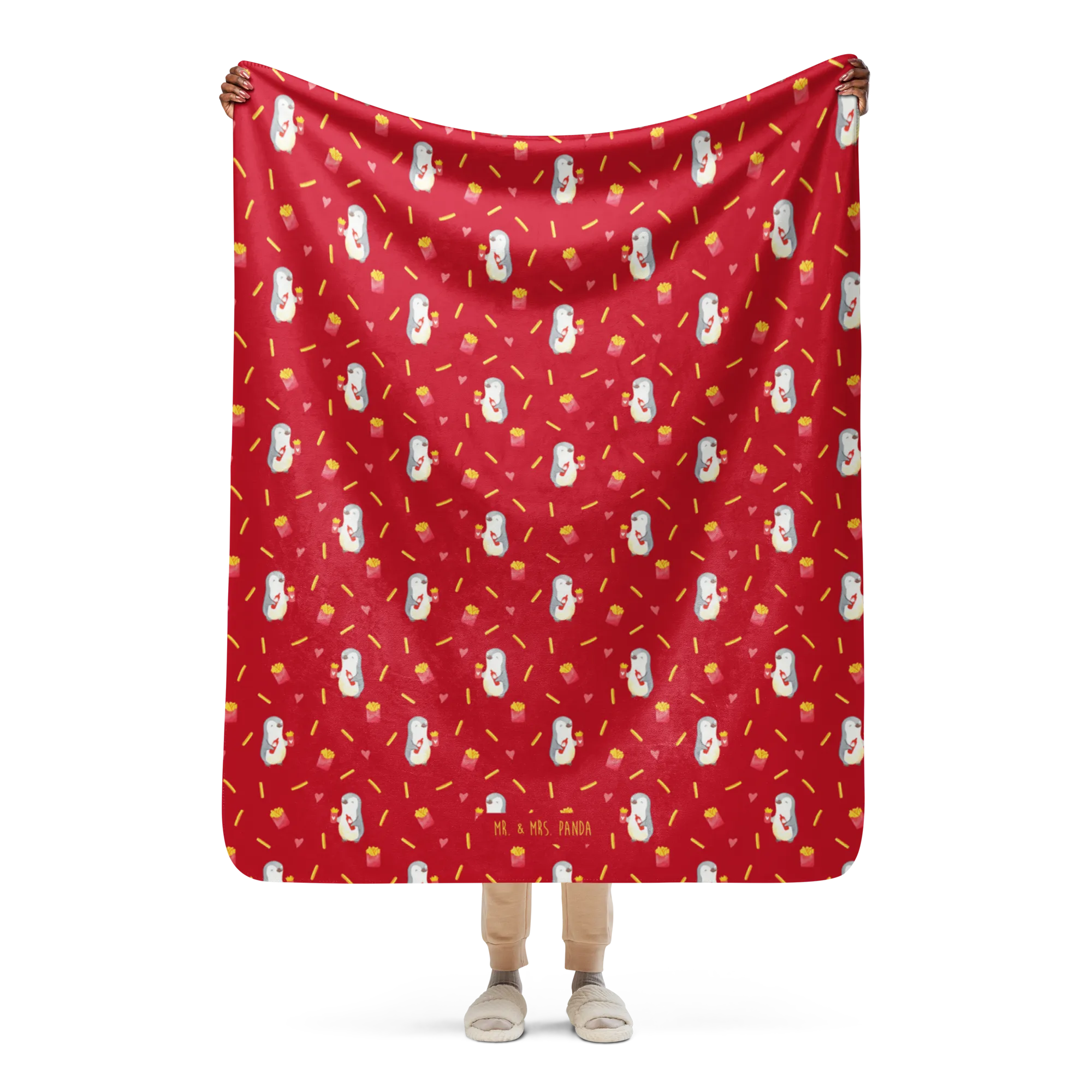 Die hochwertige und wunderschöne Sherpa Kuscheldecke von Mr. & Mrs. Panda mit dem herzlichen Motiv 'Pinguin Pommes' ist das perfekte Geschenk für Verliebte. Wenn Du auf der Suche nach einem Liebesgeschenk für deinen Freund oder deine Freundin bist, dann ist diese Decke ideal! Der süße Pinguin, der mit seinen Pommes und einem Ketchup-Fläschchen posiert, zaubert nicht nur ein Lächeln ins Gesicht, sondern vermittelt auch die Botschaft: 'Mit dir würde ich sogar meine Pommes teilen.' Diese Kuscheldecke symbolisiert die Liebe und die Verbundenheit zwischen Partnern und ist perfekt für romantische Anlässe wie den Valentinstag, Jahrestage oder Hochzeitstage!