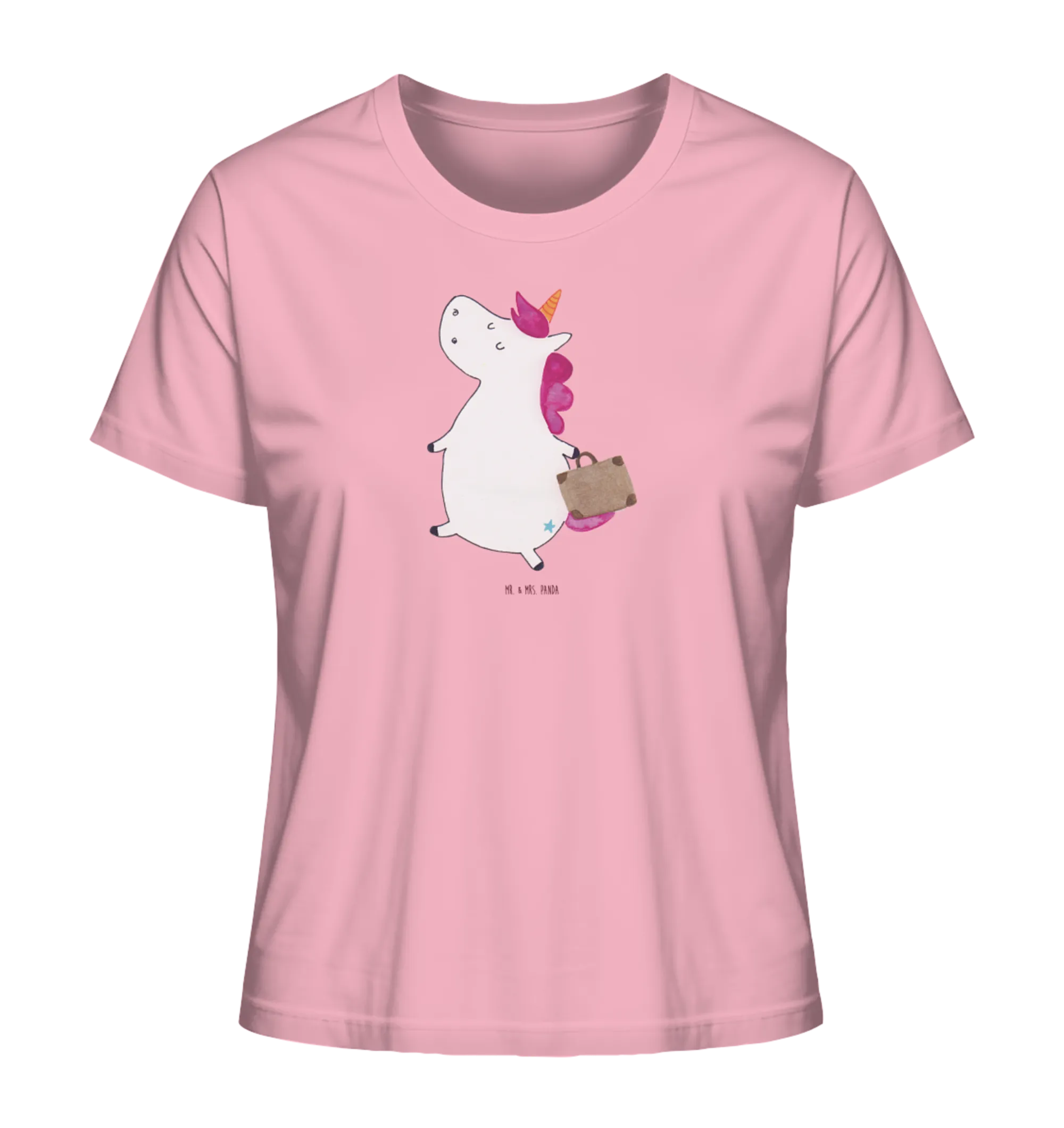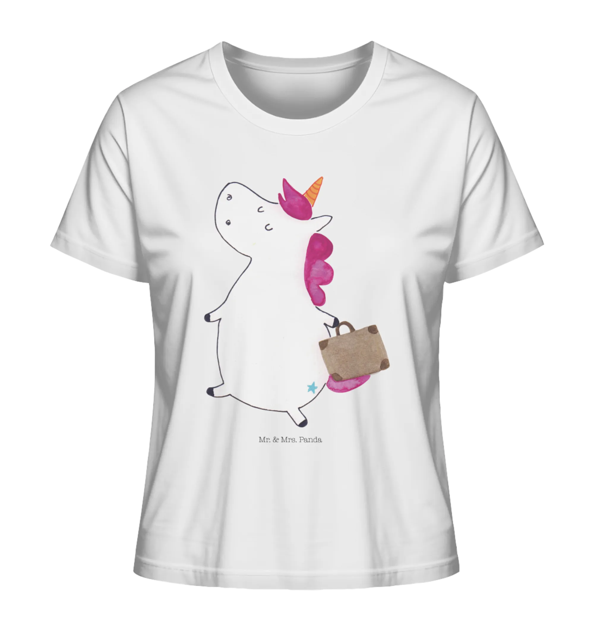 Du liebst Einhörner und das Abenteuer des Reisens? Dann ist unser Shirt Damen mit dem zauberhaften Einhorn Koffer genau das richtige für dich! Dieses lustige T-Shirt bringt das Kind in dir wieder zum Vorschein. Es zeigt ein fröhliches Einhorn, das mit einem Koffer in der Hand unterwegs ist und bereit für neue Abenteuer.
