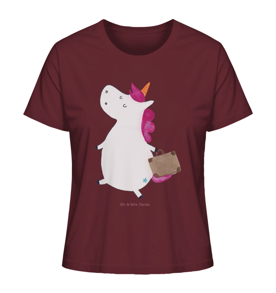 Shirt Damen Einhorn Koffer - Größe S - Burgundy