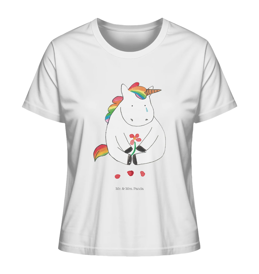Entdecke unser bezauberndes Shirt Damen mit dem traurigen Einhorn aus der einzigartigen Einhorn-Kollektion von Mr. & Mrs. Panda! Mit diesem liebenswerten Motiv bist du nicht nur modisch unterwegs, sondern zeigst auch ein großes Herz für Freundschaft und Trost. Das süße Einhorn fördert die Vorstellung, dass selbst in trüben Zeiten ein bisschen Glitzer und Feenstaub helfen können.