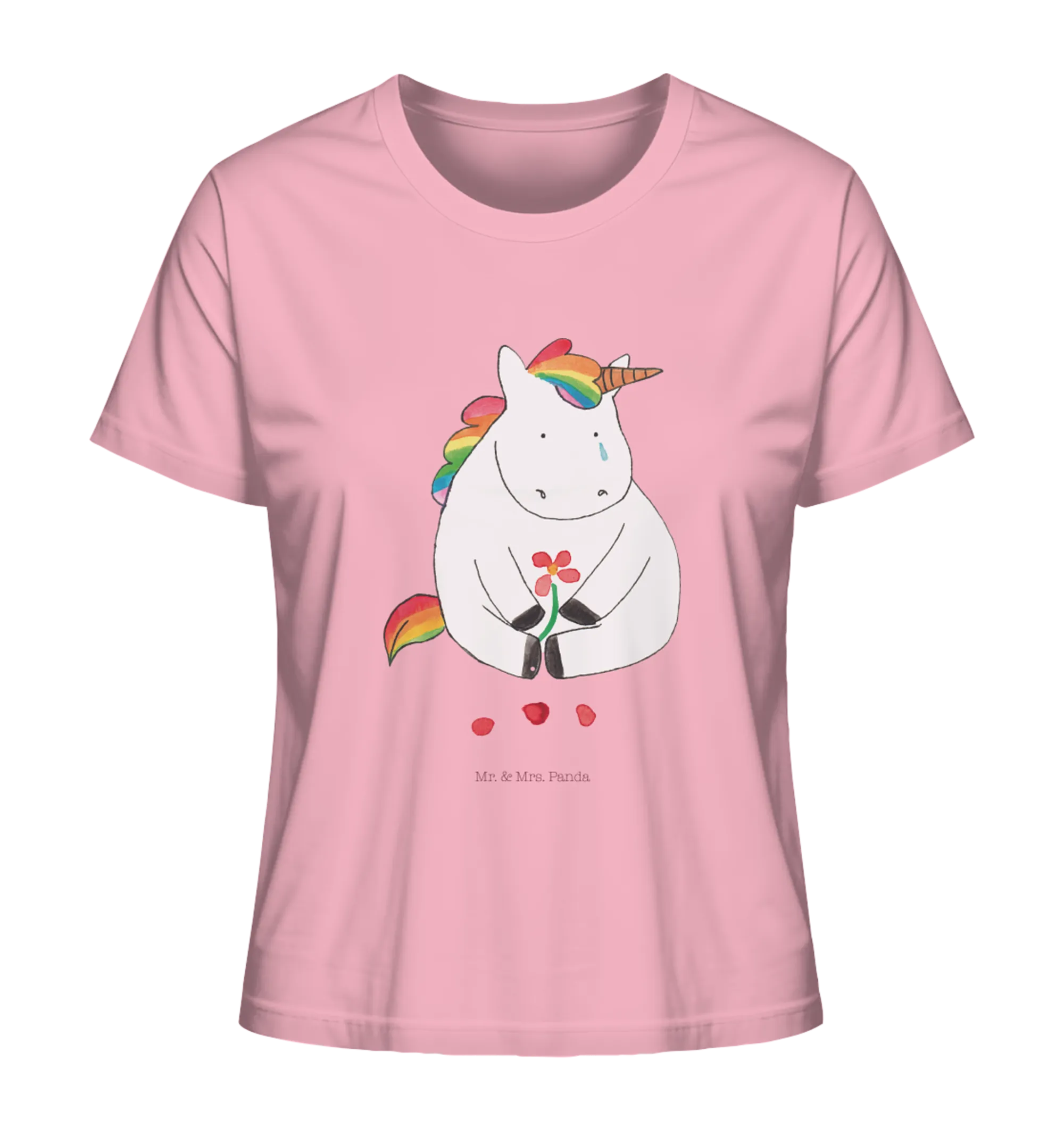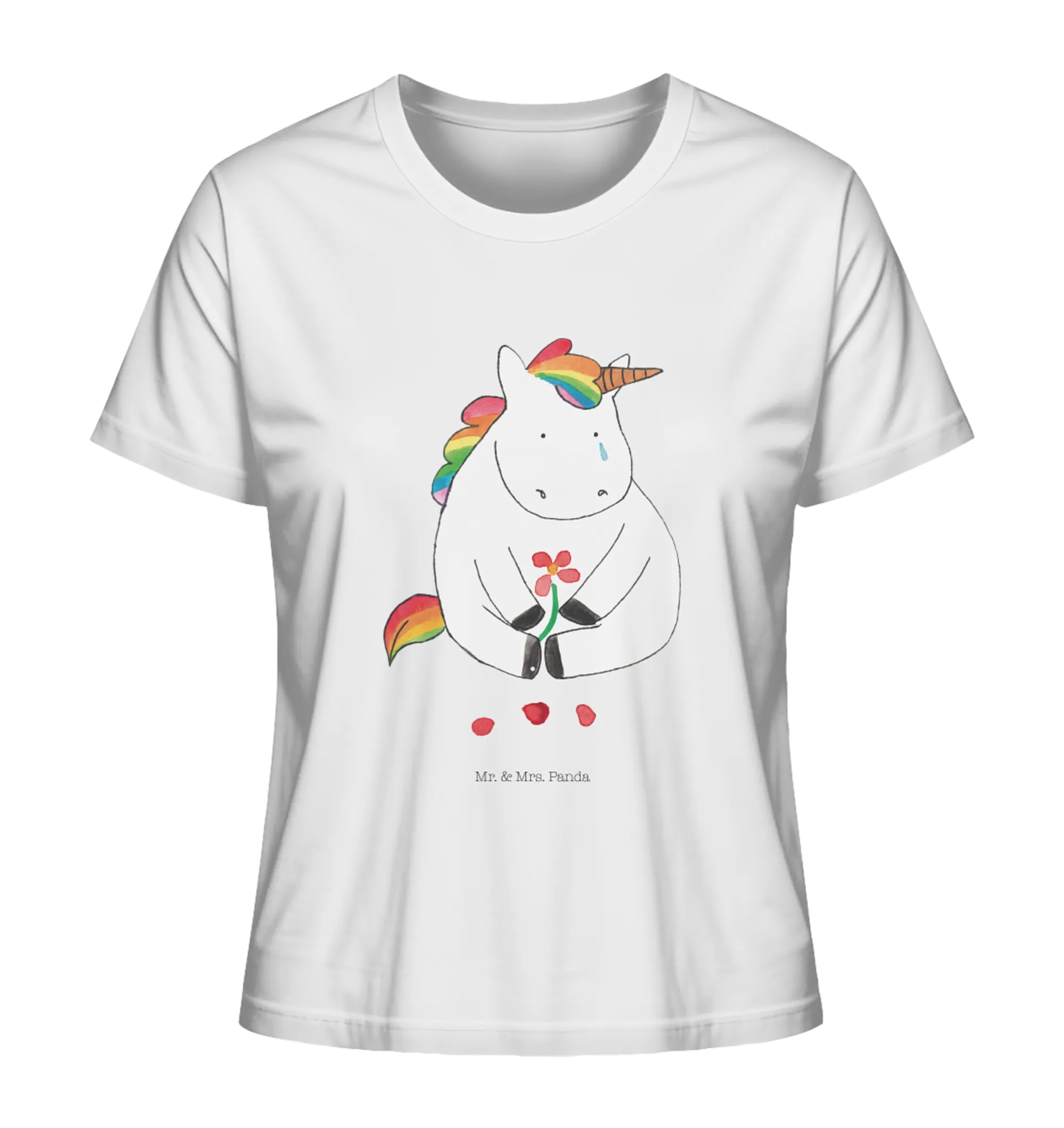 Entdecke unser bezauberndes Shirt Damen mit dem traurigen Einhorn aus der einzigartigen Einhorn-Kollektion von Mr. & Mrs. Panda! Mit diesem liebenswerten Motiv bist du nicht nur modisch unterwegs, sondern zeigst auch ein großes Herz für Freundschaft und Trost. Das süße Einhorn fördert die Vorstellung, dass selbst in trüben Zeiten ein bisschen Glitzer und Feenstaub helfen können.