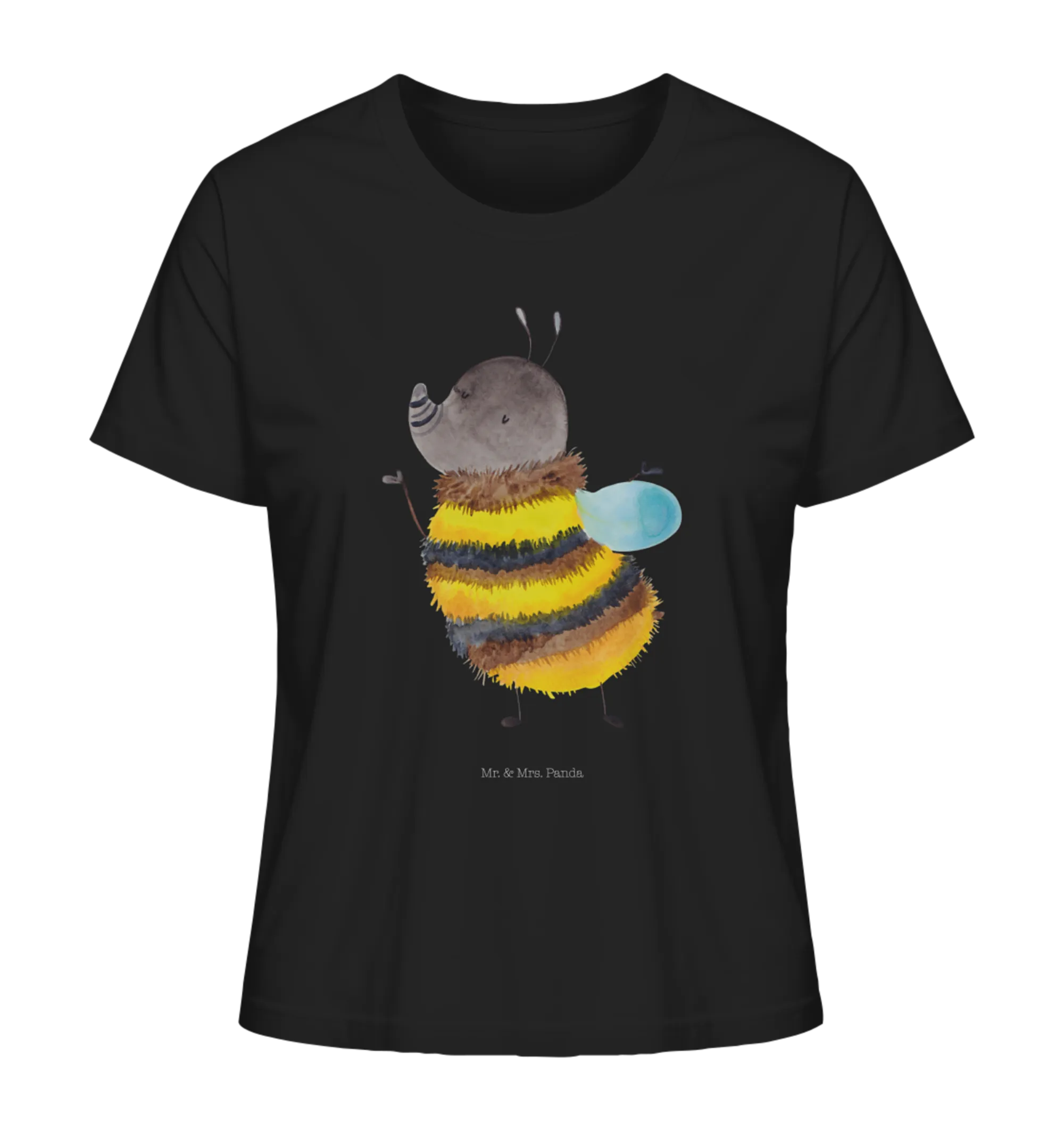 Dieses bezaubernde Damenshirt vereint verspielte Illustration und angenehmen Tragekomfort. Die flauschige Hummel steht im Mittelpunkt und leuchtet in warmem Gelb und Schwarz auf dem eleganten Anthrazit des Shirts. Das Motiv wurde liebevoll von Mrs. Panda aquarelliert und digital umgesetzt, sodass jede Zeichnung lebendig wirkt.