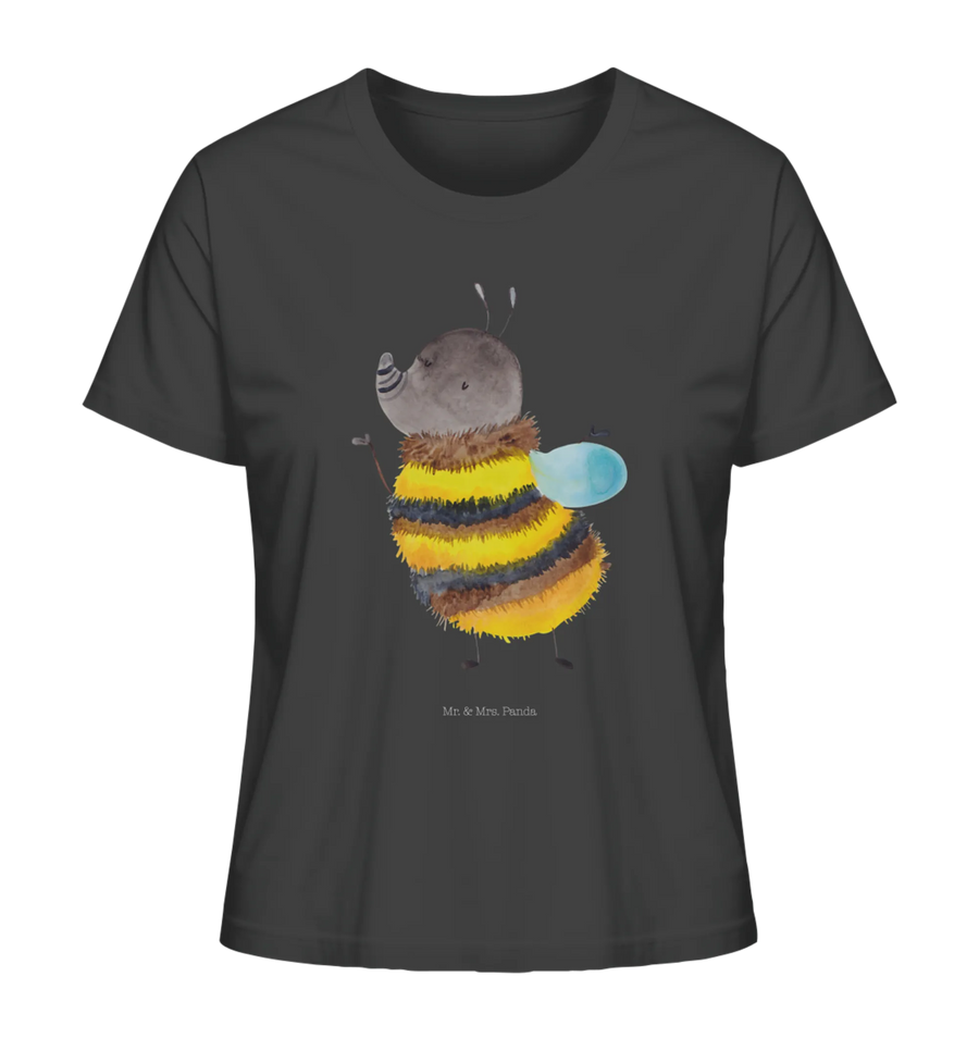 Dieses bezaubernde Damenshirt vereint verspielte Illustration und angenehmen Tragekomfort. Die flauschige Hummel steht im Mittelpunkt und leuchtet in warmem Gelb und Schwarz auf dem eleganten Anthrazit des Shirts. Das Motiv wurde liebevoll von Mrs. Panda aquarelliert und digital umgesetzt, sodass jede Zeichnung lebendig wirkt.