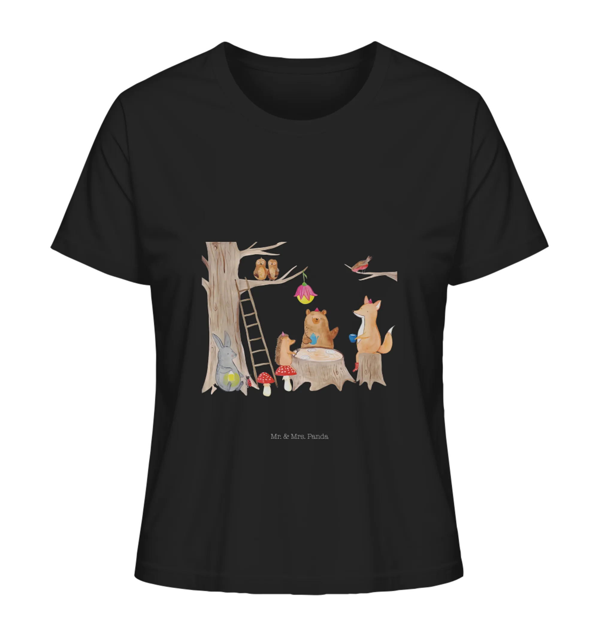 Willkommen in der Small World von Mr. & Mrs. Panda! 🌿 Unser Shirt Damen „Waldtiere Picknick“ bringt ein liebevoll handgezeichnetes Motiv direkt in deinen Alltag. Niedliche Füchse, Hasen und Eichhörnchen haben sich zu einem gemütlichen Picknick im Wald versammelt und zaubern dir ein Lächeln ins Gesicht.