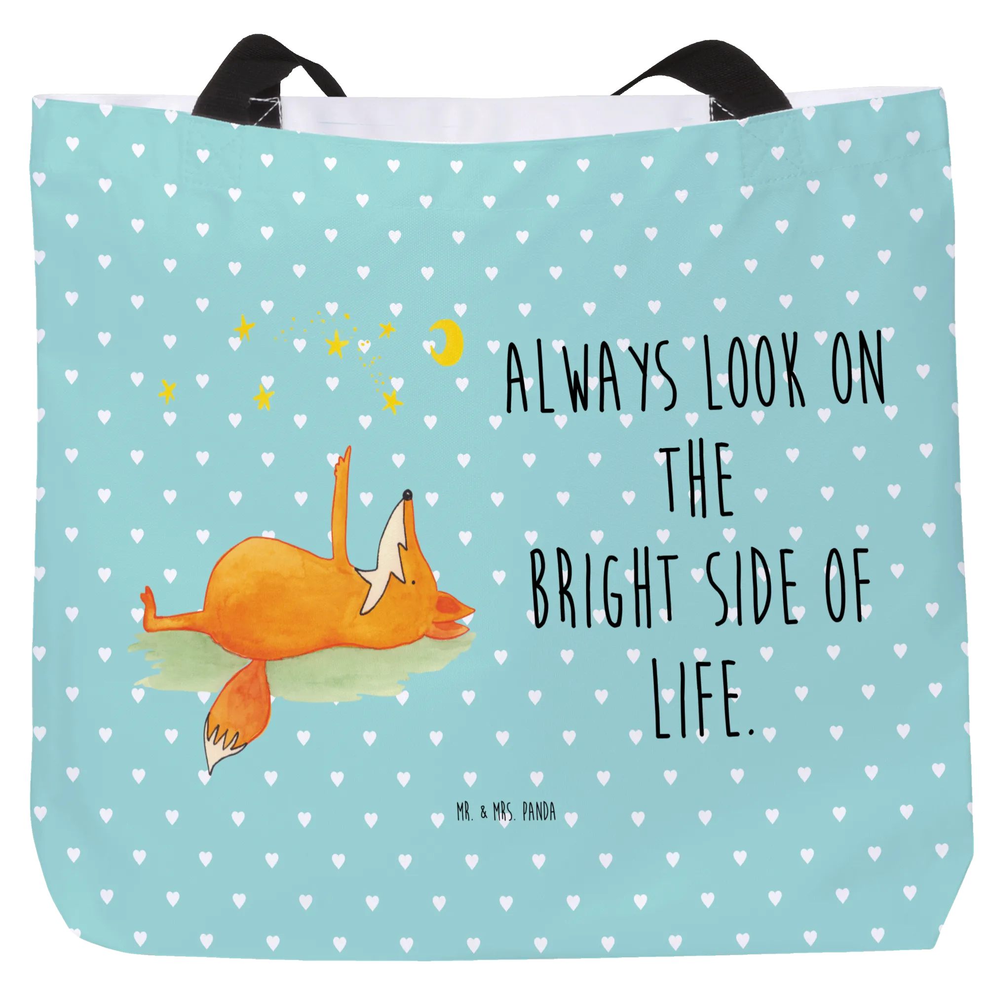 Entdecke mit unserem wunderschönen Shopper "Fuchs Sterne" von Mr. & Mrs. Panda die perfekte Tasche für jeden Anlass! Diese Einkaufstasche aus robuster Kunstfaser bietet dir nicht nur viel Platz für all deine Einkäufe, sondern auch einen Hauch von Magie durch das zauberhafte Design. Der süße Fuchs, der glücklich auf seinem Rücken liegt und die Sterne bewundert, lädt dich ein, die Schönheit des Lebens zu genießen und immer auf die sonnige Seite zu schauen – genau das zeigt unser Slogan: "Always look on the bright side of life!".
