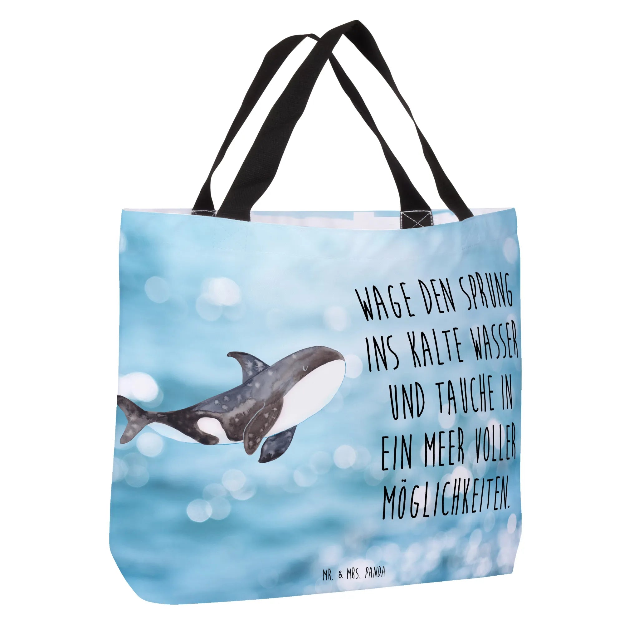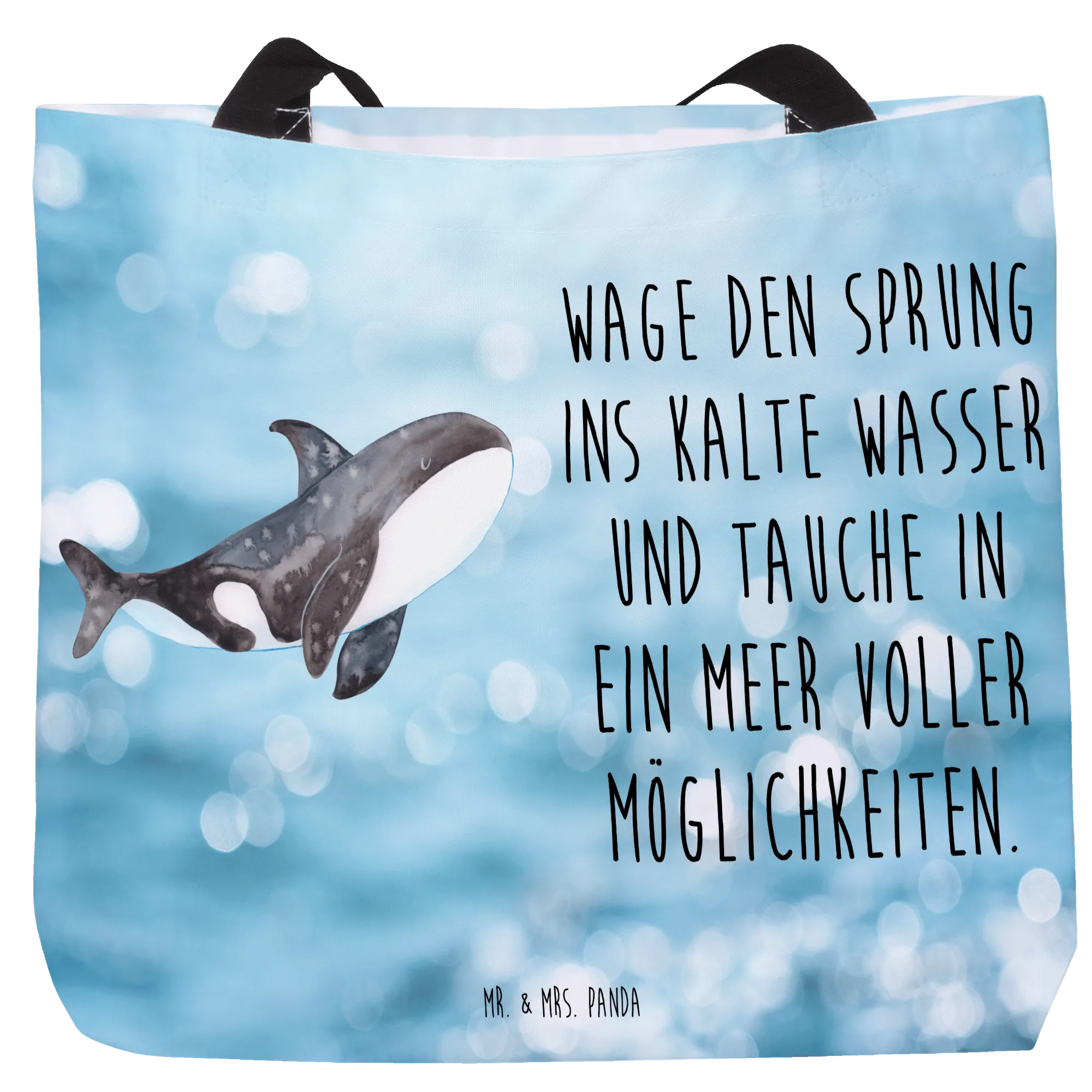 Ein wunderschöner Shopper von Mr. & Mrs. Panda – dein täglicher Begleiter mit Herz und Meer! Dieser Orca-Shopper aus der Meerestiere-Kollektion verbindet praktischen Nutzen mit einer liebevollen Botschaft: „Wage den Sprung ins kalte Wasser und tauche in ein Meer voller Möglichkeiten.“ 🌊🖤