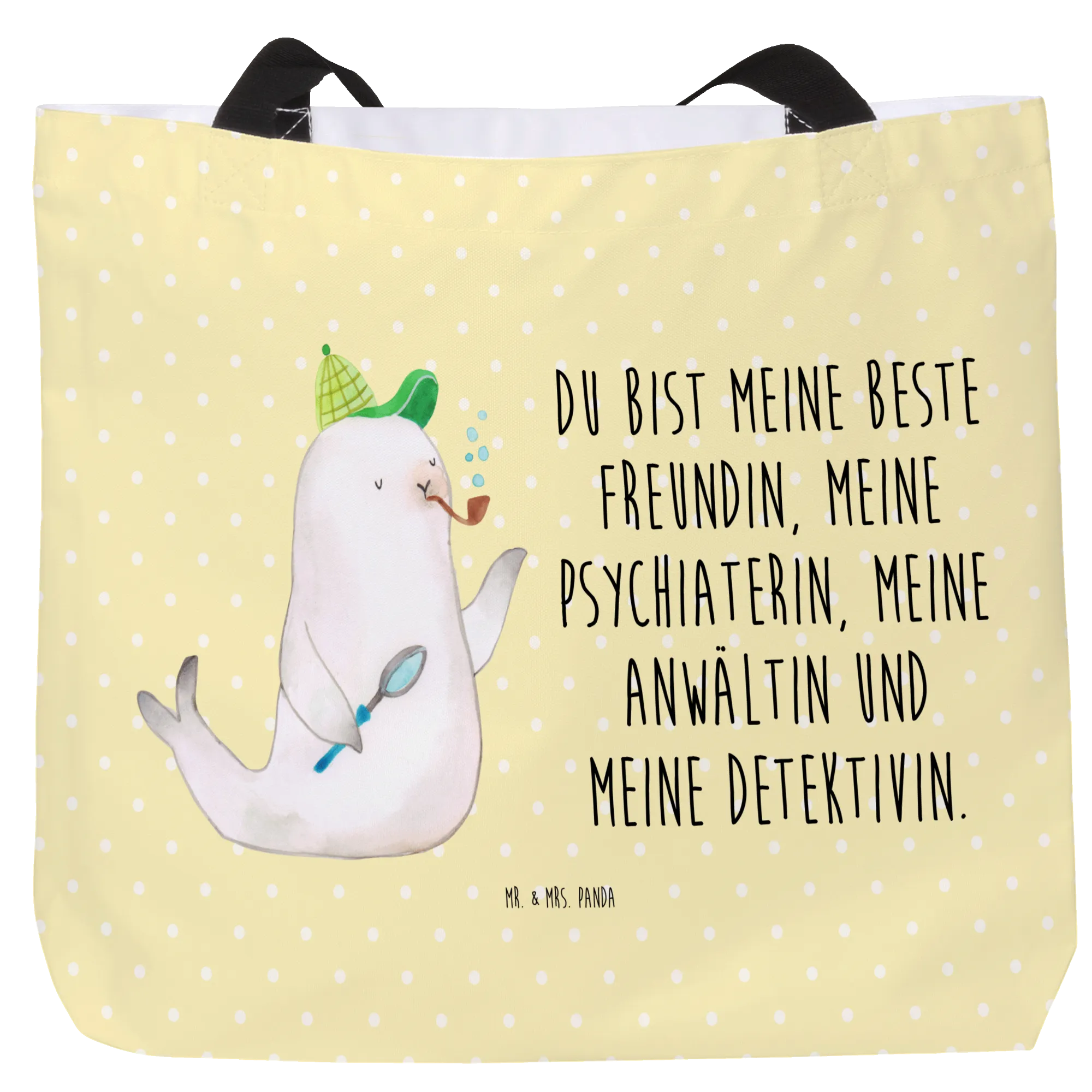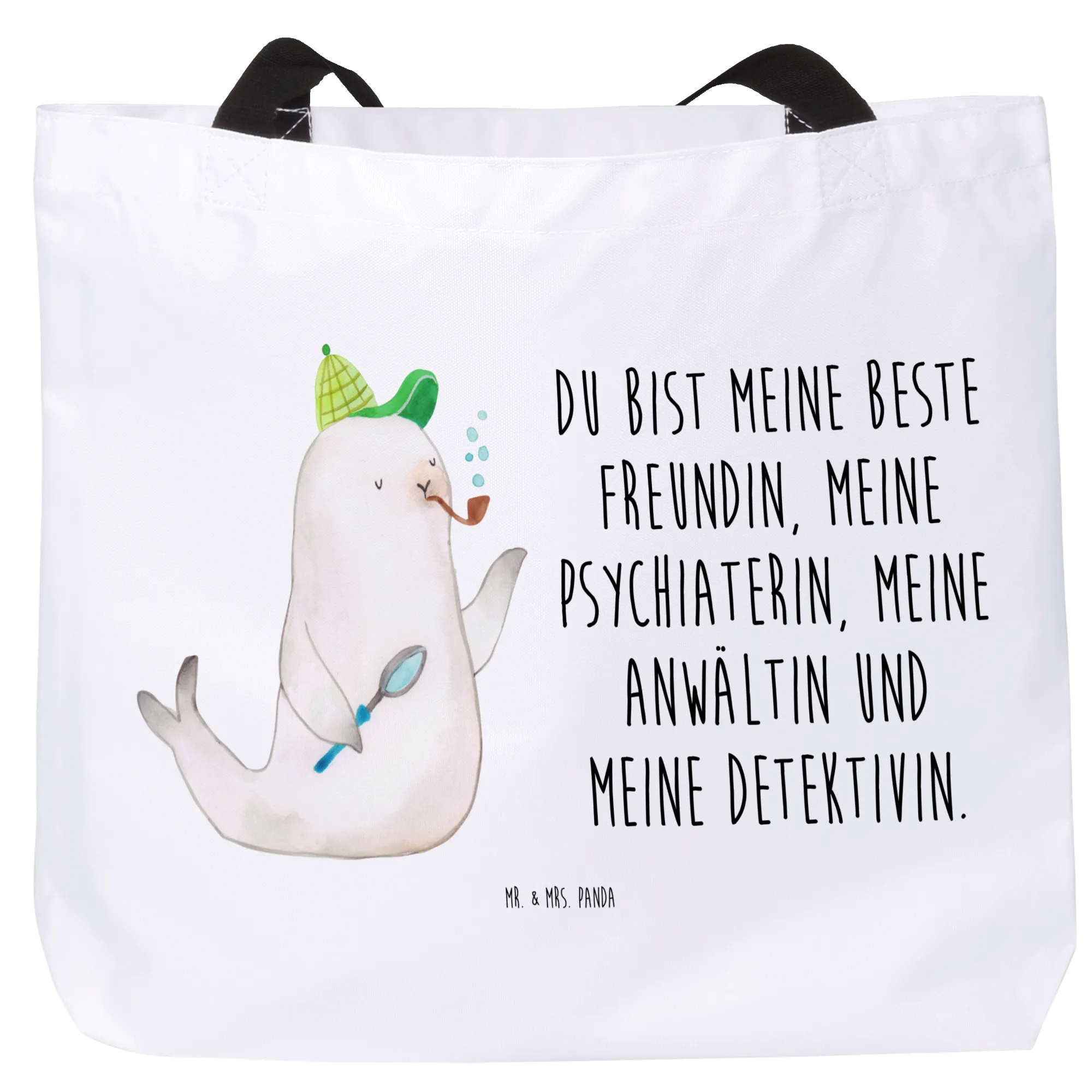 Mr. & Mrs. Panda - Detektiv-Robbe mit Spruch: 'Du bist meine beste Freundin, meine Psychiaterin, meine Anwältin und meine Detektivin'