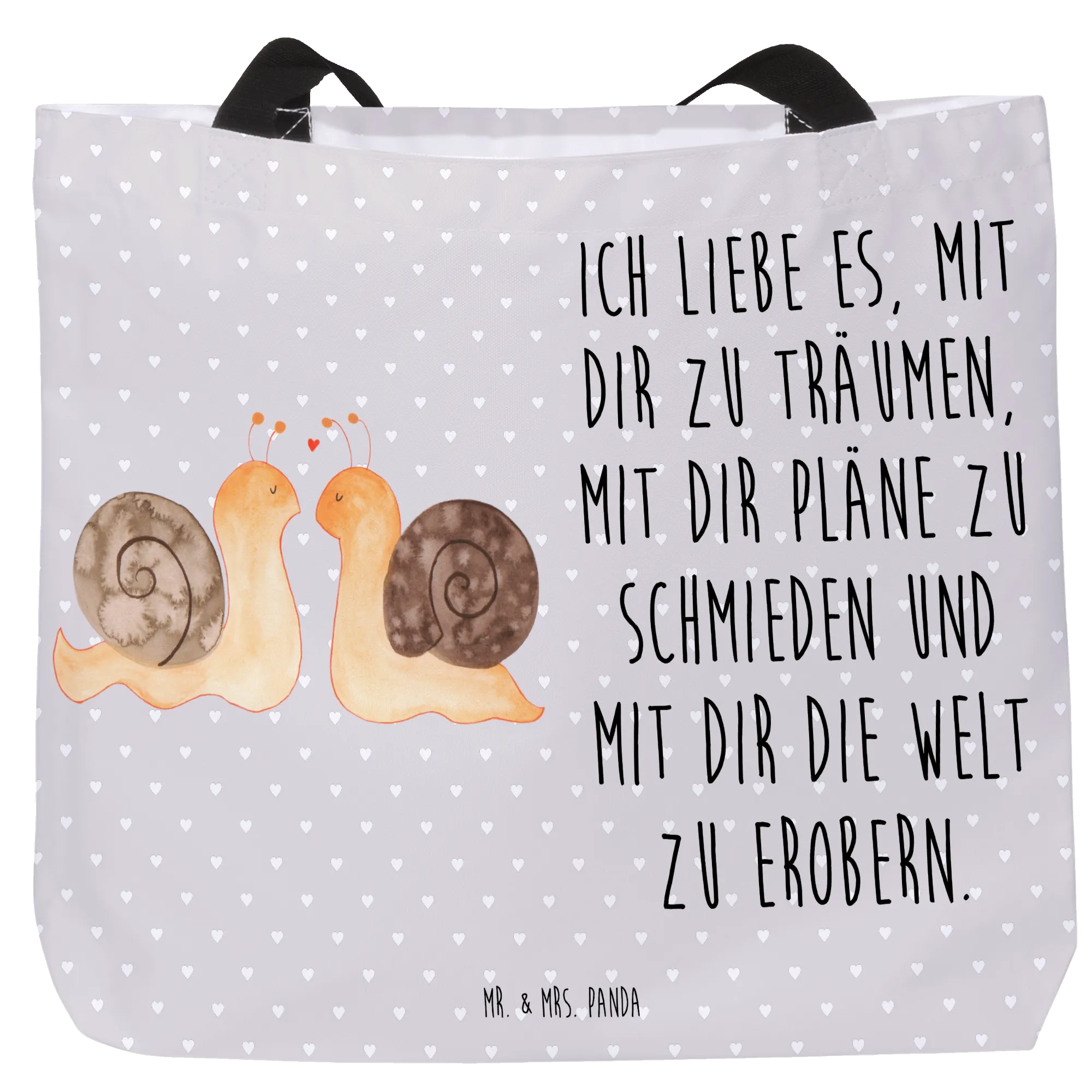 Zauberhafter Shopper "Schnecken Liebe" – ein kleiner Liebesbeweis für jeden Tag! 🌸 Dieser liebevoll gestaltete Shopper aus der Liebe-Kollektion von Mr. & Mrs. Panda zeigt ein süßes Schneckenpärchen, zwei rote Herzen über den Antennen und ein harmonisches, pastellgraues Design. Er kombiniert romantisches Motiv mit praktischer Alltagstauglichkeit.