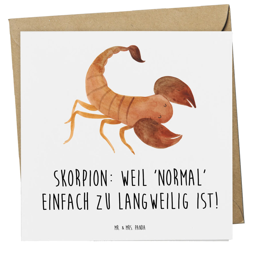 Das liebevoll gestaltete Motiv zeigt den Spruch: "Skorpion: Weil 'normal' einfach zu langweilig ist!" und bringt garantiert ein Lächeln auf die Gesichter der Beschenkten. Die feierliche Karte ist mit einer hochglänzend veredelten Vorderseite ausgestattet, die sie besonders edel erscheinen lässt. Gleichzeitig ist die matte Innenseite ideal für persönliche Botschaften – hier kannst du all deine guten Wünsche und herzlichen Grüße verewigen.