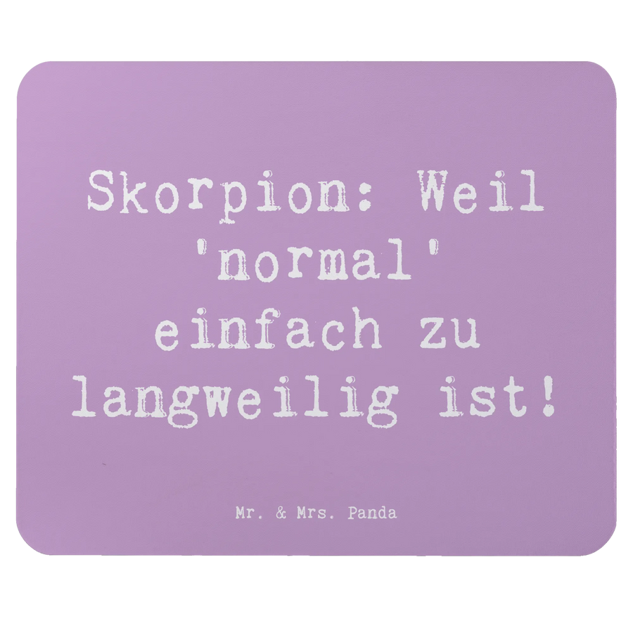 Das Mauspad Skorpion von Mr. & Mrs. Panda ist das perfekte Geschenk für alle, die unter dem Sternzeichen Skorpion geboren sind oder einfach die faszinierende Welt der Astrologie lieben. Mit dem liebevollen Slogan „Skorpion: Weil 'normal' einfach zu langweilig ist!“ bringt dieses Mauspad die individuelle Persönlichkeit und die besonderen Eigenschaften des Skorpions direkt auf deinen Schreibtisch.