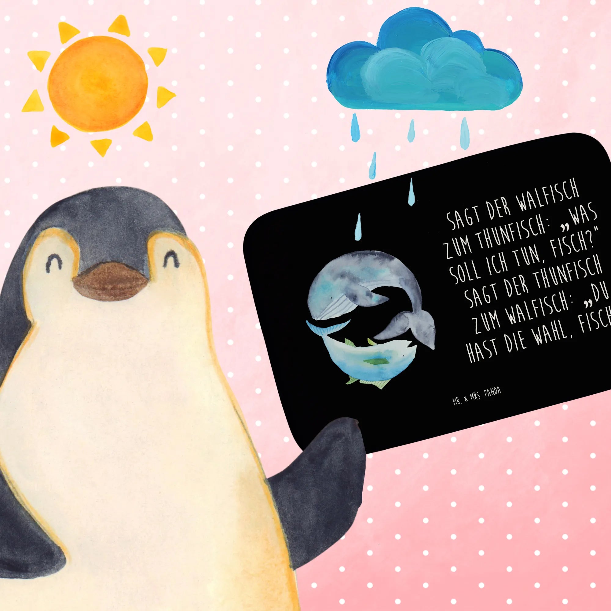 Stell dir vor, tief im blauen Ozean, weit weg von der Hektik des Alltags, gleiten ein Walfisch und ein Thunfisch Seite an Seite durch die Weiten des Wassers. Es ist ein Bild voller Harmonie und Freundschaft, das Mr. & Mrs. Panda mit viel Liebe zum Detail in ihrem neuesten Motiv festgehalten haben. Der Spruch „Sagt der Walfisch zum Thunfisch: 'Was soll ich tun, Fisch?' Sagt der Thunfisch zum Walfisch: 'Du hast die Wahl, Fisch.'“ ist nicht nur ein herrlicher Flachwitz, sondern auch ein Wortspiel, das zum Schmunzeln einlädt. Dieses Motiv greift die Leichtigkeit auf, mit der man manchmal Entscheidungen treffen darf – und erinnert uns daran, dass es immer eine Wahl gibt, auch wenn sie so simpel erscheint wie zwischen Walfisch und Thunfisch zu entscheiden. Ein wunderbares Geschenk für alle, die Humor und die Tiefe des Meeres lieben.