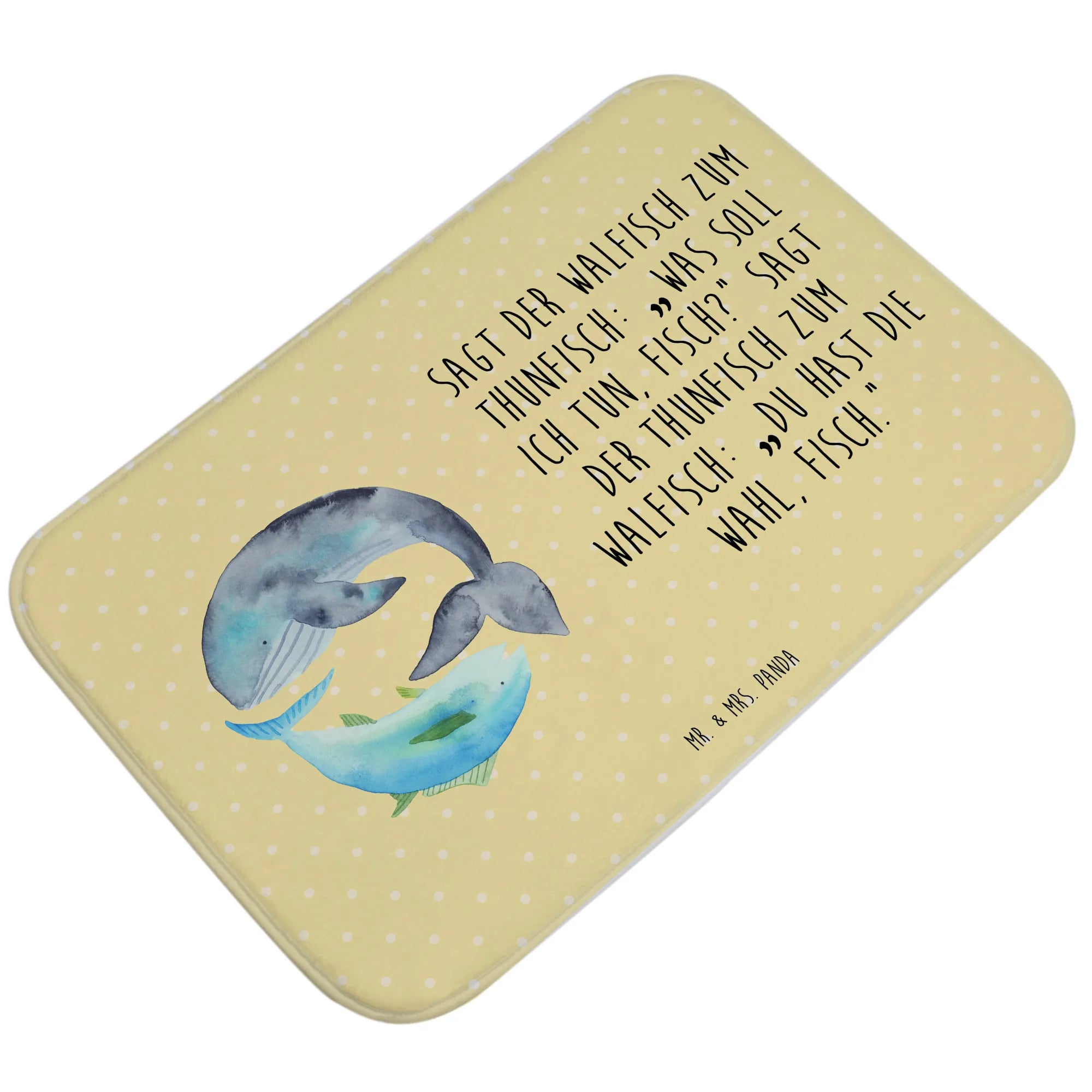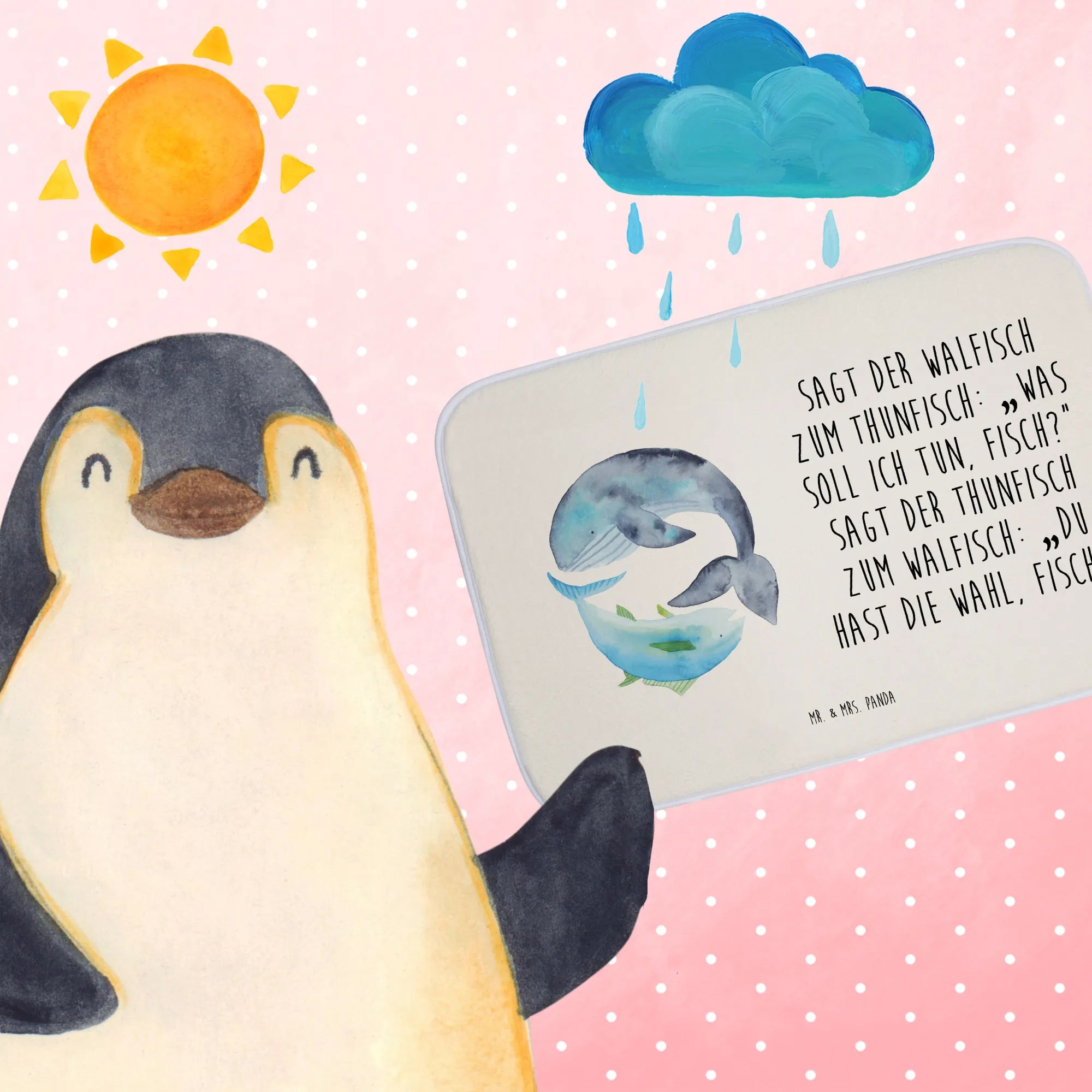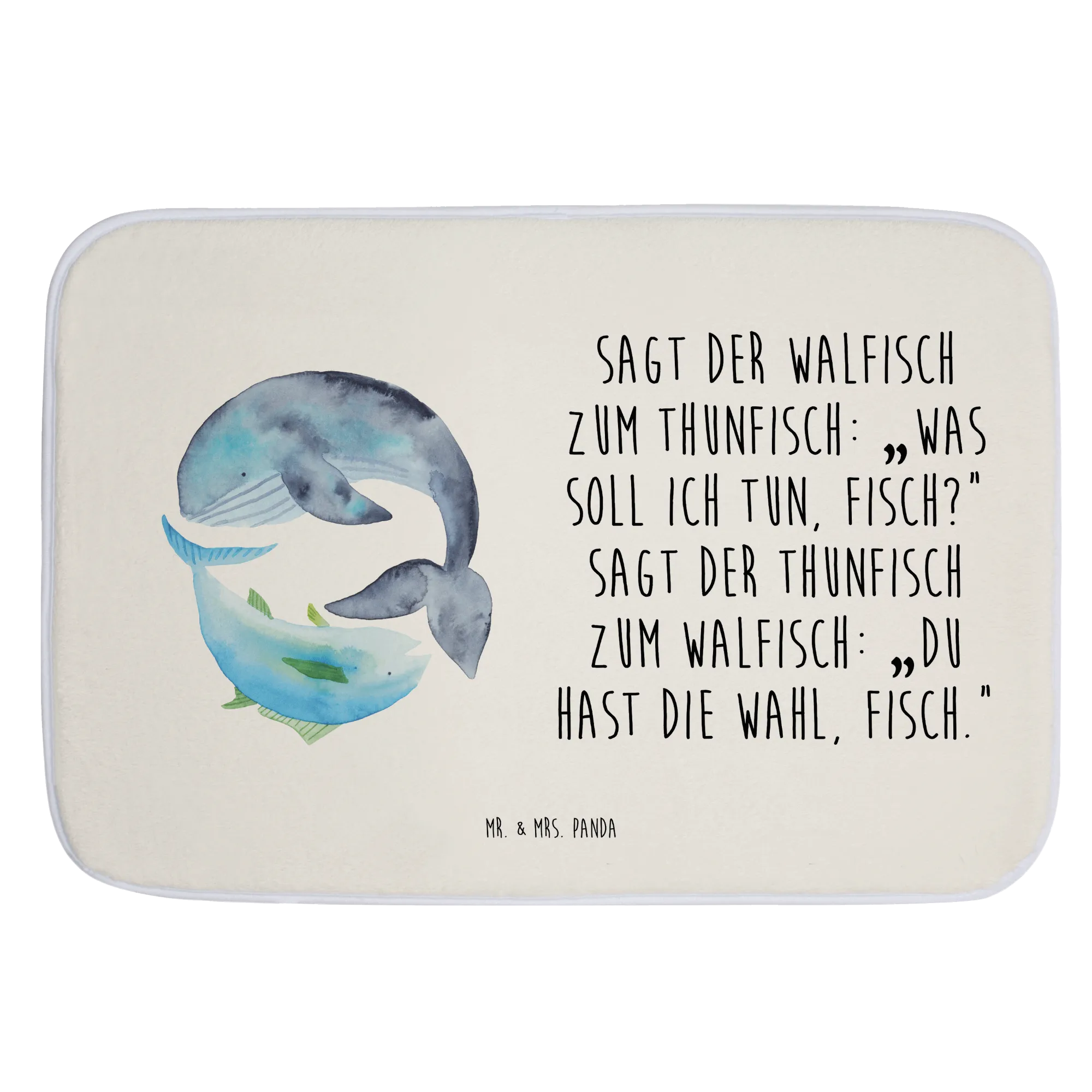 Entdecke den charmanten Badvorleger Walfisch & Thunfisch aus der bezaubernden Small World Kollektion von Mr. & Mrs. Panda! Dieser Badteppich ist mehr als nur ein praktisches Accessoire für dein Badezimmer. Mit seinem einzigartigen Motiv und dem witzigen Spruch "Sagt der Walfisch zum Thunfisch: „Was soll ich tun, Fisch?“ Sagt der Thunfisch zum Walfisch: „Du hast die Wahl, Fisch.“" bringt er Freude und gute Laune in dein Zuhause.